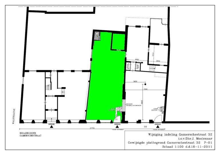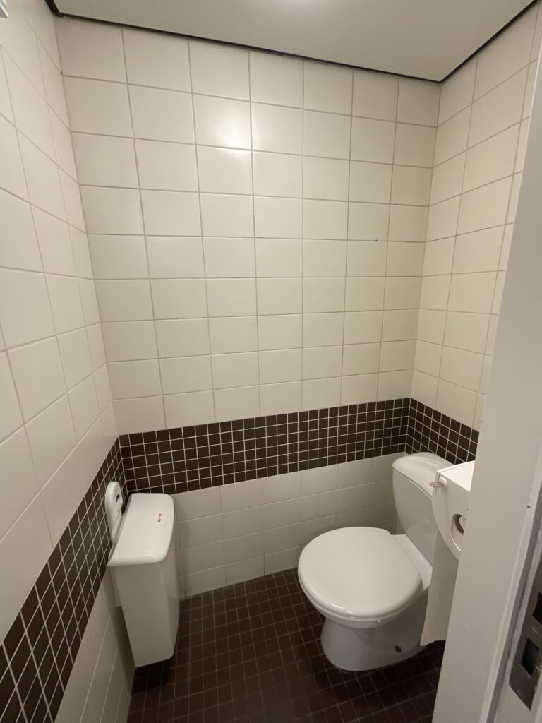 Begane grond van het pand is thans twee kantoorruimten gesitueerd. Vanuit hier is er toegang naar toiletruimte, kitchenette en magazijn.