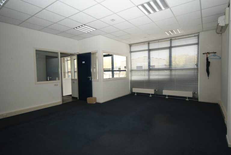 kantoorruimte van ca. 20 m2, gelegen aan achterzijde van gebouw, achter in de gang doucheruimte,