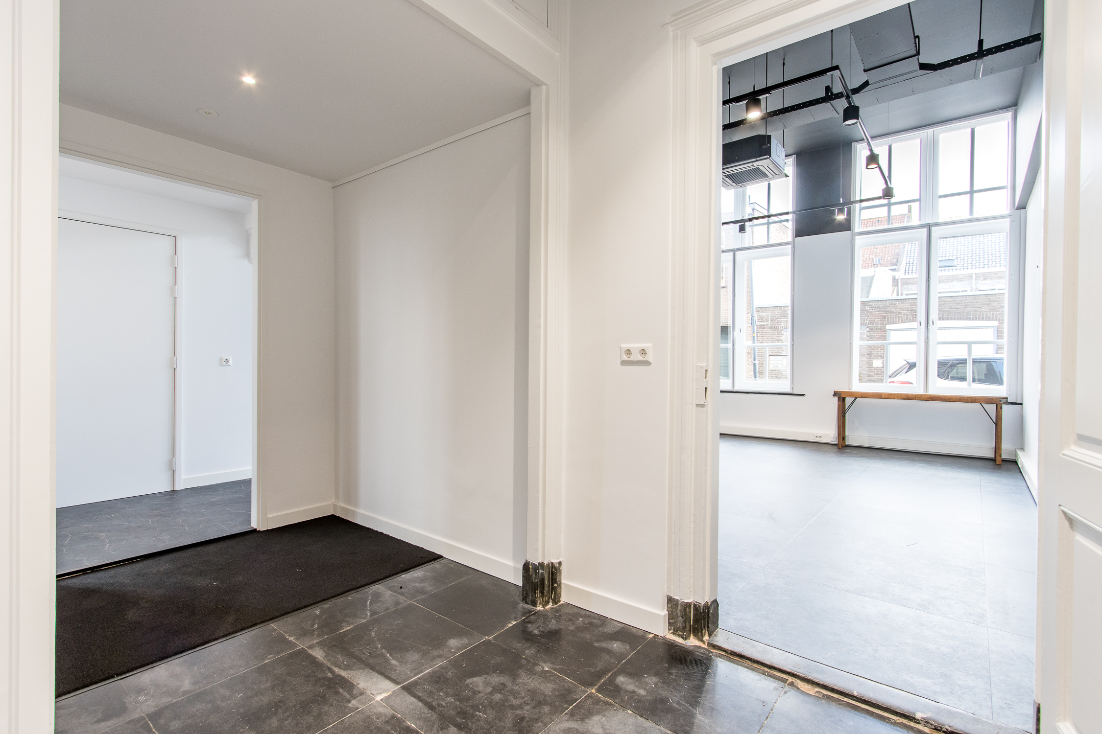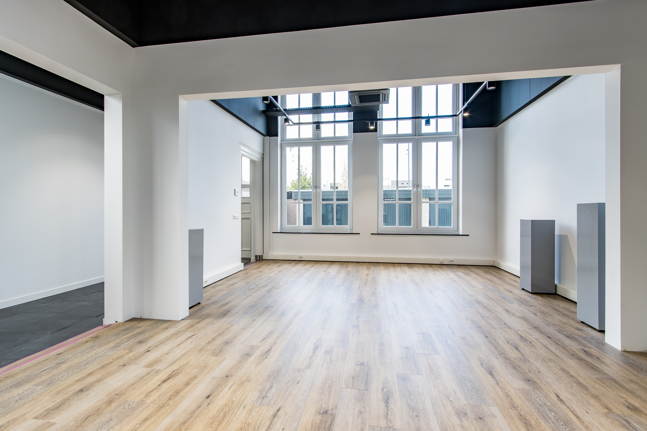 De begane grond is recent compleet vernieuwd en straalt een robuuste, industriële sfeer uit. Een ideale ruimte voor wie zoekt naar een representatieve plek met karakter, bijvoorbeeld als kantoor, galerie, showroom of creatieve werkplek.