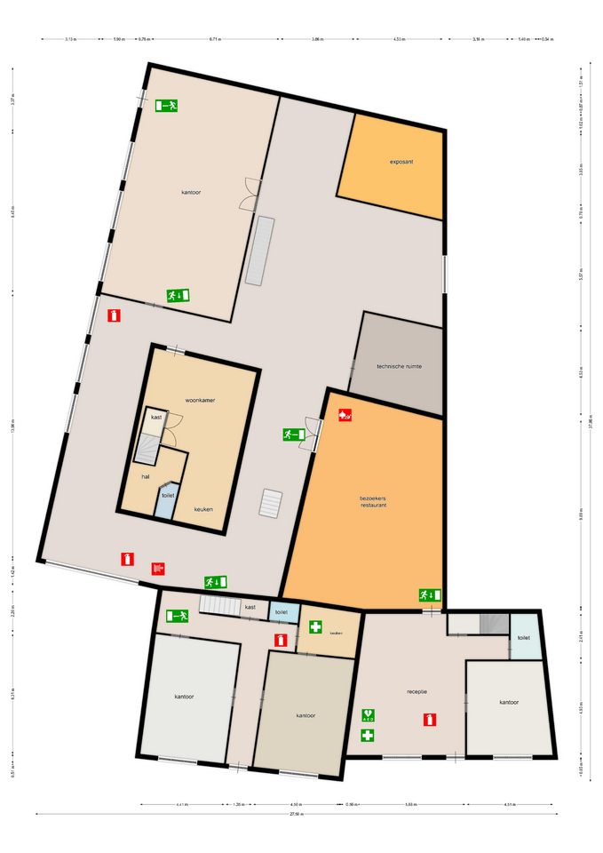 Het pand beschikt over goed onderhouden en ruime kantoorruimten, perfect voor het creëren van een productieve werkomgeving. De kantoren zijn voorzien van moderne voorzieningen en bieden alle comfort die uw team nodig heeft om optimaal te presteren.