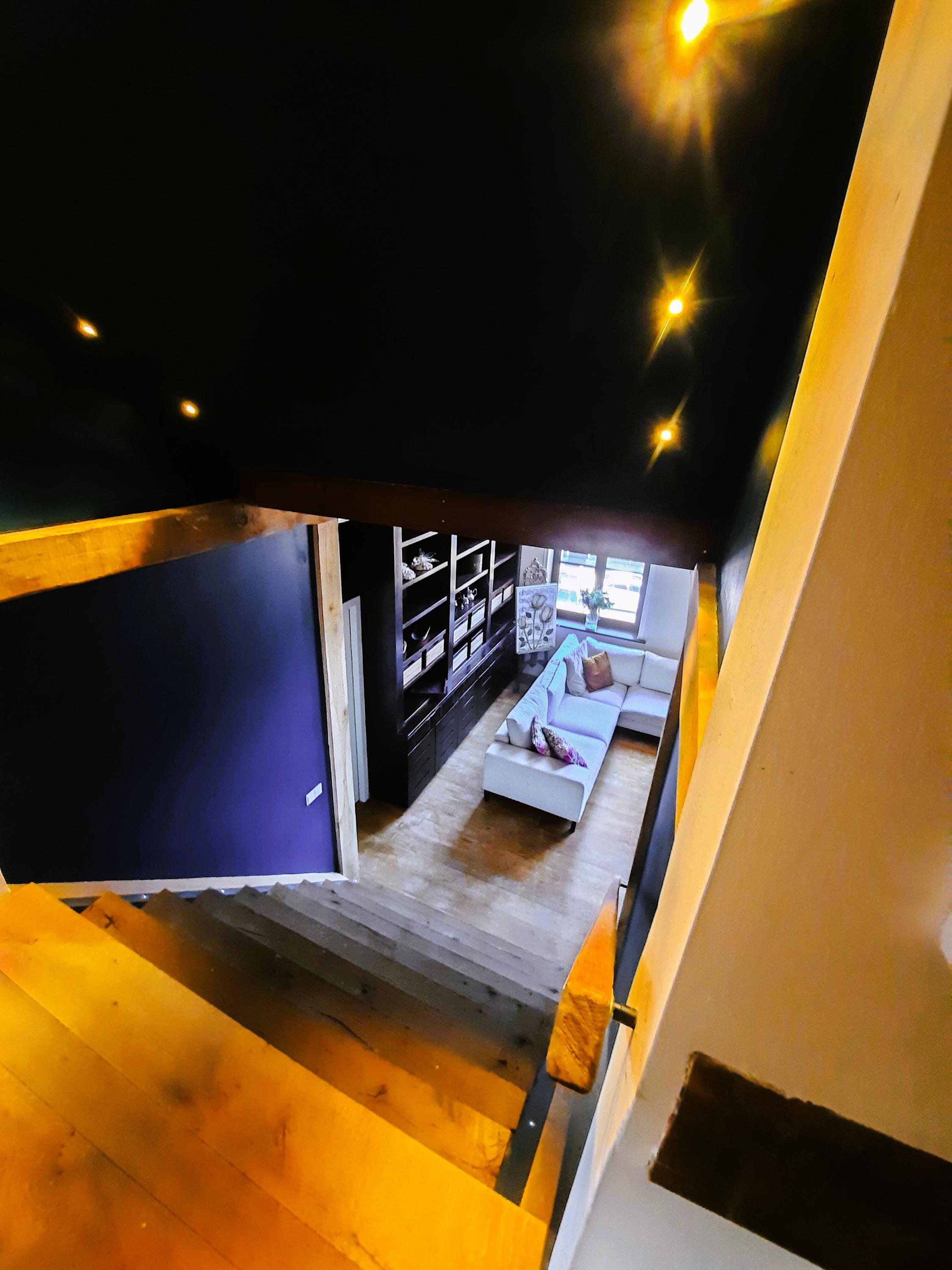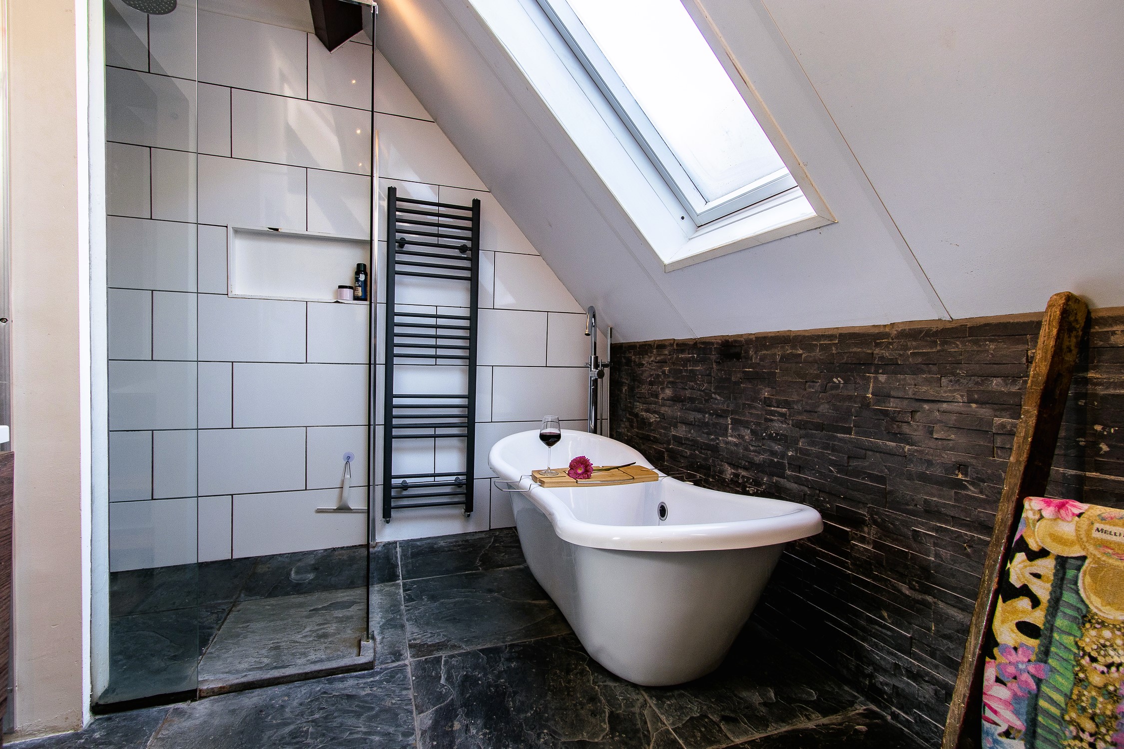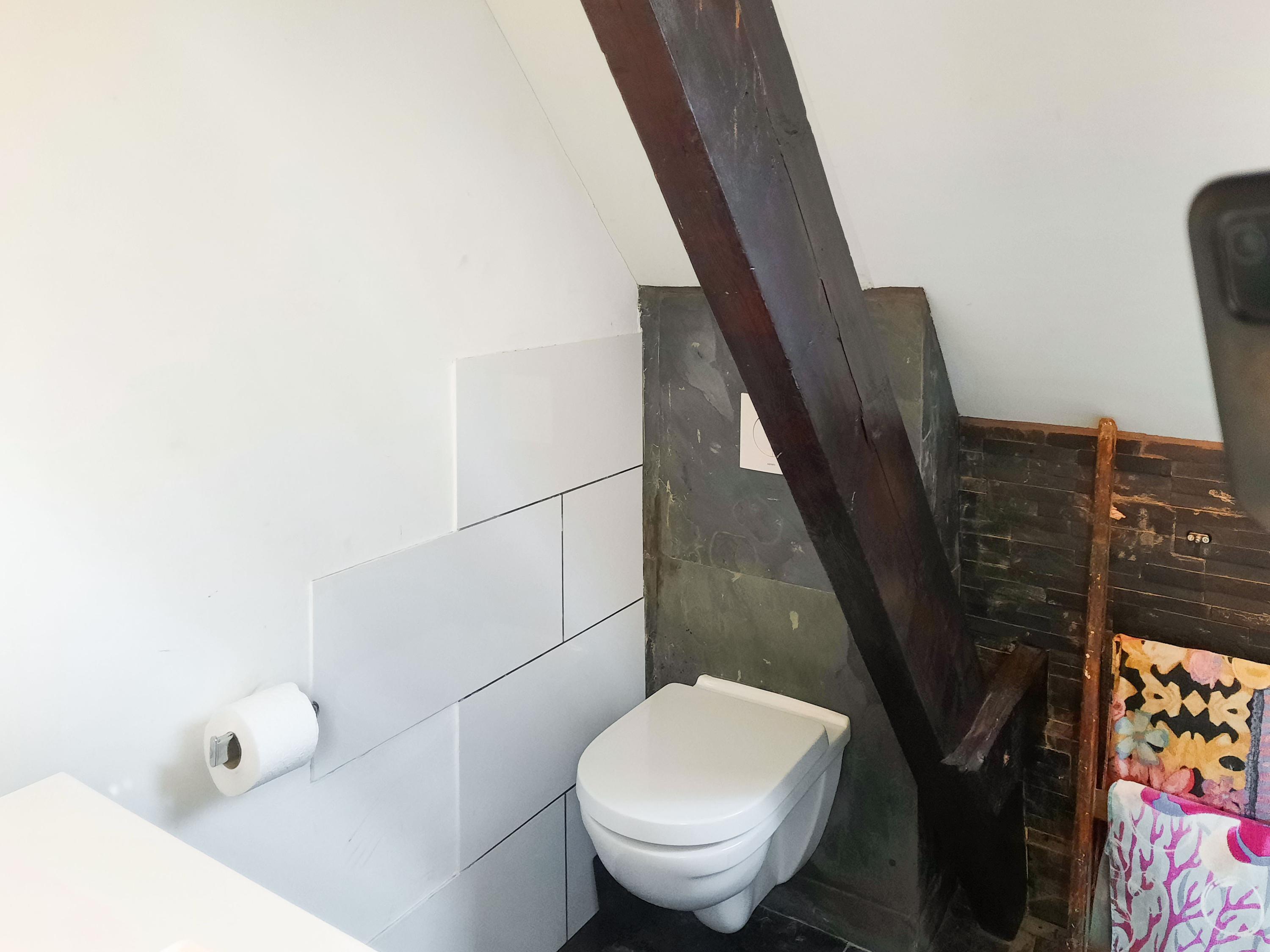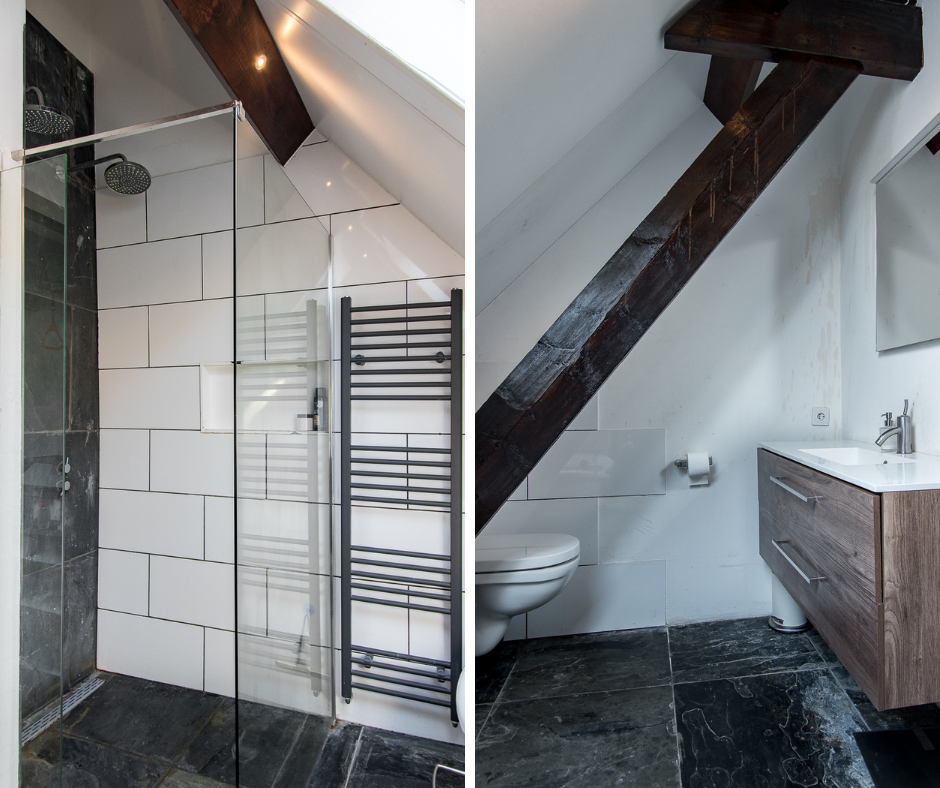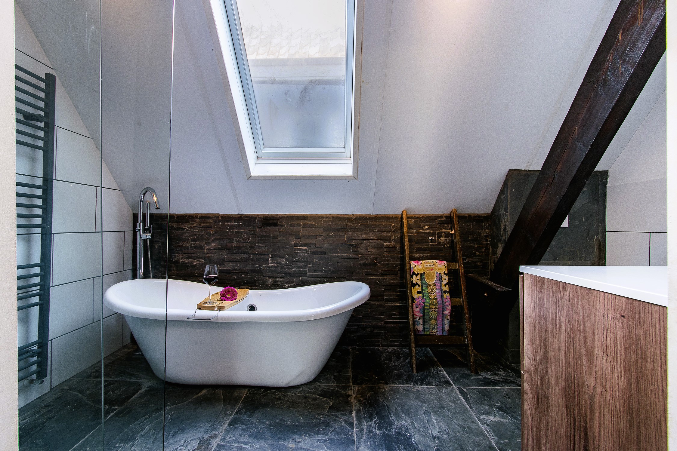 Verdieping 2: de eiken vloer met ruime natuurlijke trap geven deze hal een eigentijdse uitstraling. Vooral de hoogte (4,30 meter geeft een mooie uitstraling waardoor de 2 slaapkamers ruim en sfeervol worden tezamen met de badkamer. Deze ruime relaxte ruimte is voorzien van een ligbad, toilet, dubbele wasbak en een inloopdouche met 2 stortdouches gevoed door een CW3 HR ketel. Alle kamers hebben veel natuurlijk lichtinval en de hal is momenteel ingericht als leeshoek waar een ruime fauteuil kan staan onder het Velux dakraam.