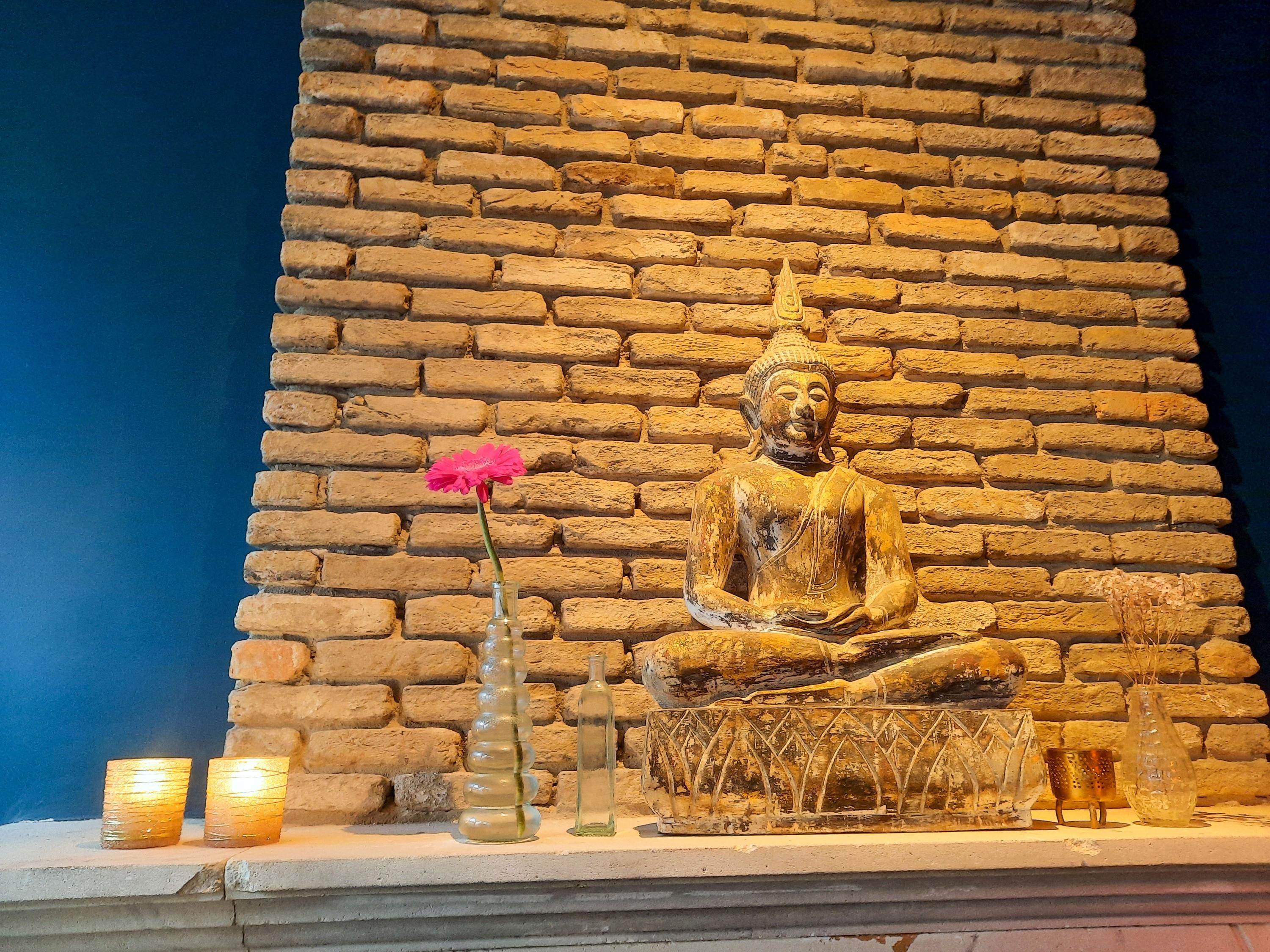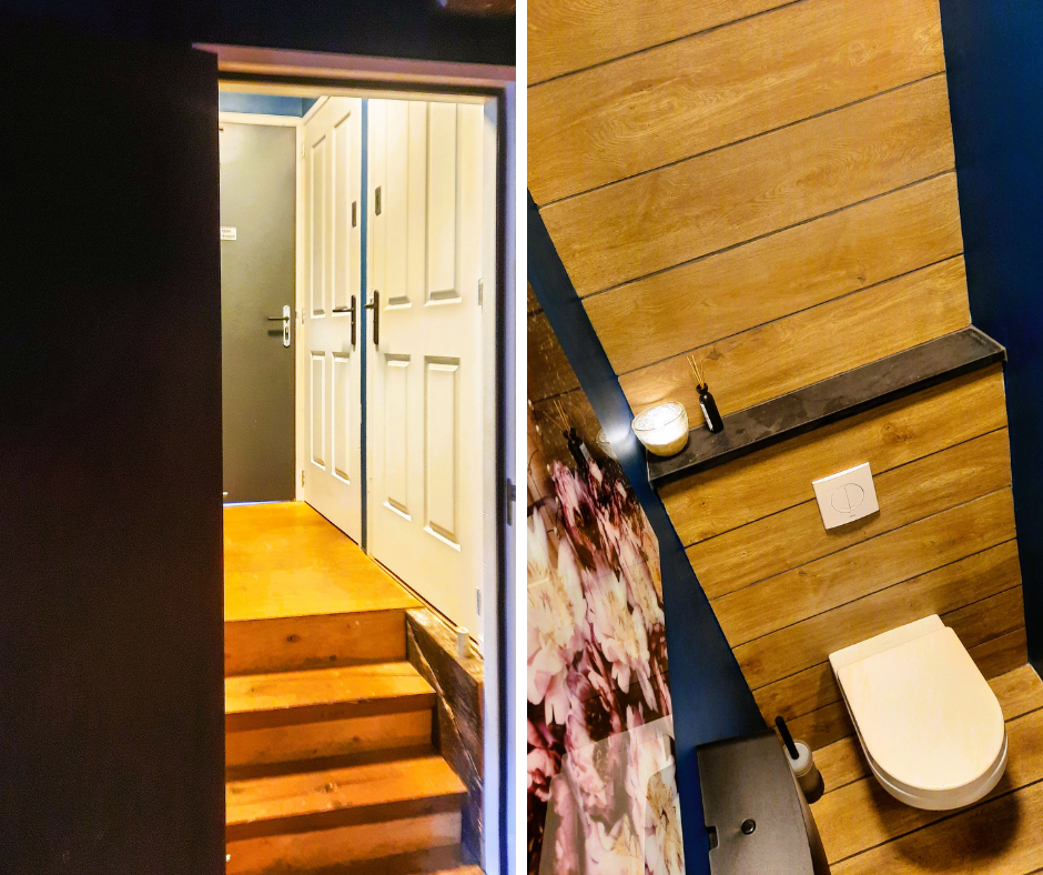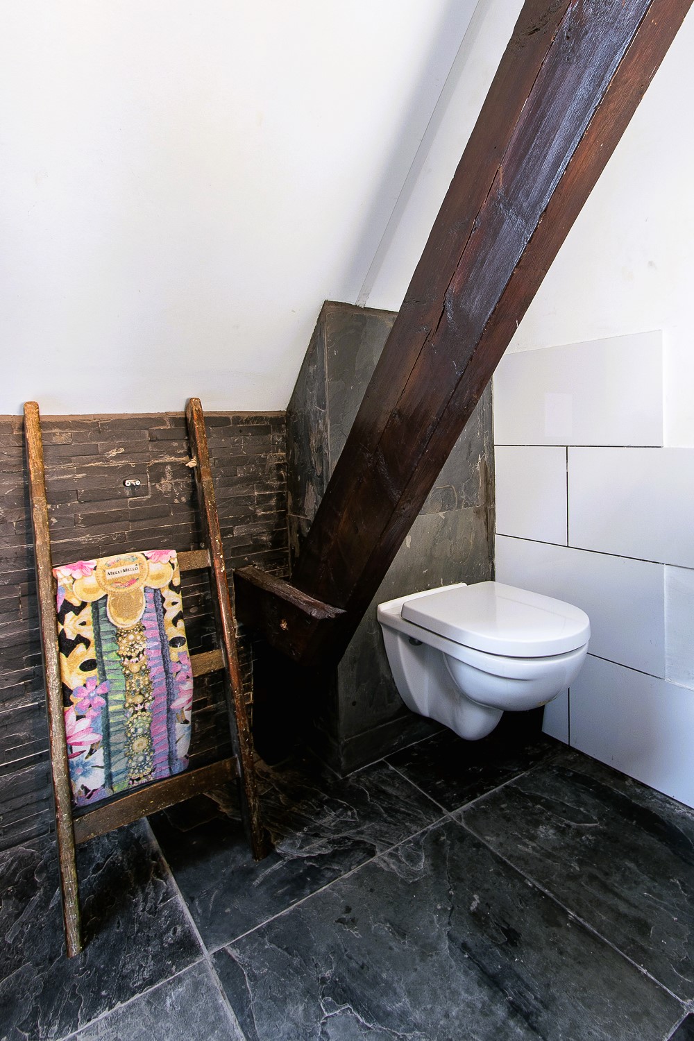 Verscholen achter de oude Aziatische deuren bevindt zich de lift, waardoor u geen zware voorraad hoeft te tillen. Links van de trap bevindt zich de toiletruimte met 2 toiletten, mooi gedecoreerd met fraaie accessoires.