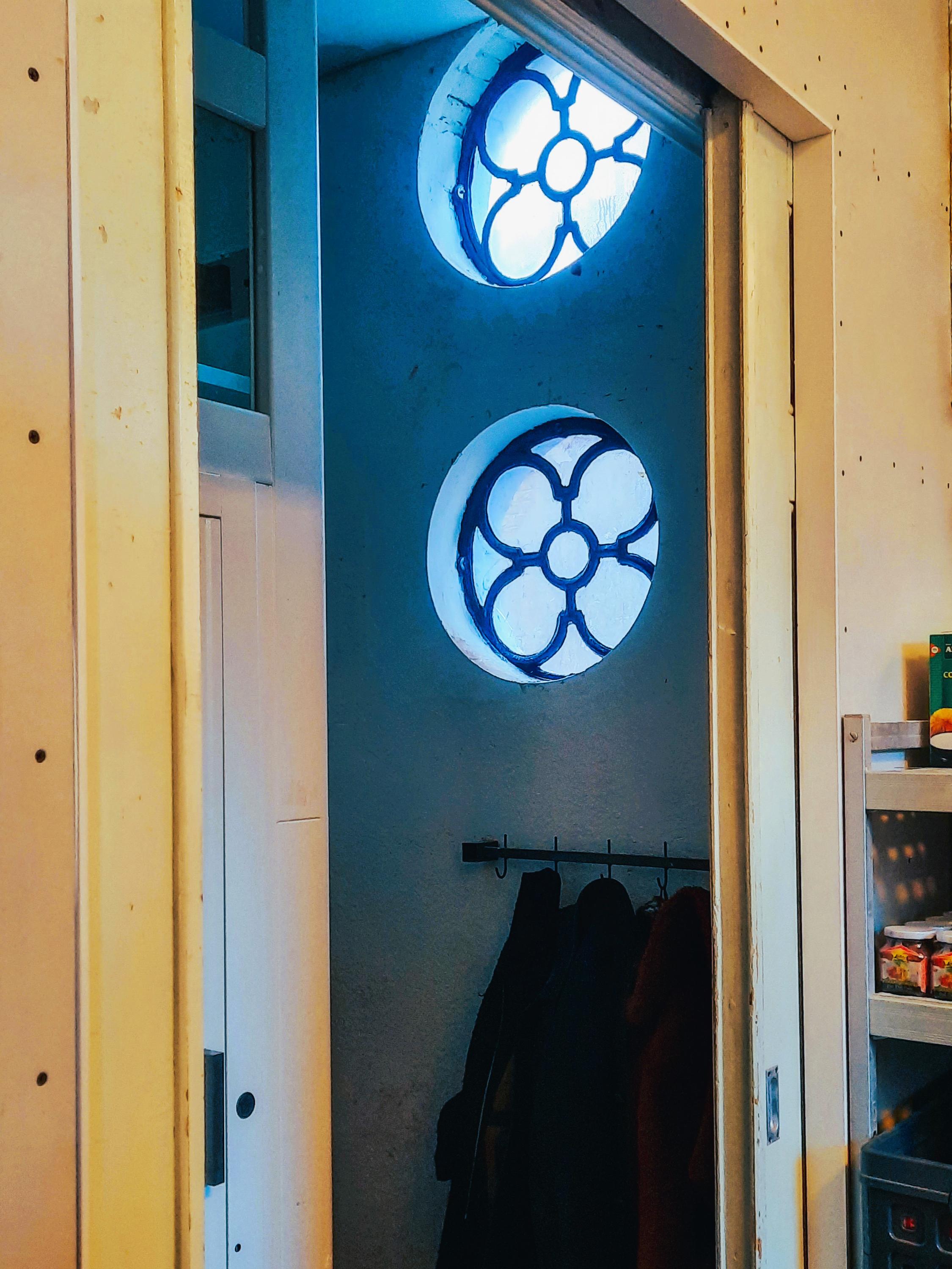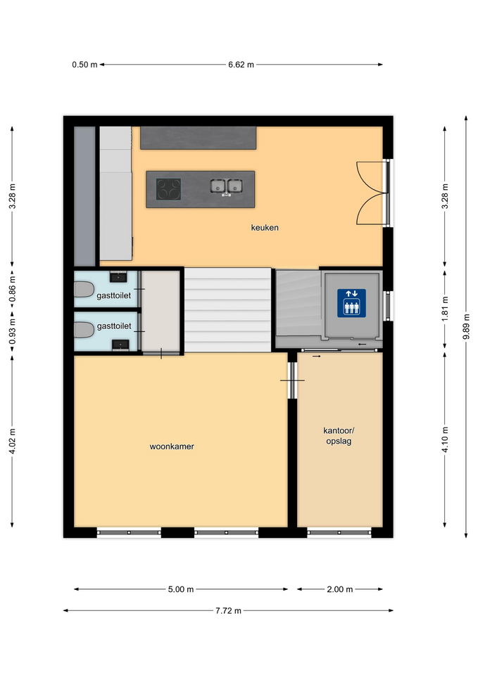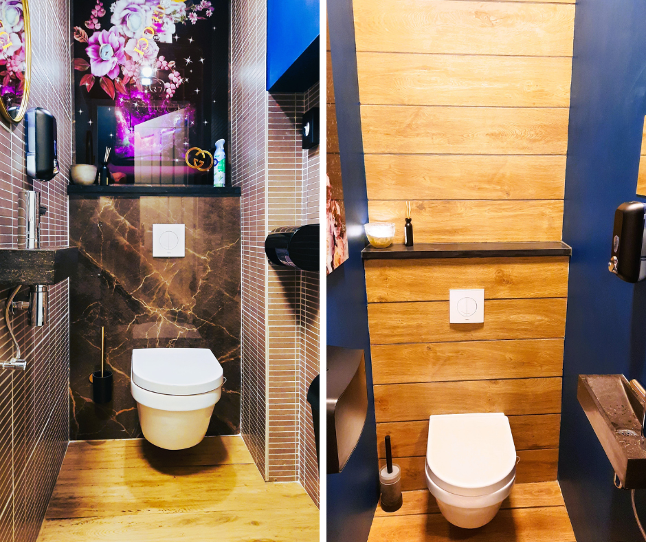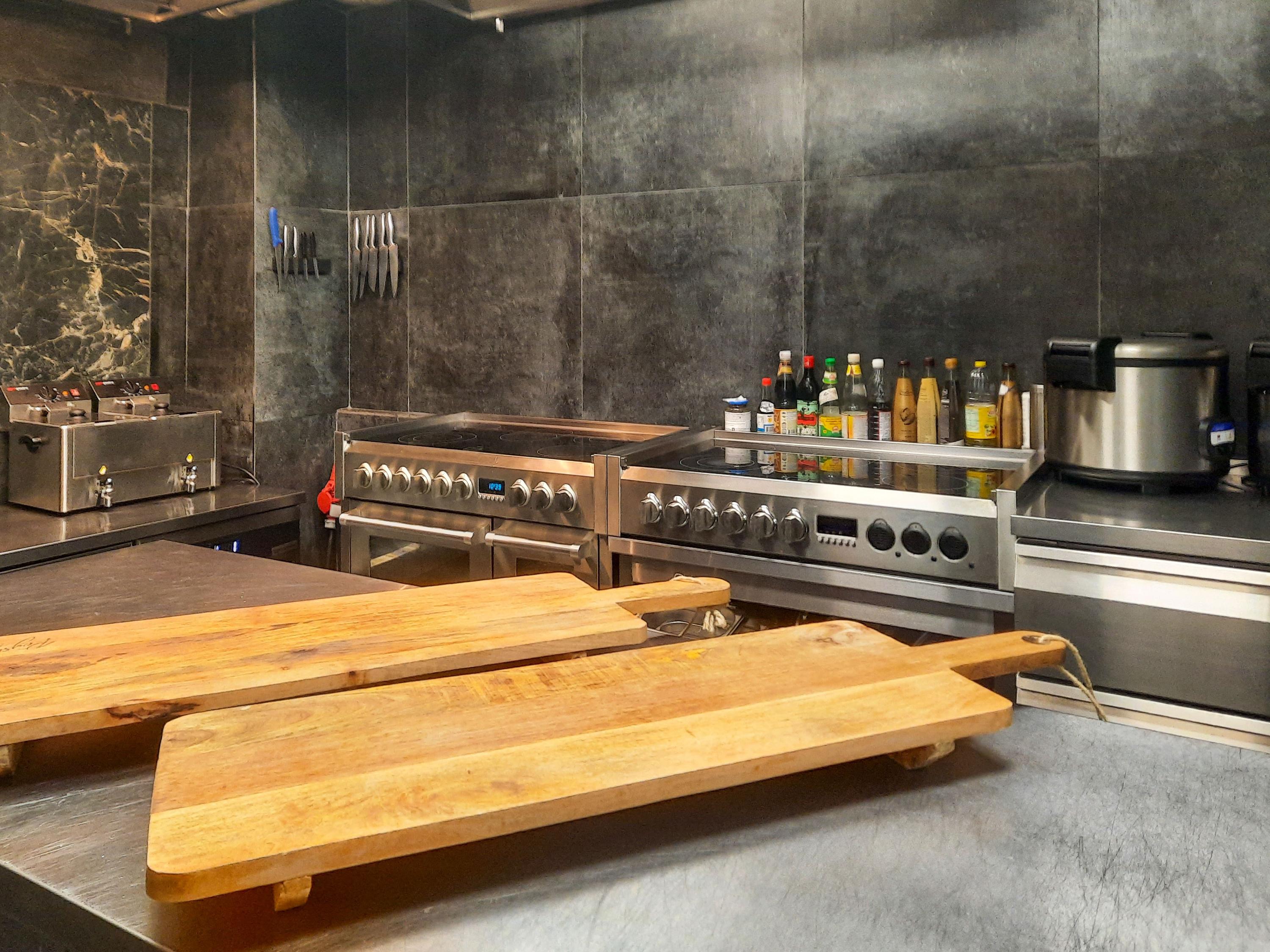 Verscholen achter de oude Aziatische deuren bevindt zich de lift, waardoor u geen zware voorraad hoeft te tillen. Links van de trap bevindt zich de toiletruimte met 2 toiletten, mooi gedecoreerd met fraaie accessoires.