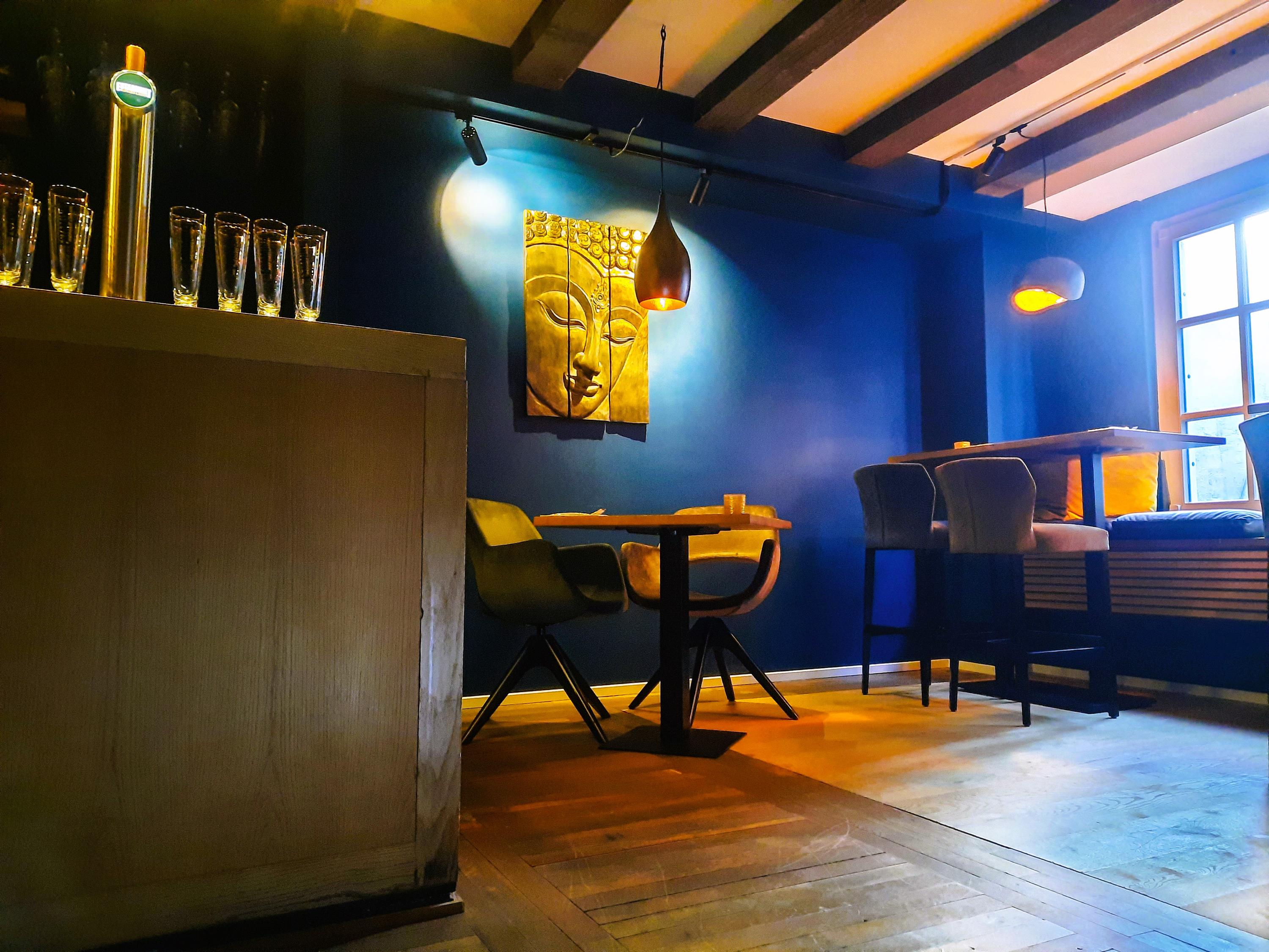 Entre-sol: de trap volgend komt u uit op bij de bar, hoge tafeltjes, mooie stoelen en warme aankleding gaven deze ruimte een sfeervol en knus gevoel.