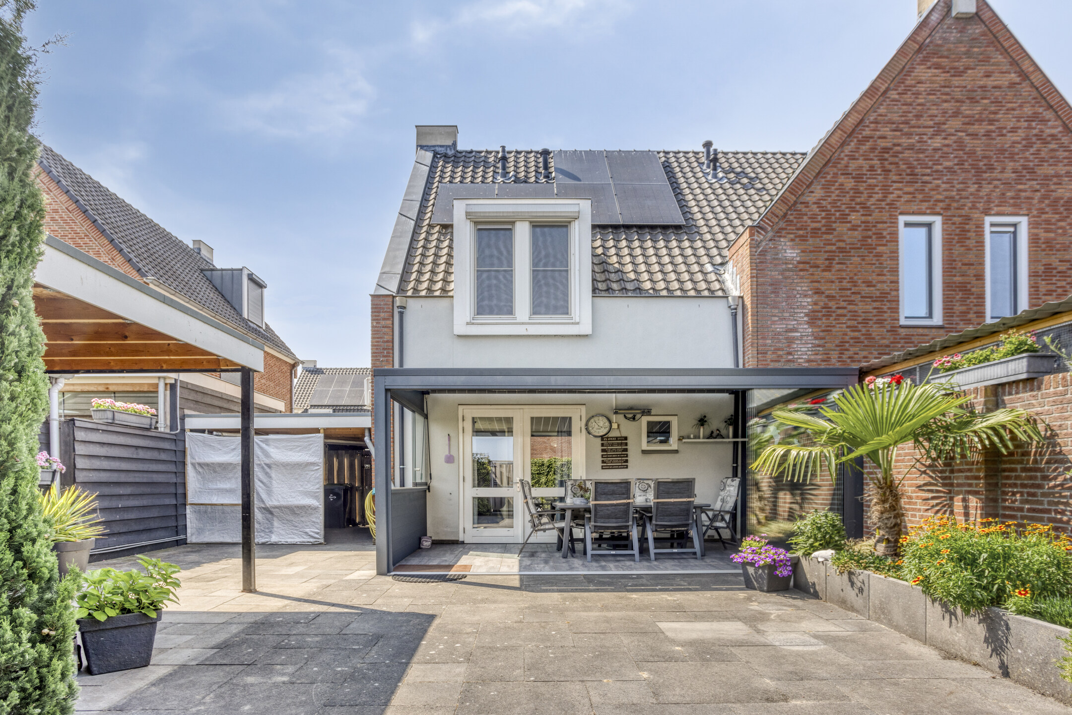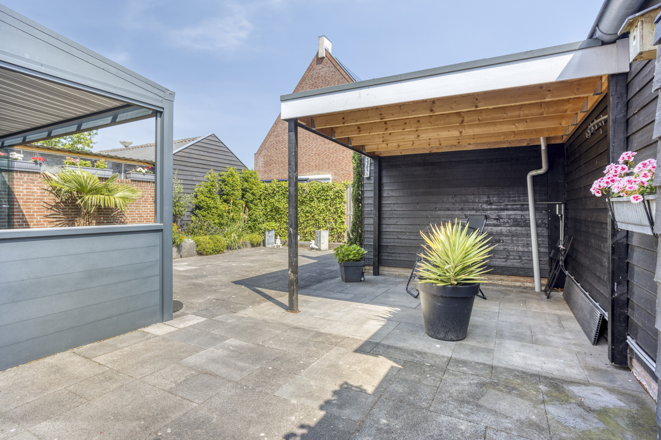 De verzorgde voor- en achtertuin zijn onderhoudsvriendelijk aangelegd en maken het geheel zeer compleet. Zo beschikt de privacy biedende achtertuin over moderne terrastegels, diverse plantenborders en een houten berging met overkapping. De tuin met is middels afsluitbare poort voorzien van een achterom heeft een zonnige ligging op het zuidoosten.