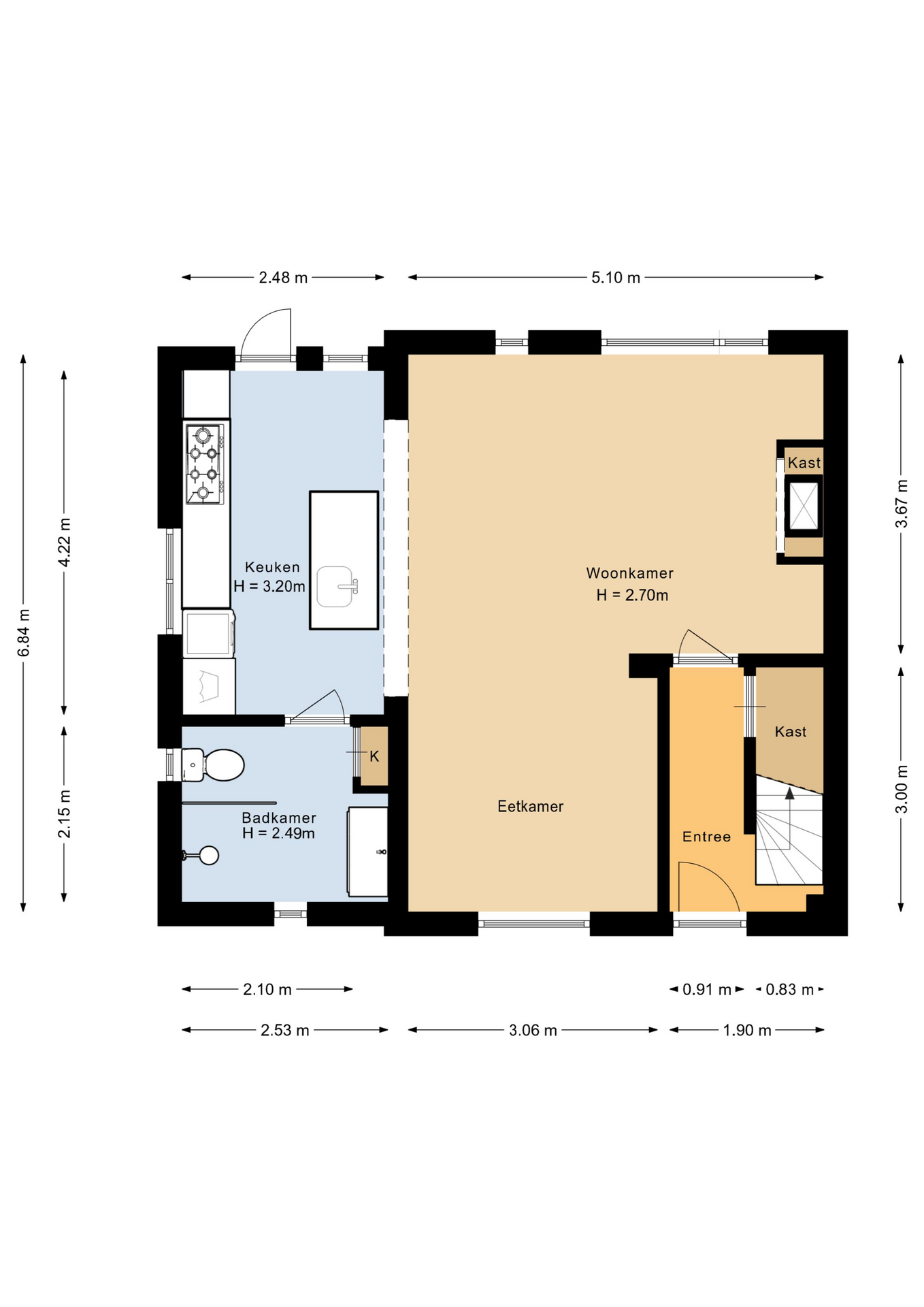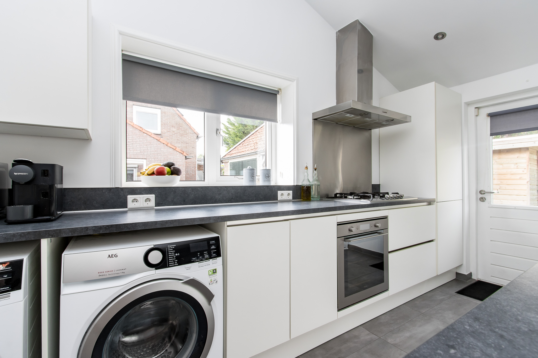 Indeling woning: de entree bevindt zich aan de voorzijde en geeft toegang tot de hal met garderobe, trapopgang naar de verdieping en handige trapkast. Vanuit de hal stap je de sfeervolle woonkamer binnen met een open verbinding naar de moderne keuken voorzien van een 4-pitsgasfornuis met wokbrander, afzuigkap, magnetron, oven, koelkast met vriezer en vaatwasser. Via de keuken is de nette badkamer met inloopdouche, toilet en wastafelmeubel bereikbaar.