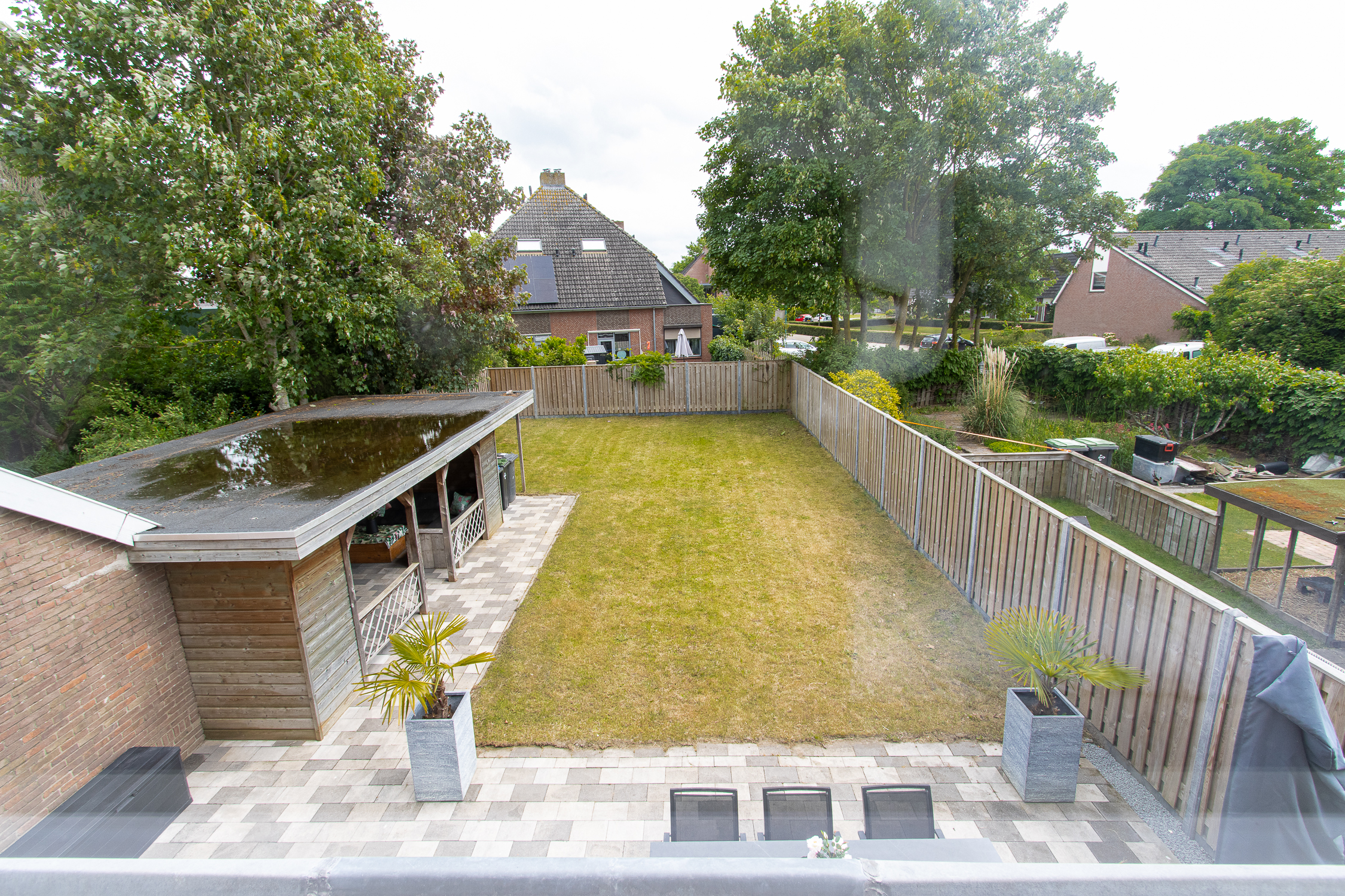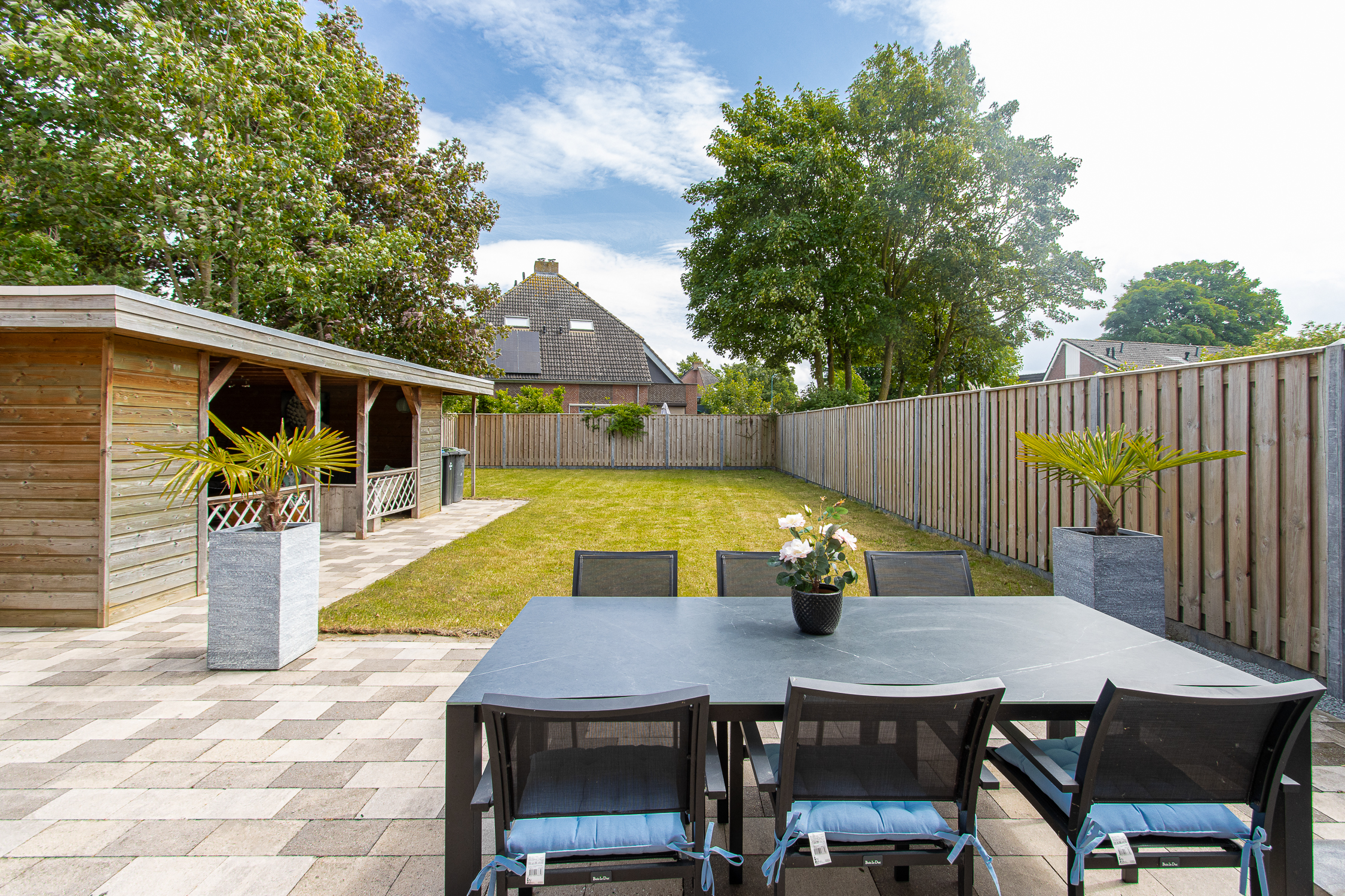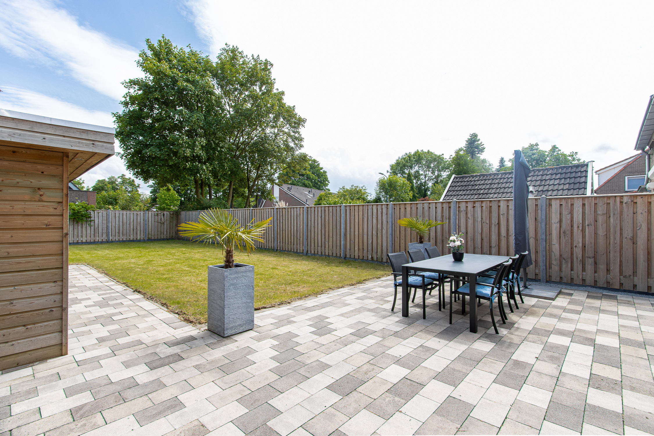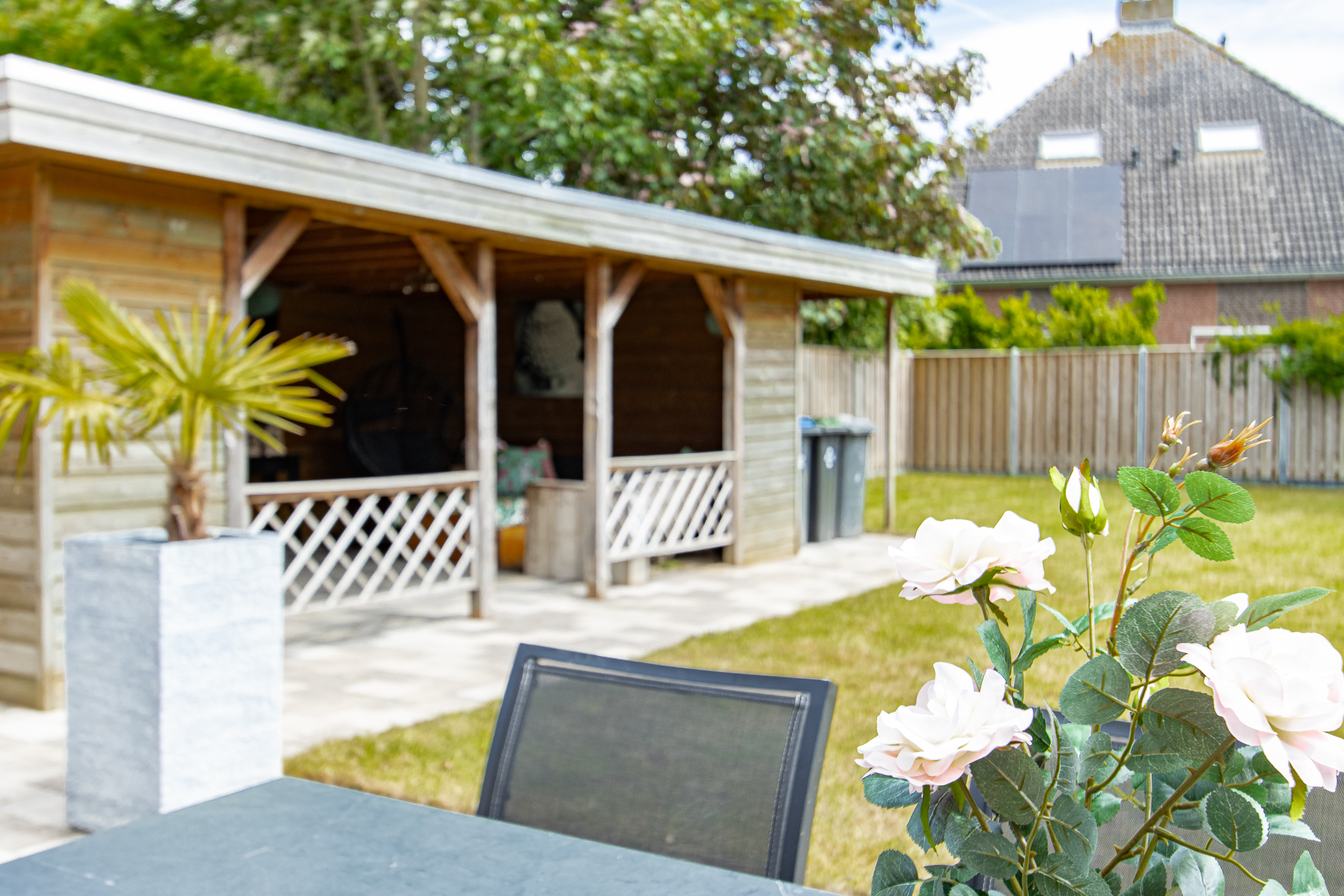 Buiten is het minstens zo genieten als binnen. De zonnige achtertuin op het zuidoosten biedt volop rust en privacy – een fijne plek om te ontspannen onder de fraaie houten overkapping. Dankzij de eigen oprit parkeer je altijd voor de deur, en de praktische stenen schuur en achterom maken het plaatje compleet. Alles is tot in de puntjes verzorgd, ook buiten!