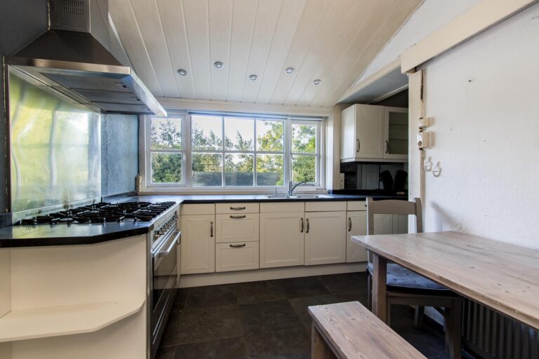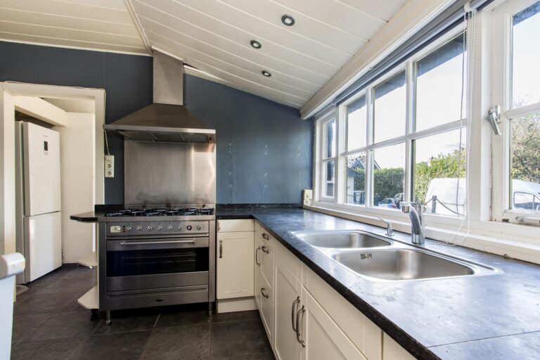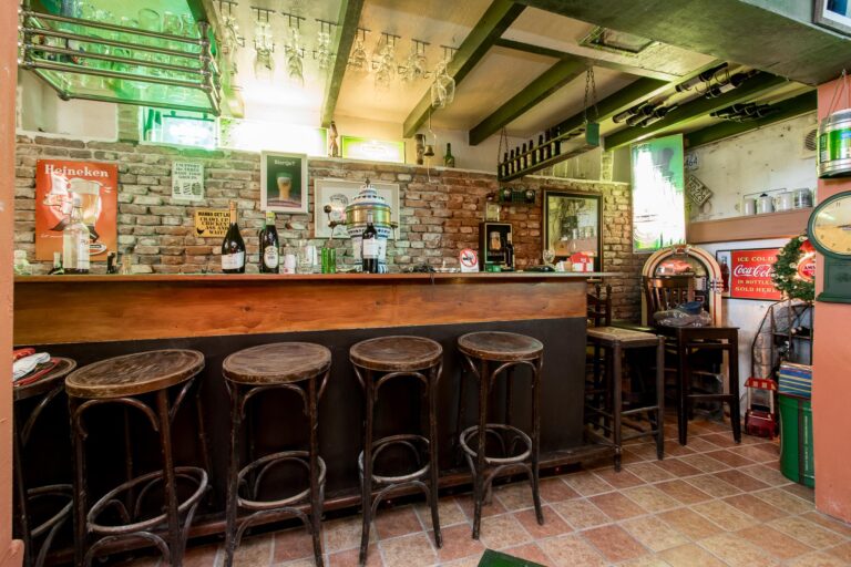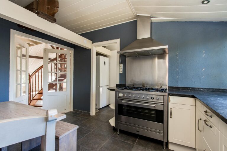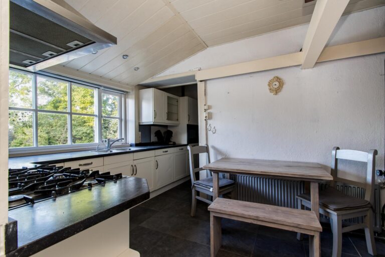 De ruime woonkeuken is de plek waar koken een plezier wordt. Daarnaast vind je op de begane grond het sfeervolle voorhuis, verdeeld in een moderne badkamer met ligbad en inloopdouche, een werkkamer en een slaapkamer, allemaal met de prachtige oude balken in het zicht. Vanuit de werkkamer stap je zo de tuin in. En dan is er nog de geweldige kelder: een echte ‘man-cave’ – of eigenlijk gewoon een ontspanningsruimte voor iedereen – compleet met bar en volop mogelijkheden om er je eigen draai aan te geven.
