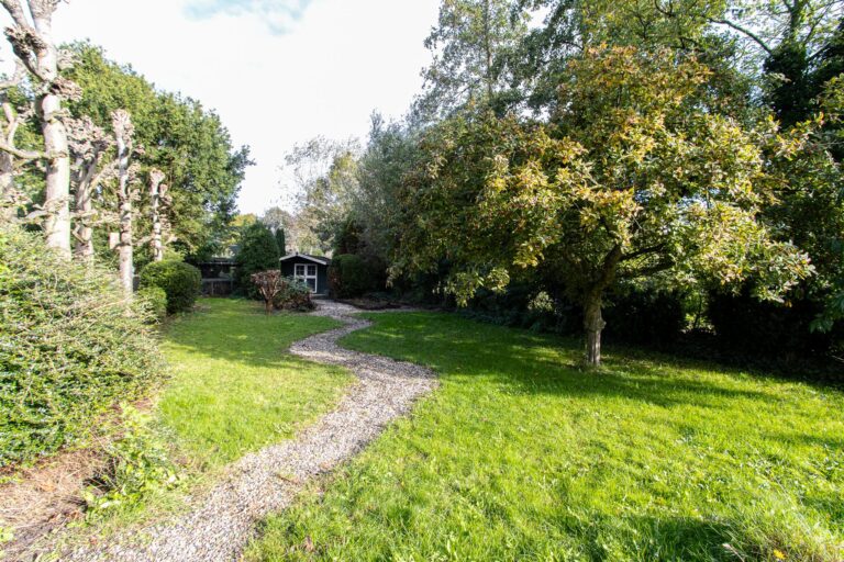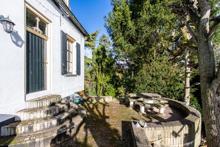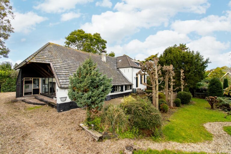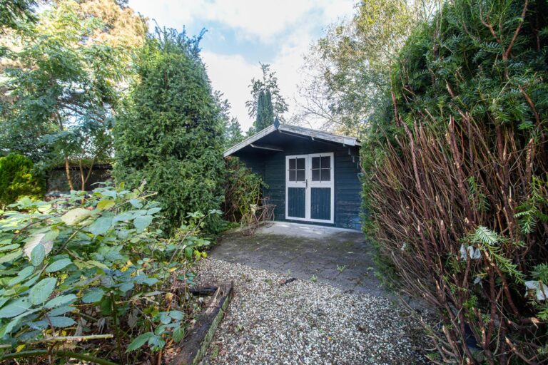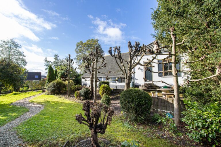 Zodra je het erf oprijdt, valt de charme van dit karakteristieke pand direct op. De woning is omgeven door een prachtige, lommerrijke tuin met terrassen, een gazon, bomen en kleurrijke borders: een waar paradijs op maar liefst 2255 m² grond. Naast het woonhuis staan de dubbele garage (68 m²) met grote zolder, een charmant tuinhuisje en een authentiek kippenhok, wat de landelijke sfeer compleet maakt.