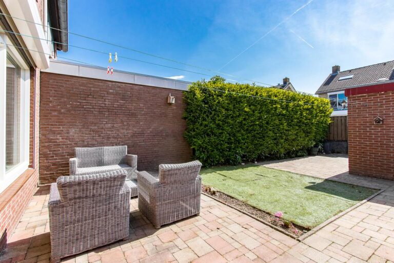 De achtertuin met achterom is onderhoudsvriendelijk aangelegd d.m.v. sierbestrating en is gunstig gelegen op het zuiden waardoor u optimaal kunt genieten van de zon!