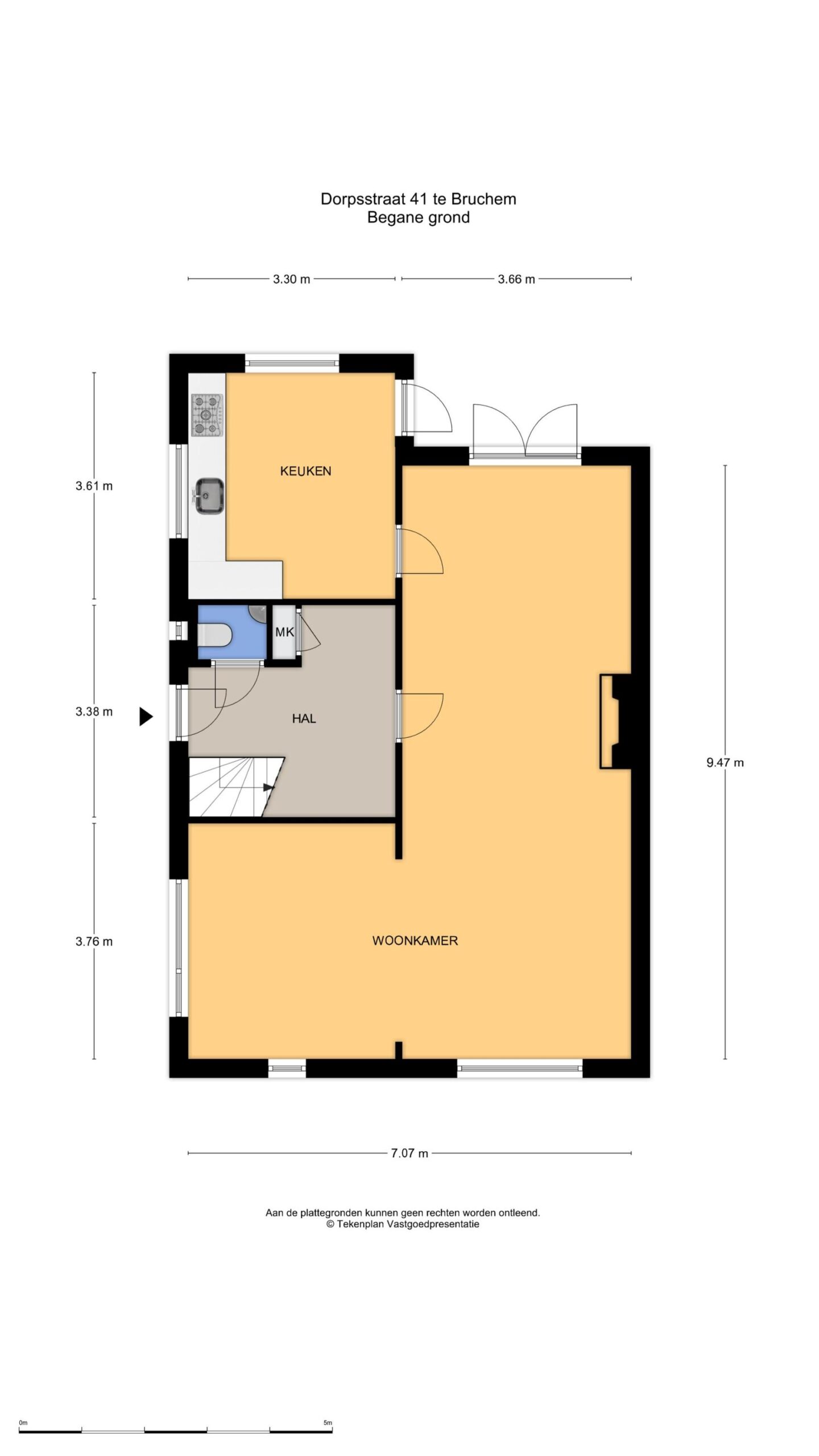 Indeling woning: de entree bevindt zich aan de linkerzijde van de woning en geeft toegang tot de ruime hal voorzien van garderobe, toiletruimte, meterkast en trapopgang naar de eerste verdieping. Vanuit de hal stap je de ruime L-vormige doorzonwoonkamer binnen die aan de voorzijde een weids uitzicht biedt over de landerijen en aan de achterzijde middels openslaande deuren toegang geeft tot de tuin. De dichte woonkeuken is vanuit de woonkamer bereikbaar en is ingericht met een moderne hoekkeuken voorzien van diverse inbouwapparatuur, zoals een keramische kookplaat met wokbrander, afzuigkap, oven, koelkast en vaatwasser.