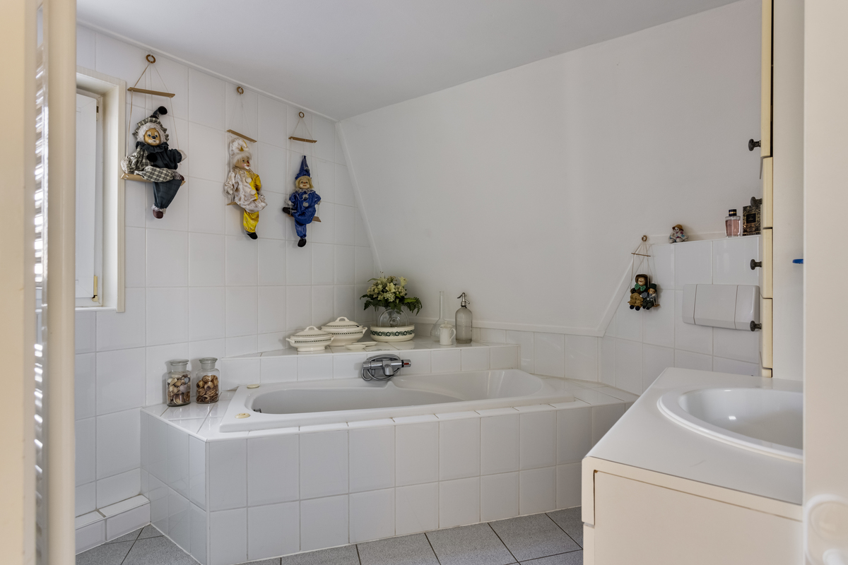 Eerste verdieping: de overloop leidt naar twee ruime slaapkamers en de waskamer. Via een portaal is er aan de achterzijde een ruime badkamer en derde slaapkamer met royale inlooplast te bereiken.