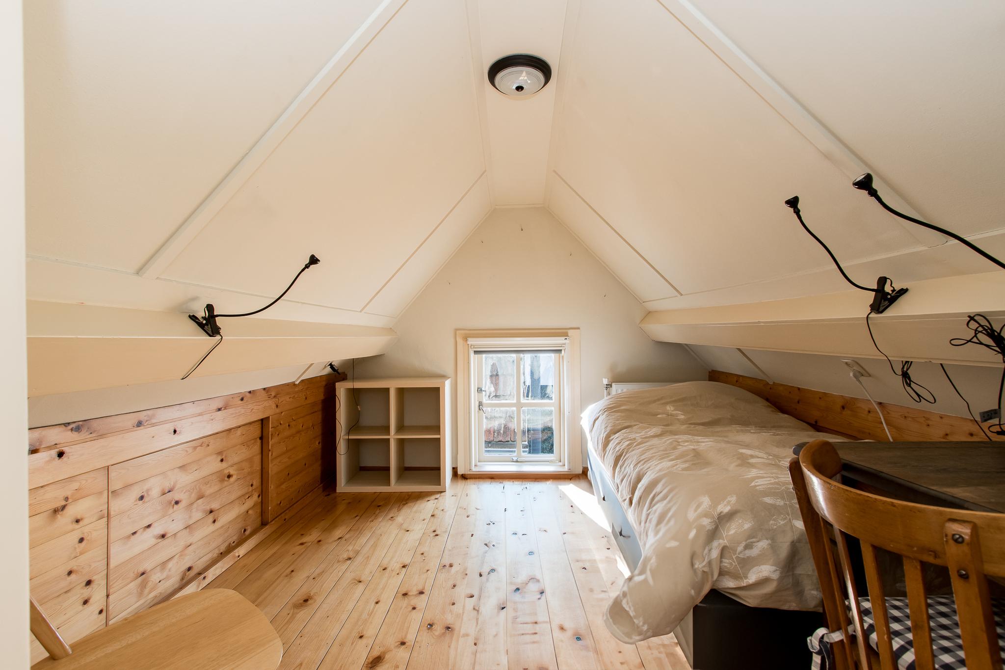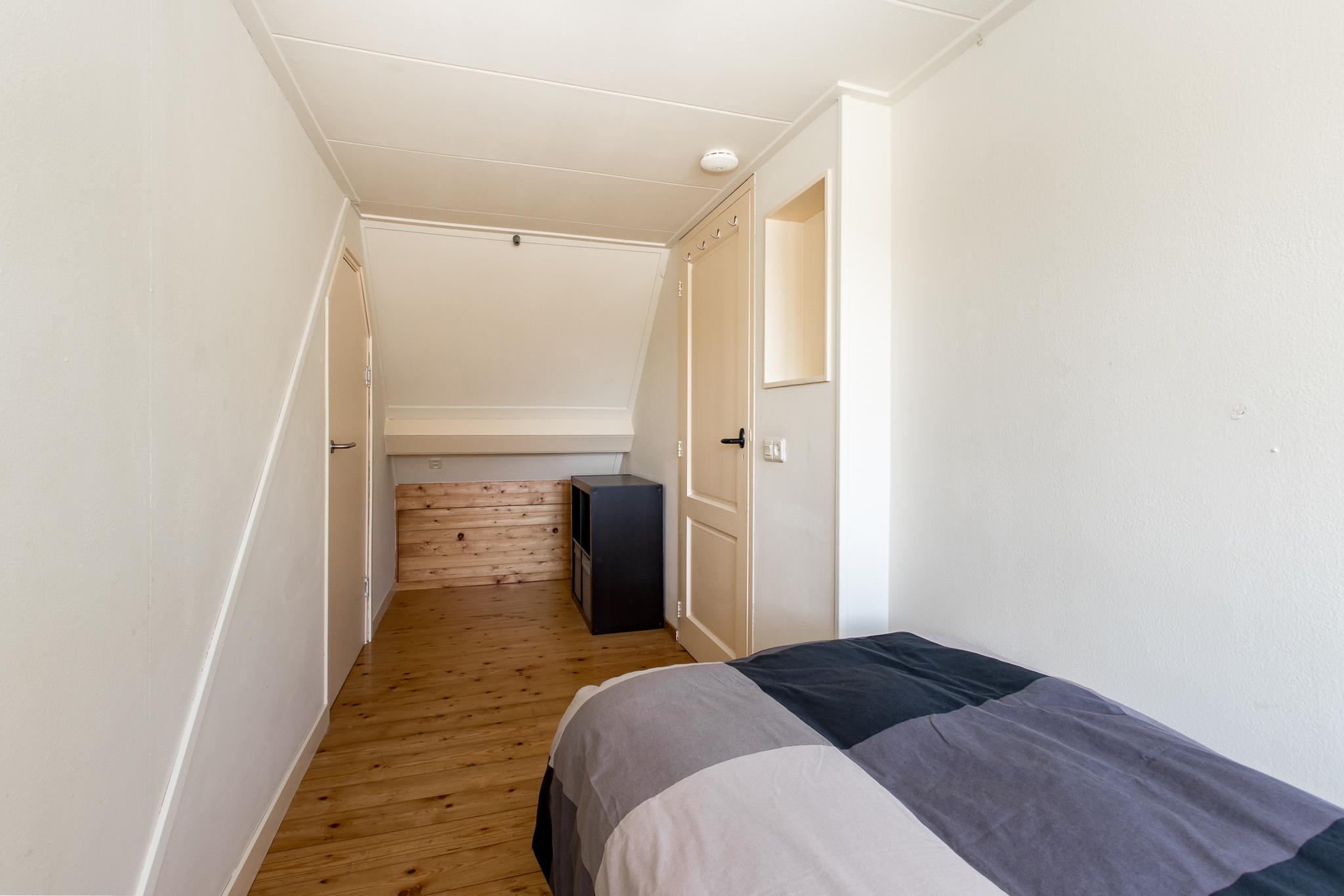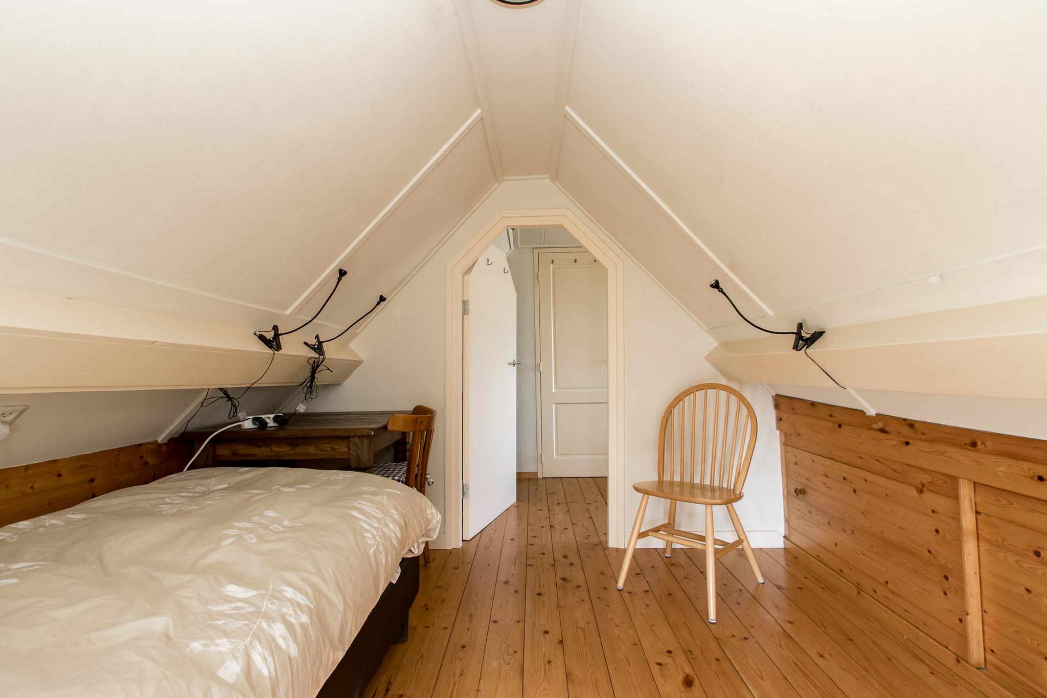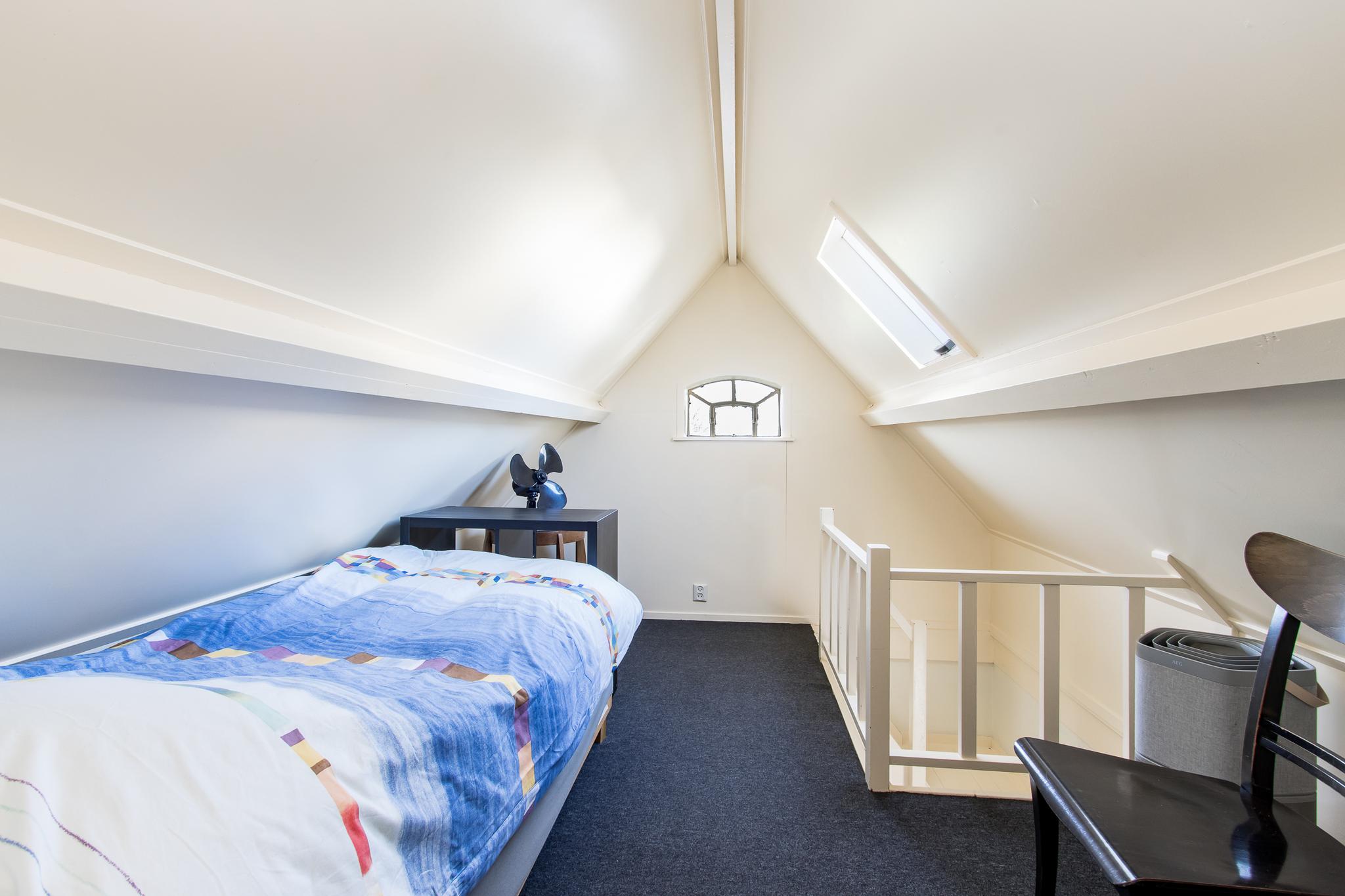 Eerste verdieping: de overloop leidt naar drie slaapkamers, een aantal vaste kastruimte en toiletruimte met wastafel. De vierde slaapkamer is toegankelijk via één van de andere slaapkamers. Door het weghalen van het wandje tussen de derde en vierde slaapkamer ontstaat er één grote (slaap)kamer.
