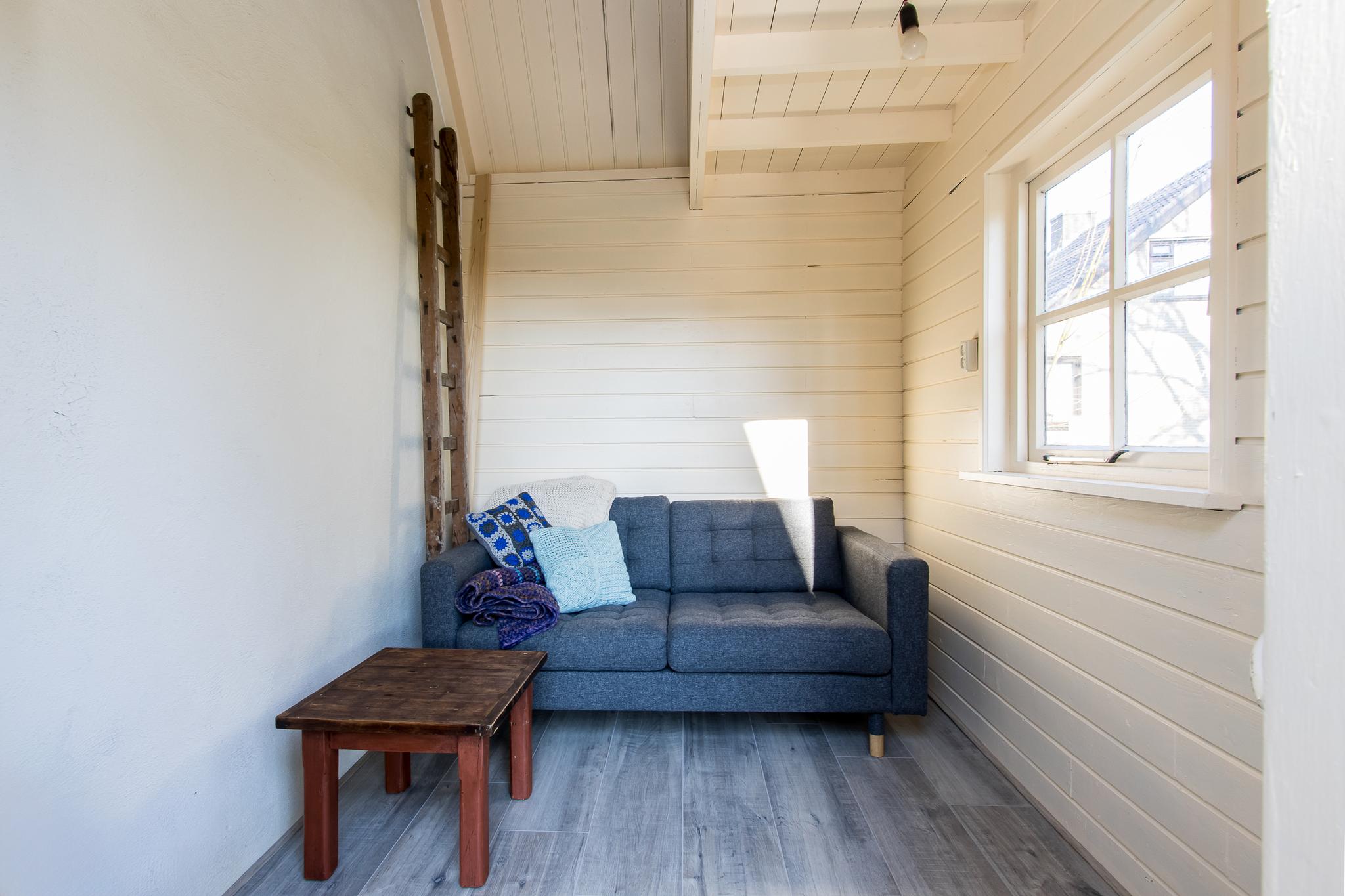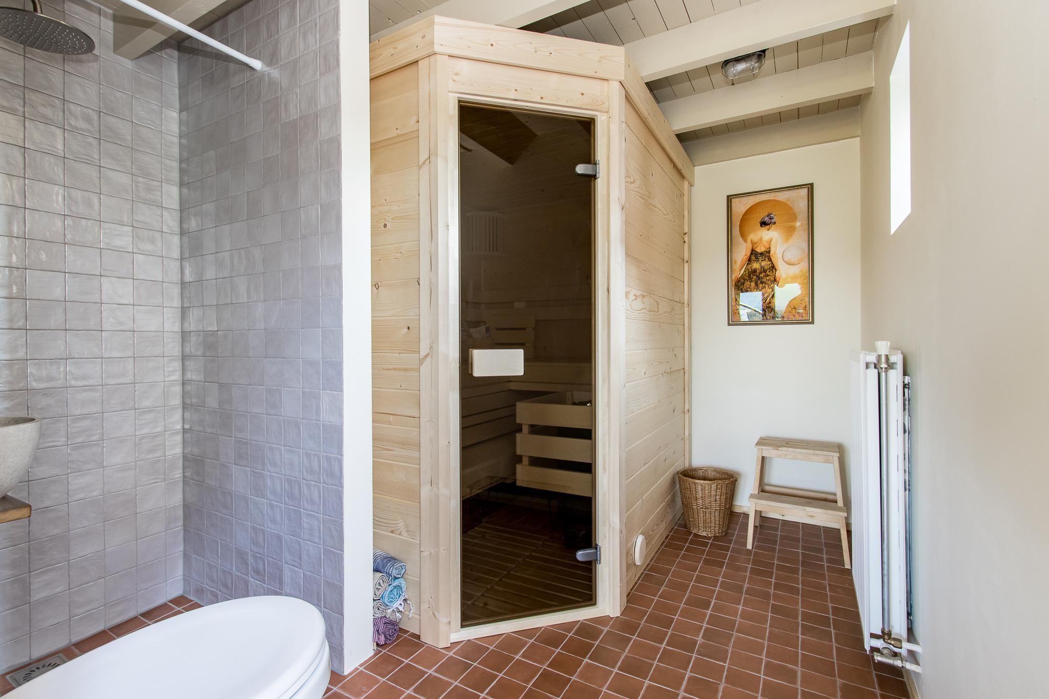 Indeling bijgebouw 2: deze sfeervolle ruimte is voorzien van open ruimte met klein keukenblok, zitkamer, badkamer met douche en toilet, sauna en vliering. Via een aparte entree is er een extra ruimte bereikbaar. Het bijgebouw is voorzien van krachtstroom.