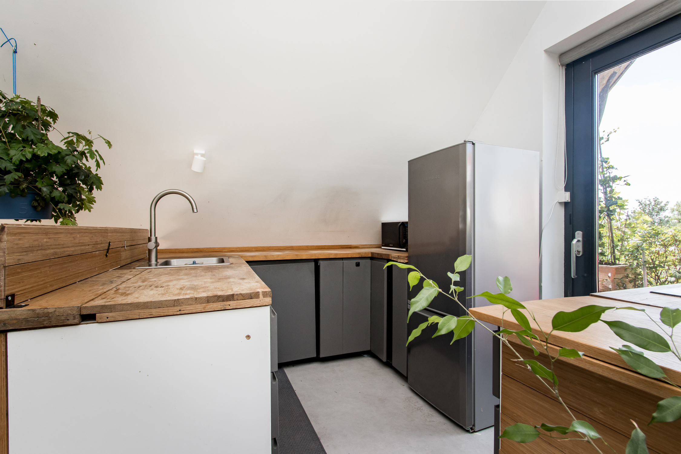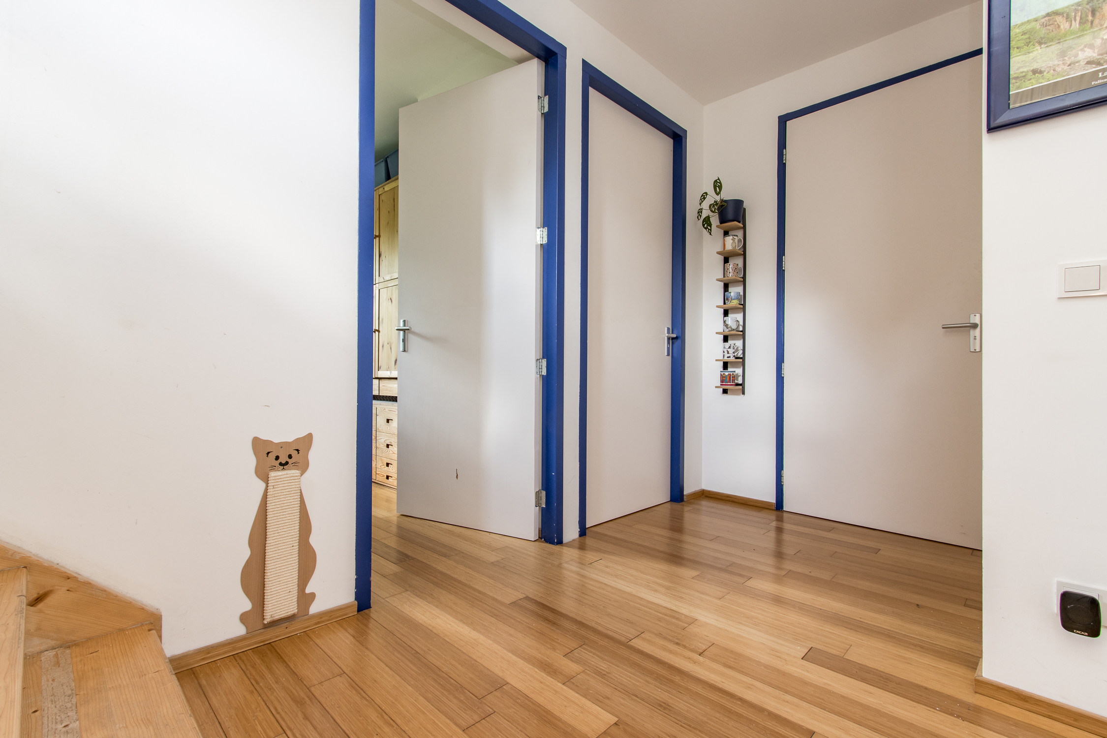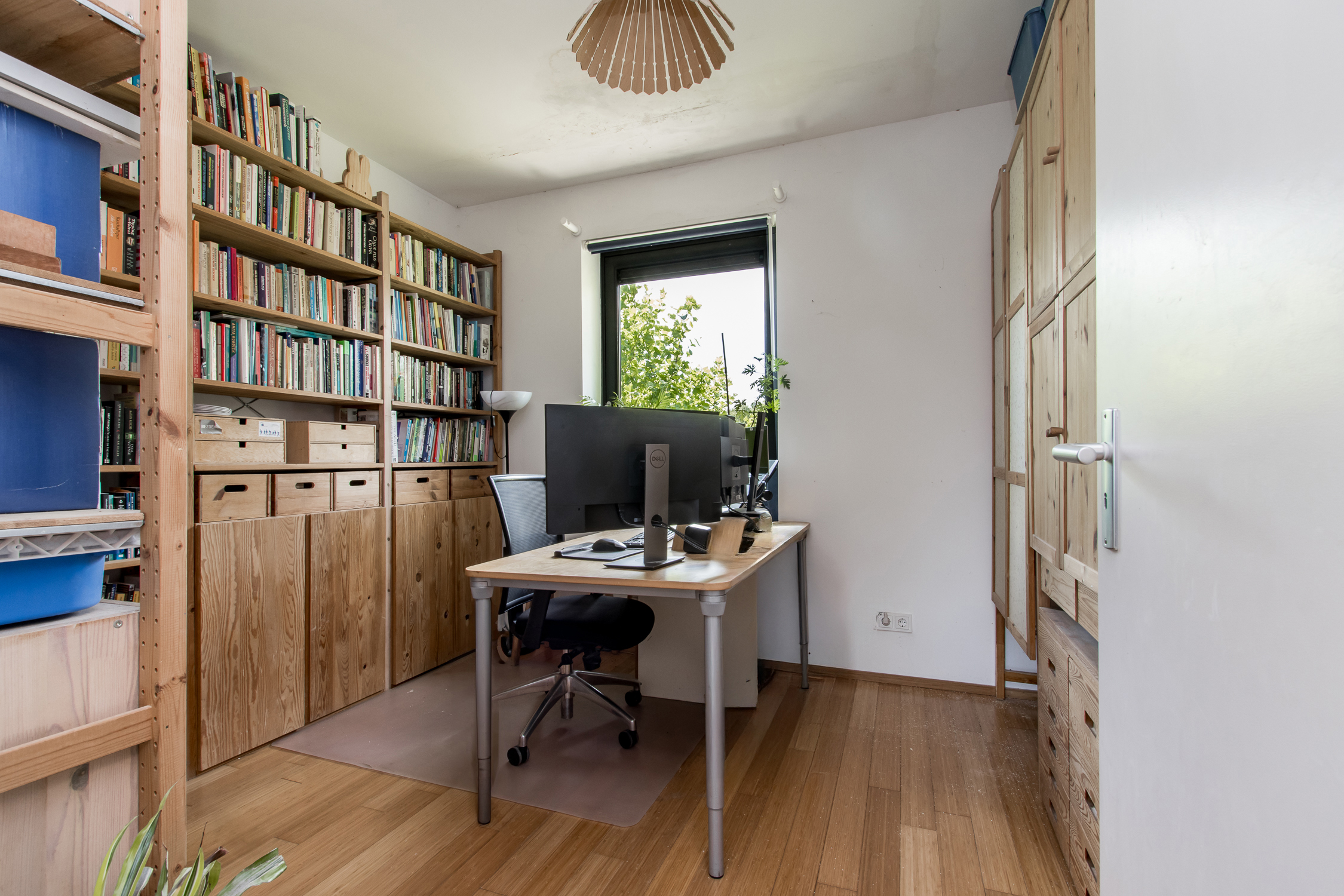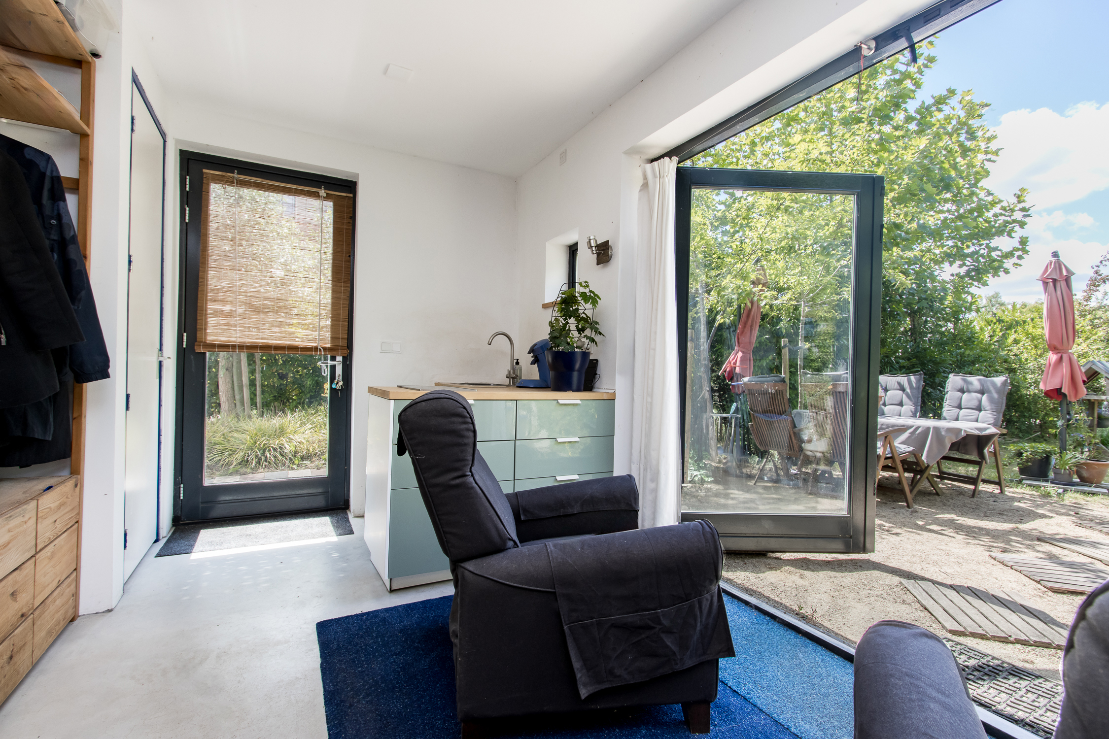 De openslaande deuren geven toegang tot de entree van de woning. Hier bevindt zich de bijkeuken met praktisch keukenblok en multifunctionele ruimte voor bijvoorbeeld een kantoor- of praktijkruimte. Wonen en werken aan huis behoort zeker tot de mogelijkheden! Op de begane grond bevindt zich tevens de wasruimte, toiletruimte en installatieruimte.