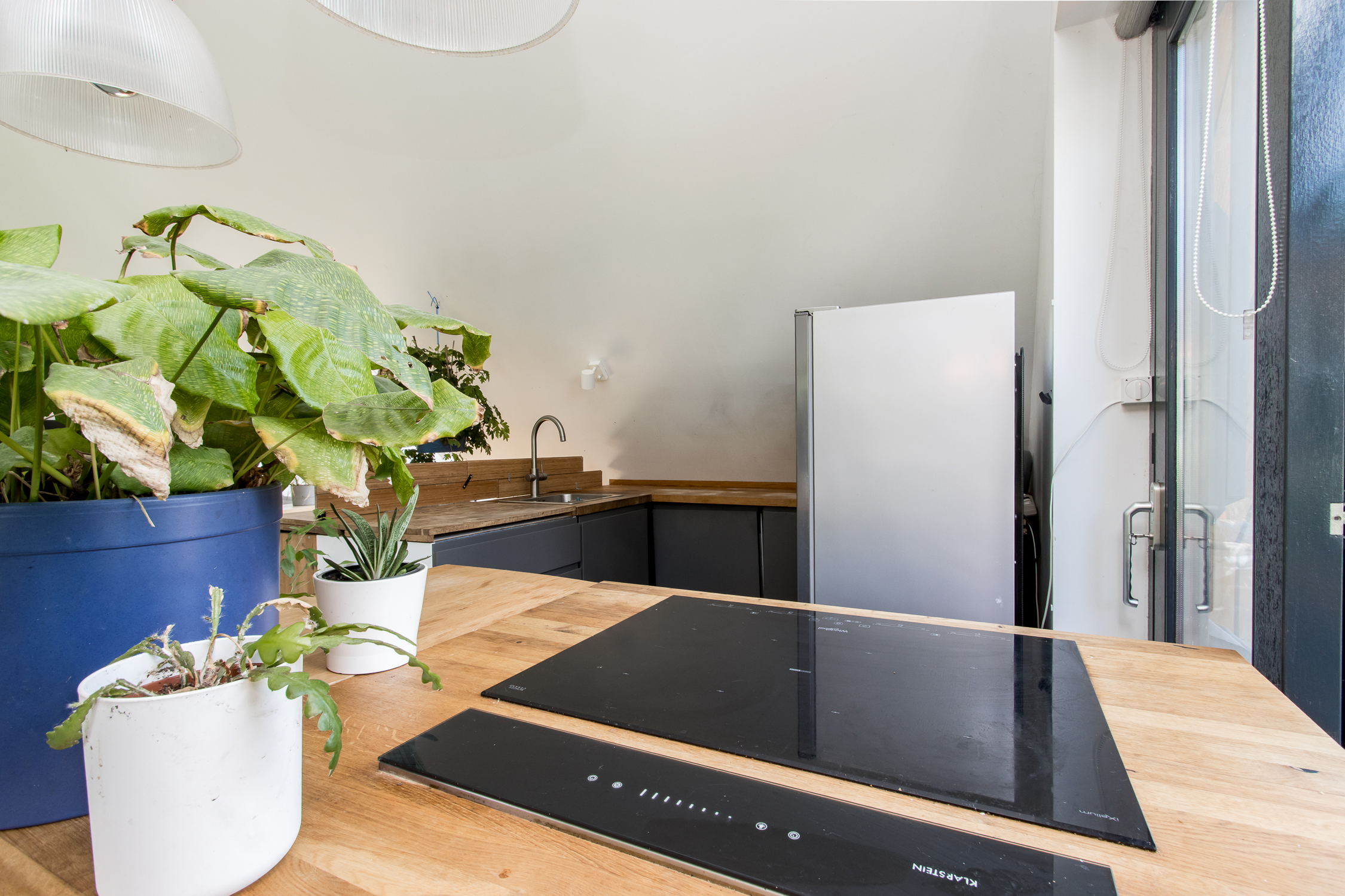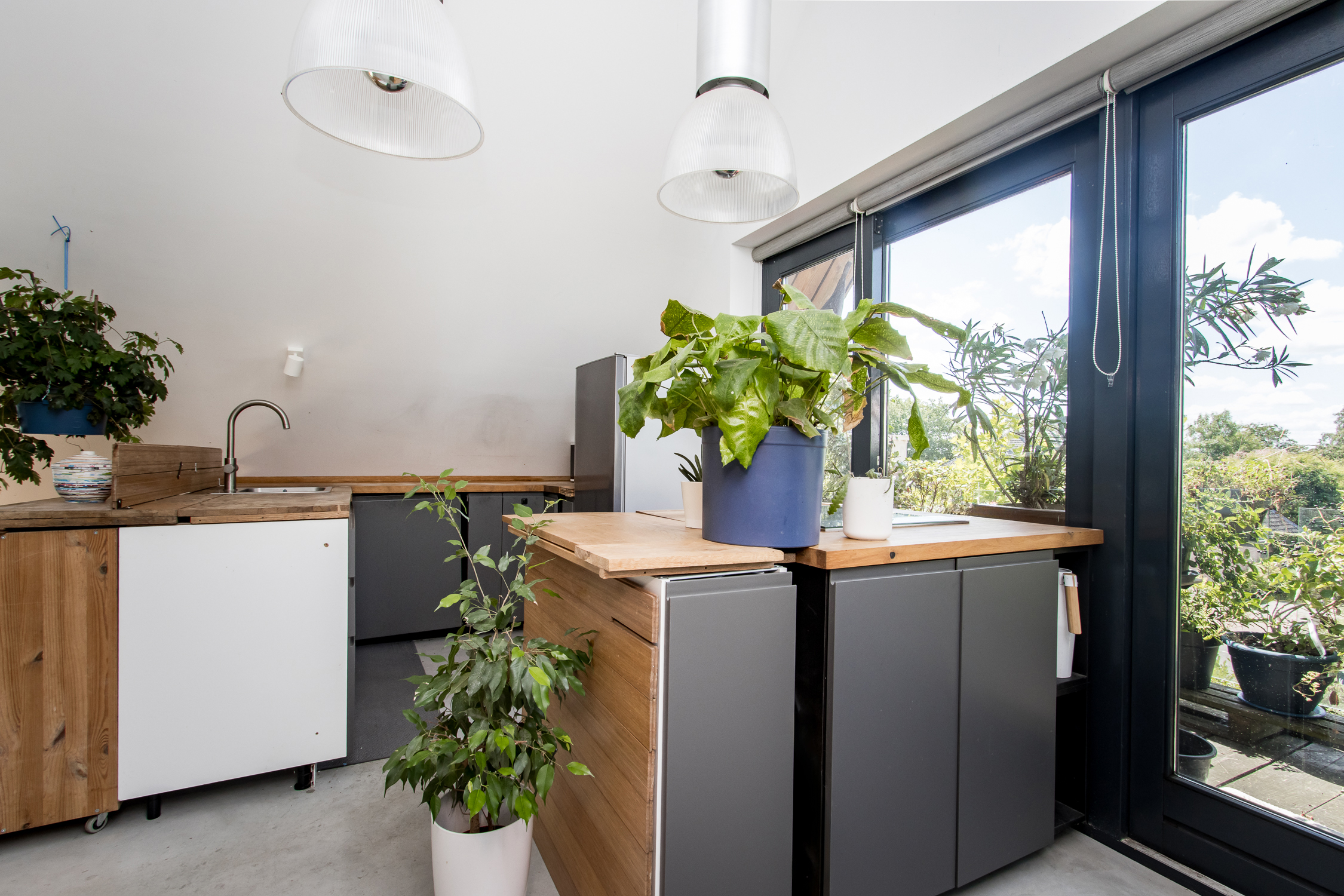 Op dijkniveau is de living met open keuken gesitueerd. Deze fijne ruimte biedt door de grote raampartijen heerlijk veel lichtinval en een prachtig panoramisch uitzicht. De keuken heeft een hoekopstelling met kookeiland en is uitgerust met diverse inbouwapparatuur zoals: kokend waterkraan, inductiekookplaat, afzuiging en oven. Middels de schuifpui is het balkon toegankelijk. Ook hier is het genieten van een prachtig uitzicht!