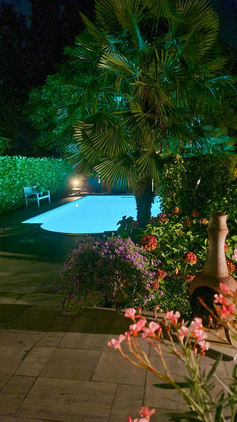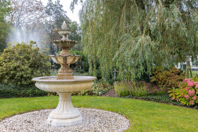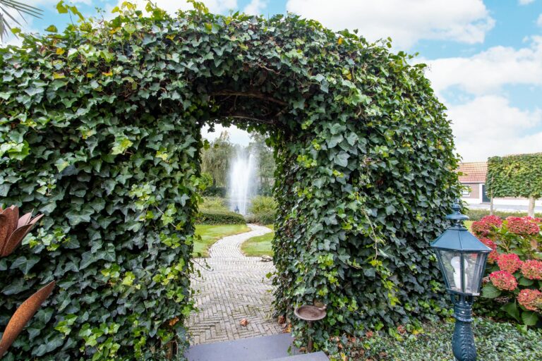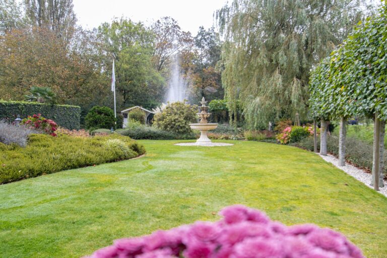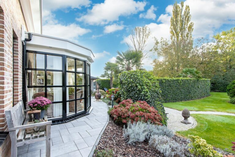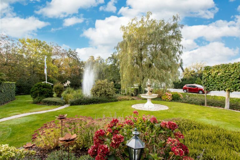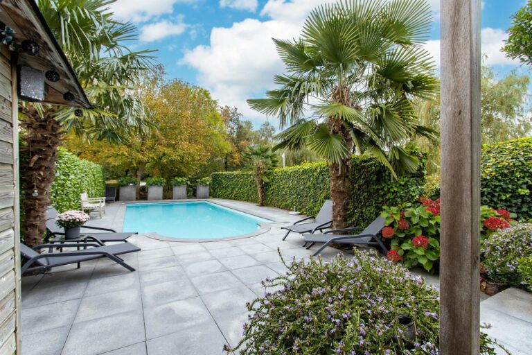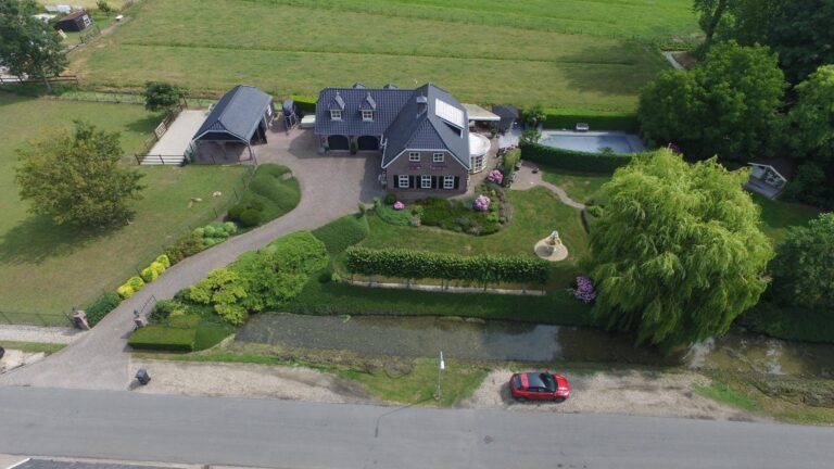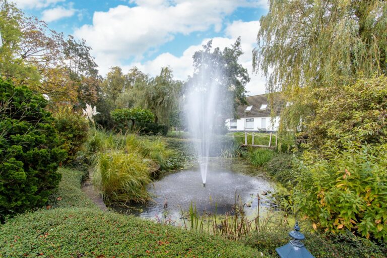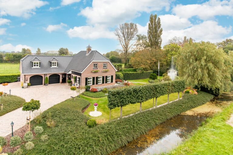 De royale tuin van dit prachtig gelegen landhuis is een ware droom voor buitenliefhebbers. Op het ruime perceel van 4.550 m² geniet u van absolute privacy en rust te midden van het groen. De tuin is zorgvuldig aangelegd met meerdere terrassen, elk met hun eigen unieke sfeer en uitzicht. Het starline zwembad met solar roldeck is uitgerust met een complete waterbehandeling die automatisch wordt geregeld. En om het zwemseizoen te verlengen, kan het bad tevens worden opgewarmd met de aanwezige warmtepomp (2024). De romantische vijver, met fontein en bruggetje, voegt een extra vleugje charme toe aan het geheel. De lange oprijlaan is toegankelijk middels de elektrische poort en biedt volop plek voor het parkeren van meerdere voertuigen. Met een uitgestrekt perceel, compleet met een weelderig gazon, sfeervolle terrassen en diverse overkappingen, is er voldoende ruimte om in alle seizoenen te genieten van het buitenleven.