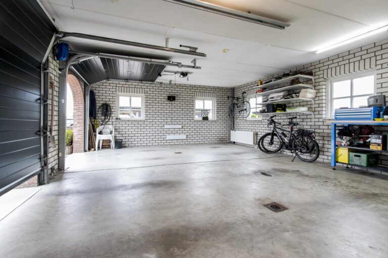 • aangebouwde dubbele garage met elektrische garagedeuren, elektra, water en vloerverwarming;