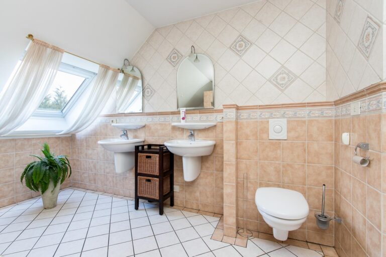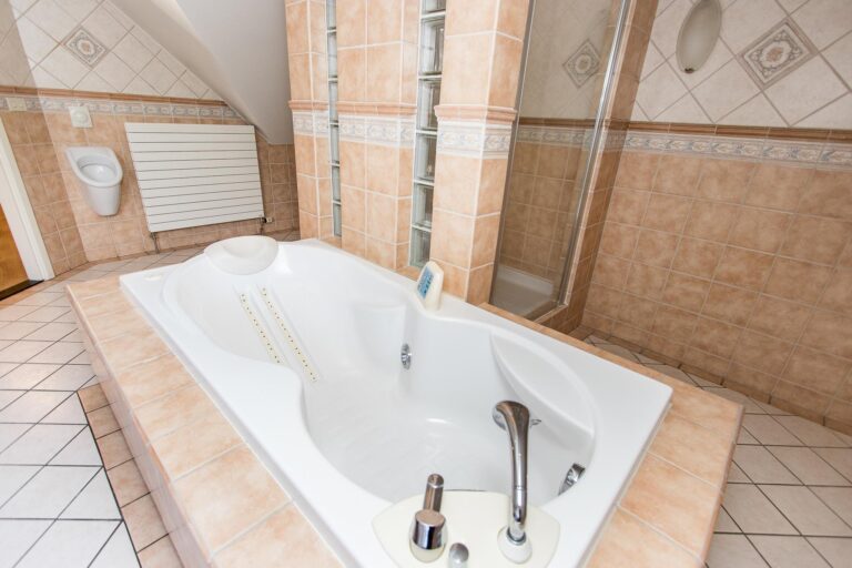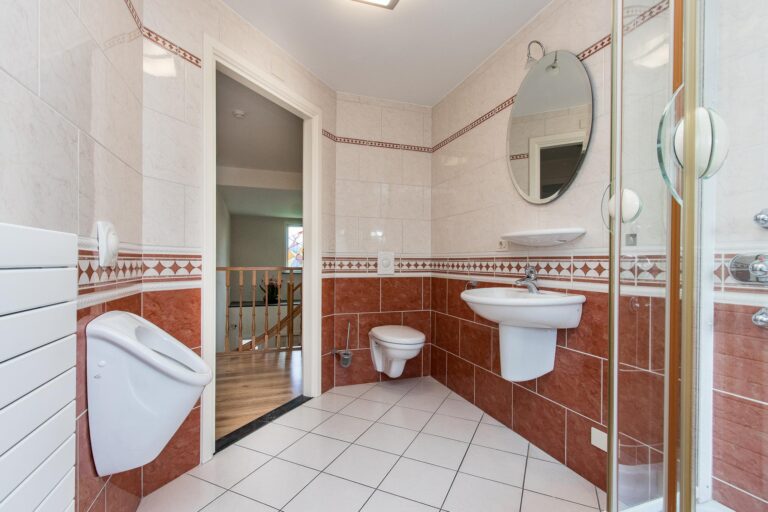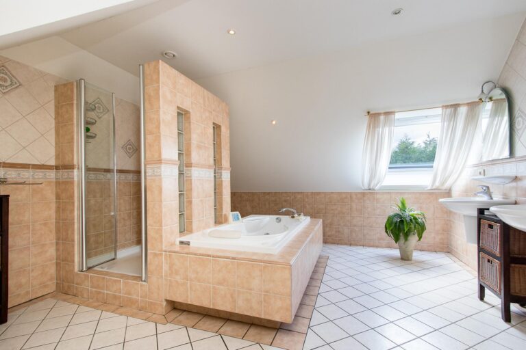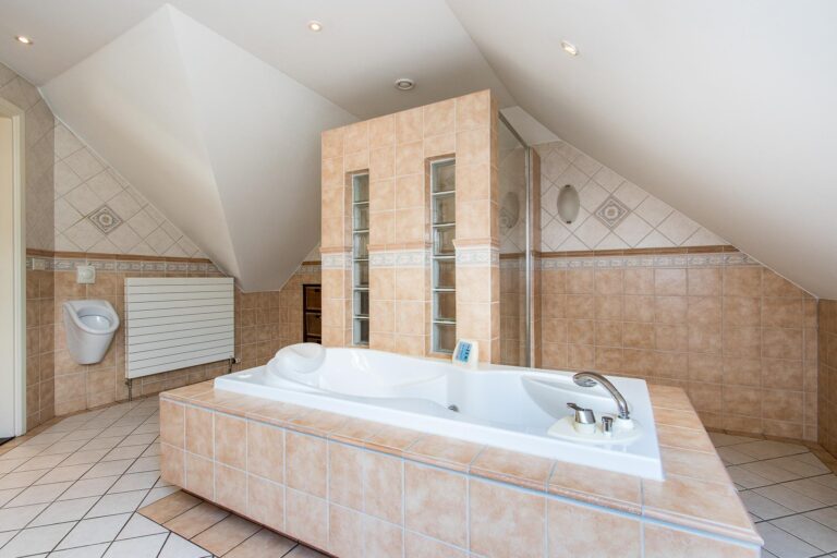 De badkamer bij de master bedroom biedt een ware wellness-ervaring met een jacuzzi, regendouche, 2 wastafels, design radiator, toilet en urinoir. De 2e badkamer straalt luxe uit met een whirlpool, douchecabine met regendouche, wastafel, toilet en urinoir.