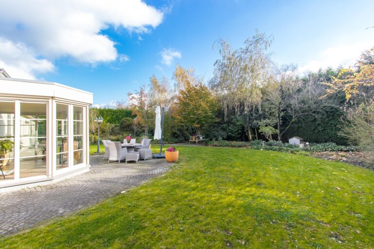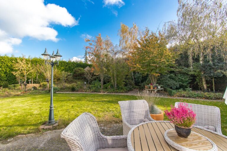 De achtertuin is aangelegd onder architectuur met oog voor detail en is een waar pronkstuk. De zonnige ligging op het zuiden zorgt voor een aangename sfeer. Langs de oprijlaan staan rijen leibomen, terwijl zorgvuldig geselecteerde heesters en bloemen de borders en het ronde perk in de keerlus sieren. Bewandel de kronkelende wandelpaden, ontspan onder de romantische pergola of geniet van de natuurlijke schoonheid onder de druivenranken. Zodra de avond valt, zorgt sfeervolle verlichting voor een betoverende ambiance. Voor de beregening van de gehele tuin is er een tuinsproei-installatie met grondwaterpomp.