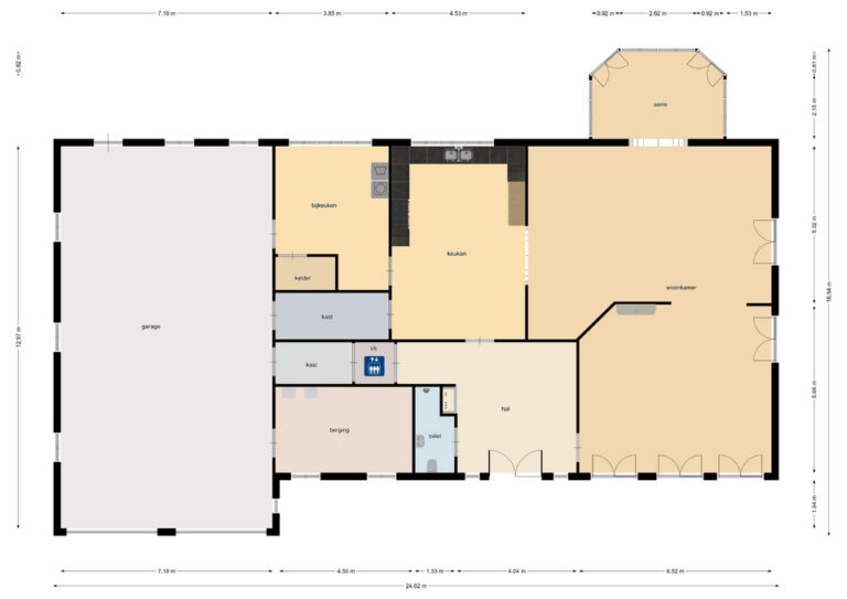 Stap vanuit de keuken in een uitzonderlijk ruime inloop provisiekast met directe toegang tot de garage. Aangrenzend is er een ruime bijkeuken met aansluitingen voor het witgoed. Vanuit de bijkeuken zijn de kelder en garage te bereiken. Voor ultiem gemak is er zelfs een personenlift die u naar de kelder en overige verdiepingen brengt. Deze kelder biedt niet alleen extra ruimte, maar kan ook dienen als een prachtige wijnopslag.