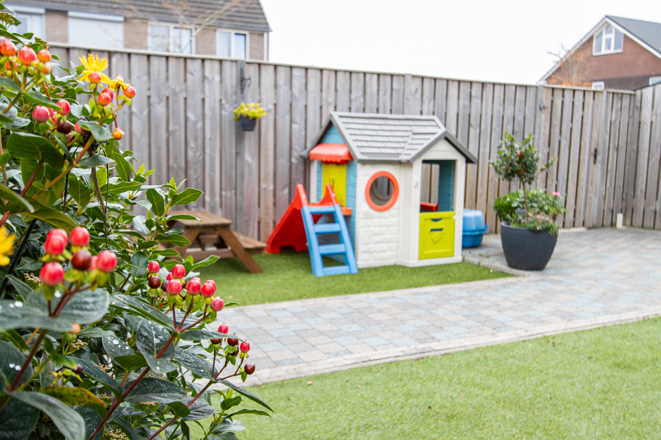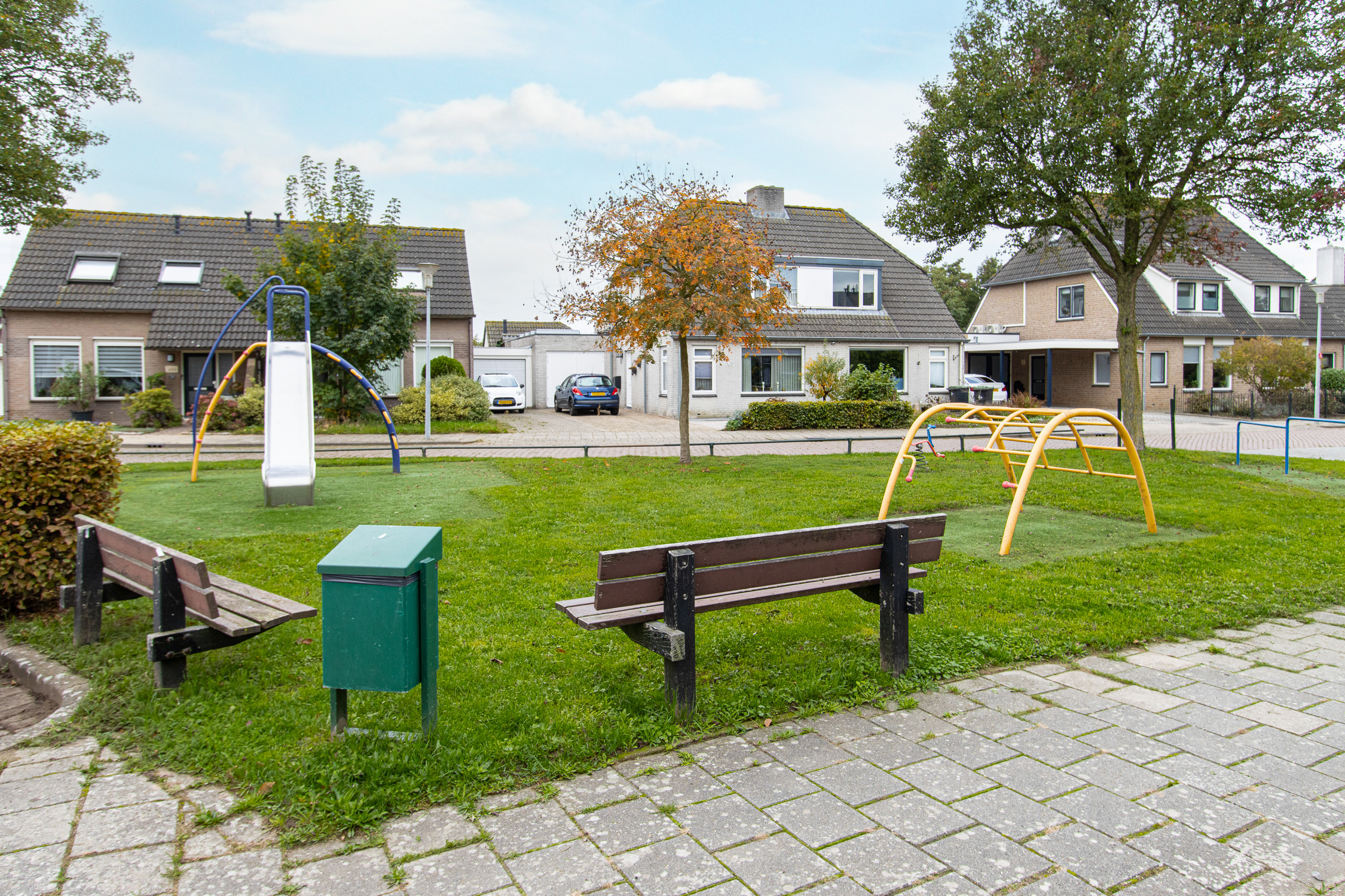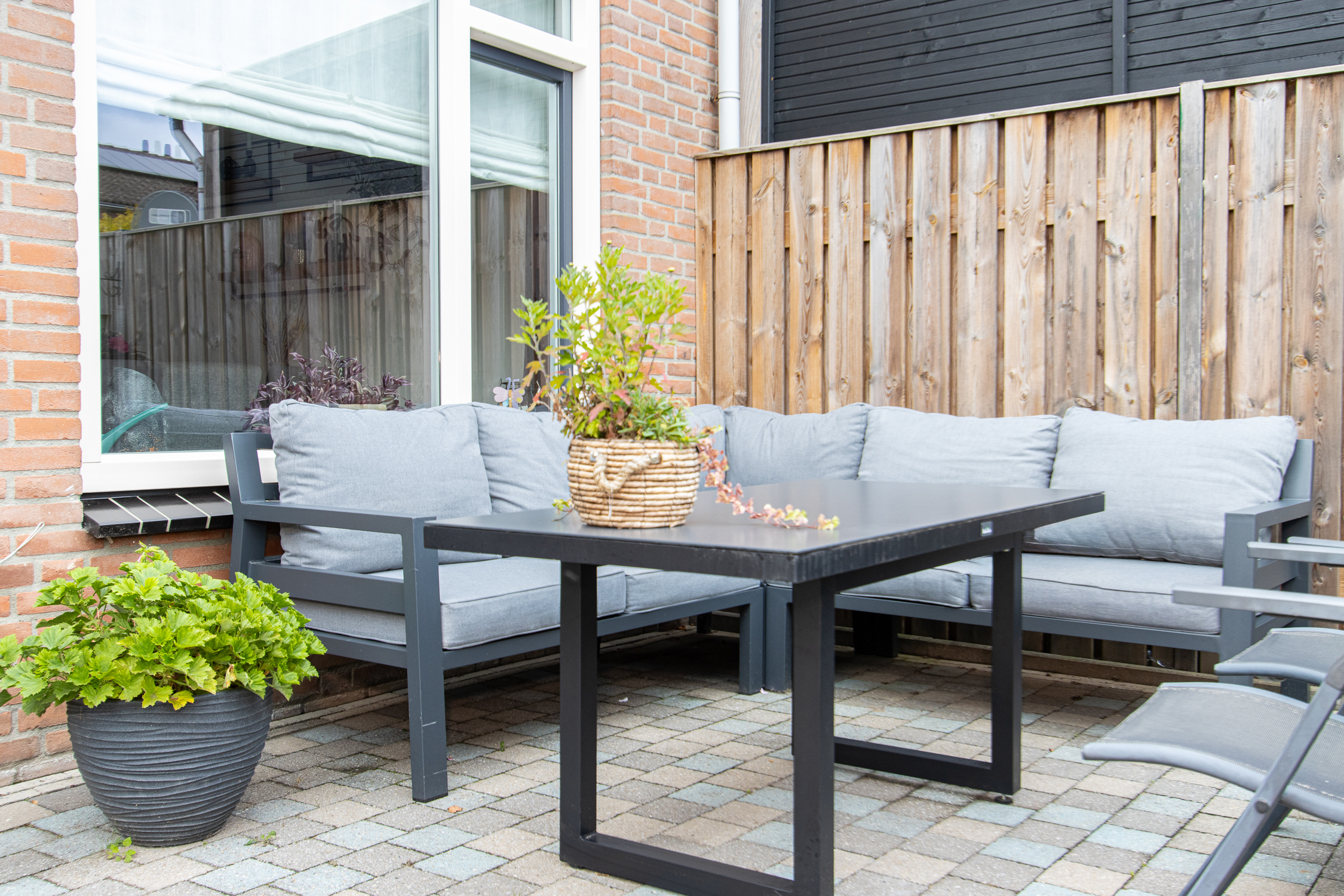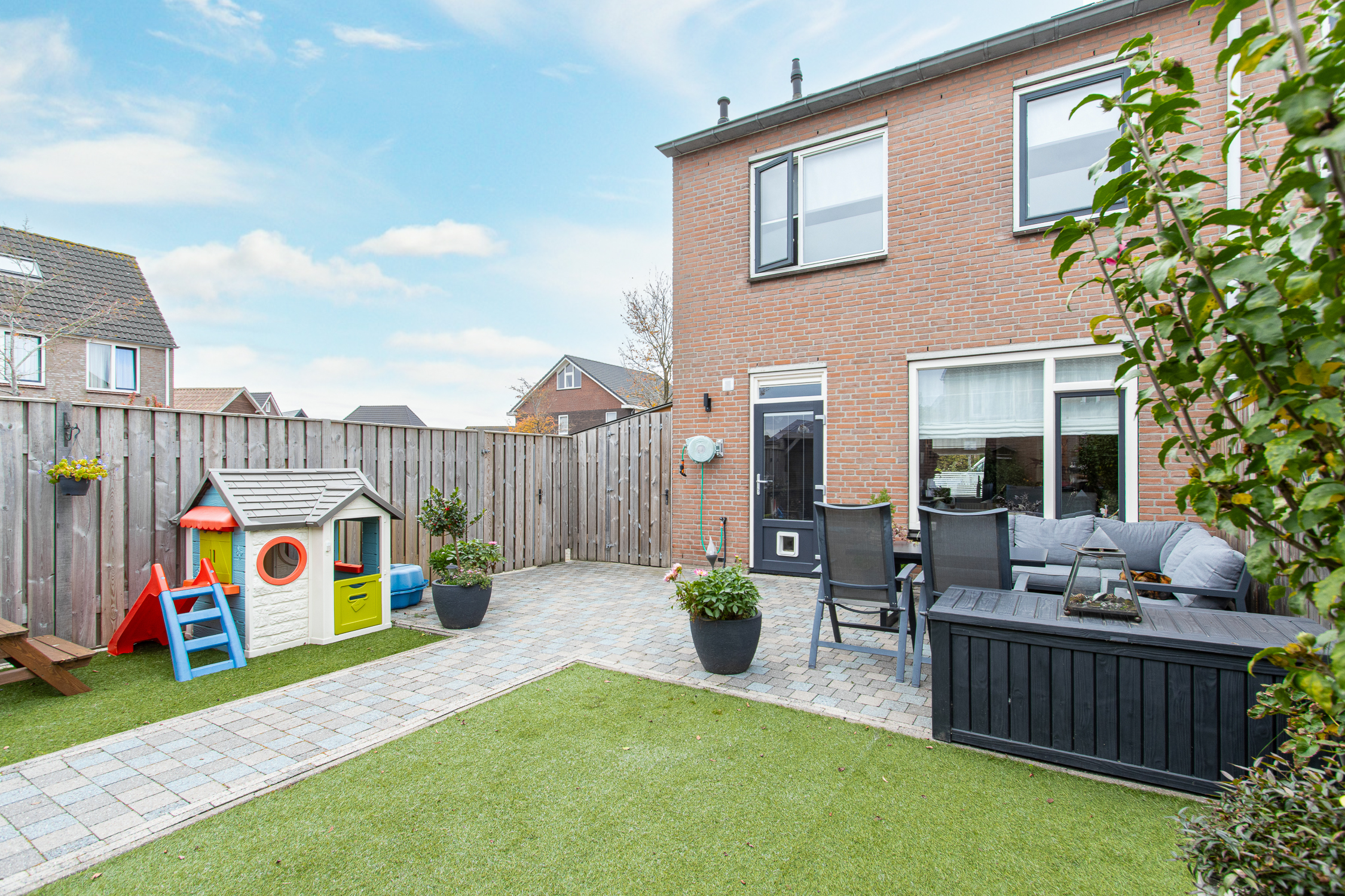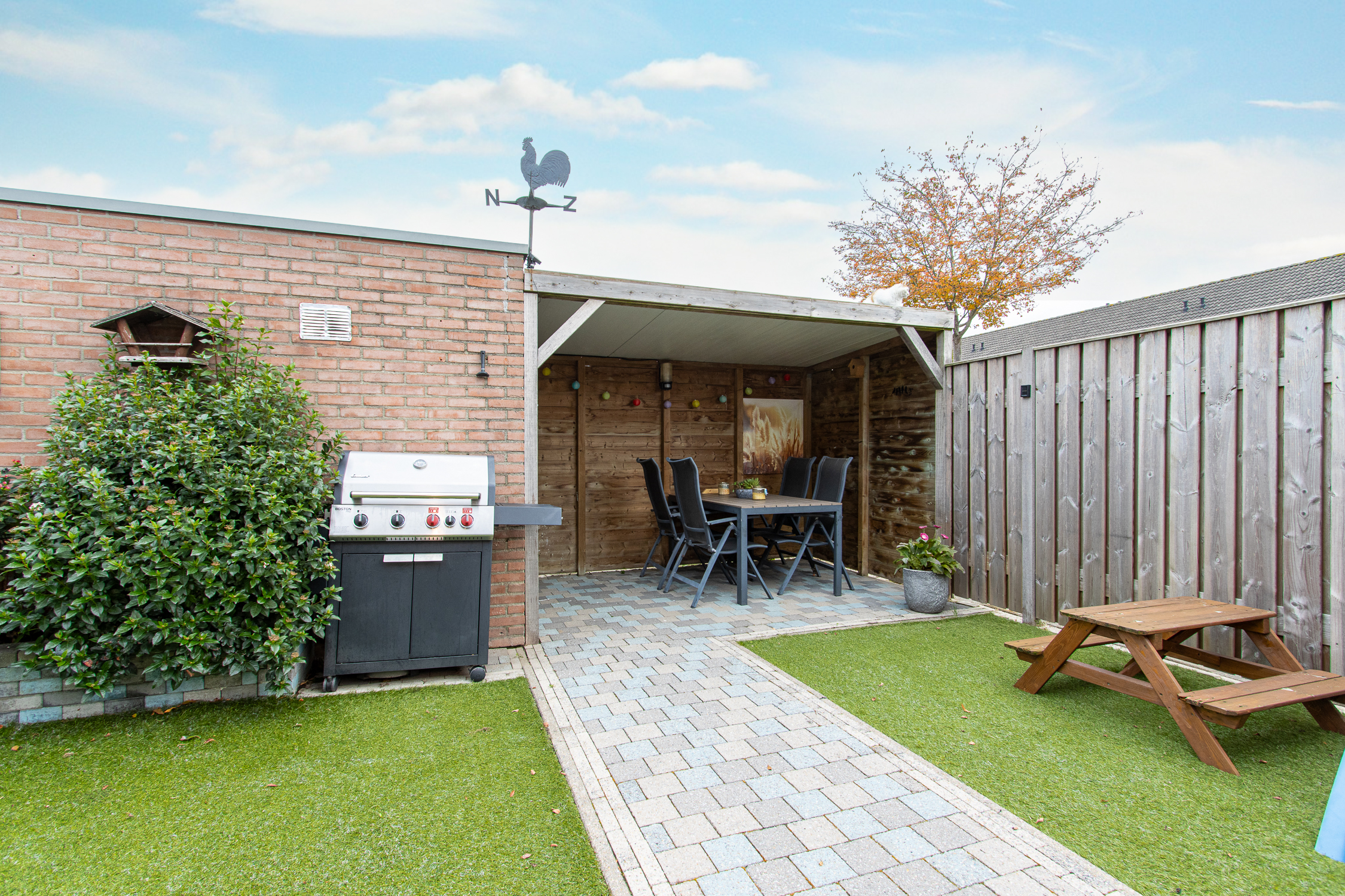De woning beschikt over een verzorgde voor- en achtertuin. De achtertuin ligt op het noordoosten en is onderhoudsvriendelijk ingericht met sierbestrating, kunstgras, plantenborders, een houten schutting en een stenen berging met sfeervolle overkapping. Via de achterom is de tuin goed bereikbaar. Naast de woning bevindt zich bovendien een zeer ruime berging van circa 14 m² — ideaal voor fietsen, gereedschap of hobbyspullen.