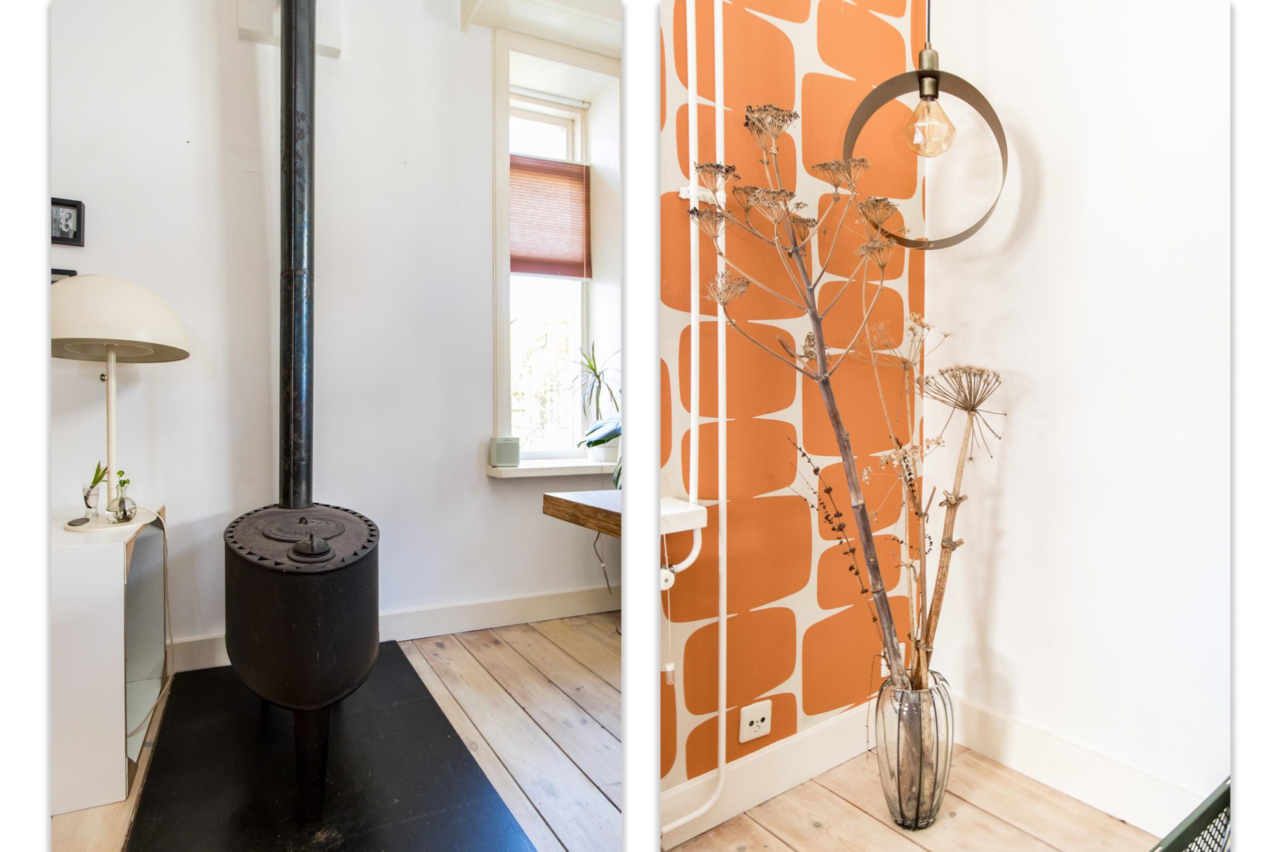 Indeling woning: de entree bevindt zich aan de rechterzijde van de woning. Via het halletje kom je binnen in de sfeervolle woonkamer, waar direct de authentieke details en warme uitstraling opvallen. Aan de achterzijde bevindt zich de halfopen keuken, die in directe verbinding staat met de woonkamer. De woonkamer is praktisch ingedeeld met een vaste kast en beschikt over een afgesloten trapopgang naar de eerste verdieping.