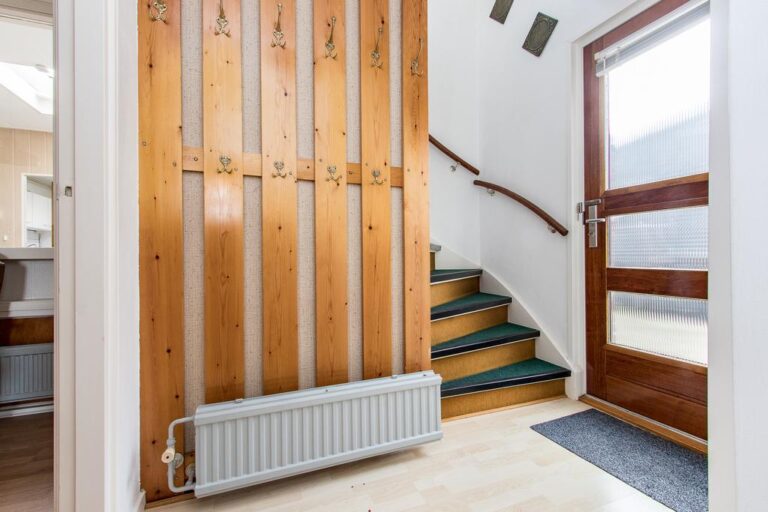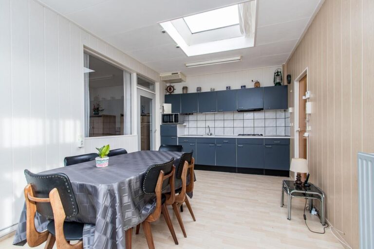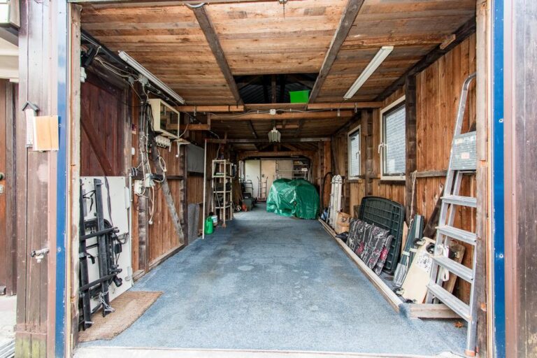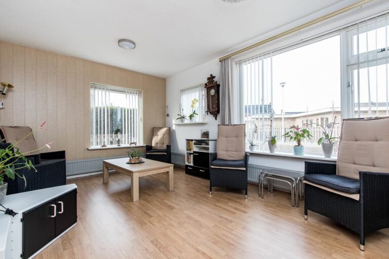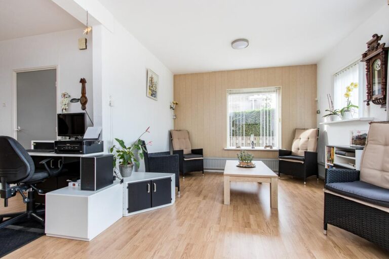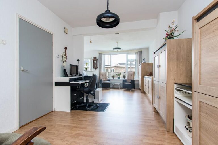 De woonkamer en keuken zijn samengevoegd naar een L-vormige kamer met fijne leefruimte. De stenen garage is een bijkeuken geworden en er is later een vrijstaande garage bijgebouwd. Op een nog later moment is de garage uitgebreid ten behoeve van 2 auto’s.