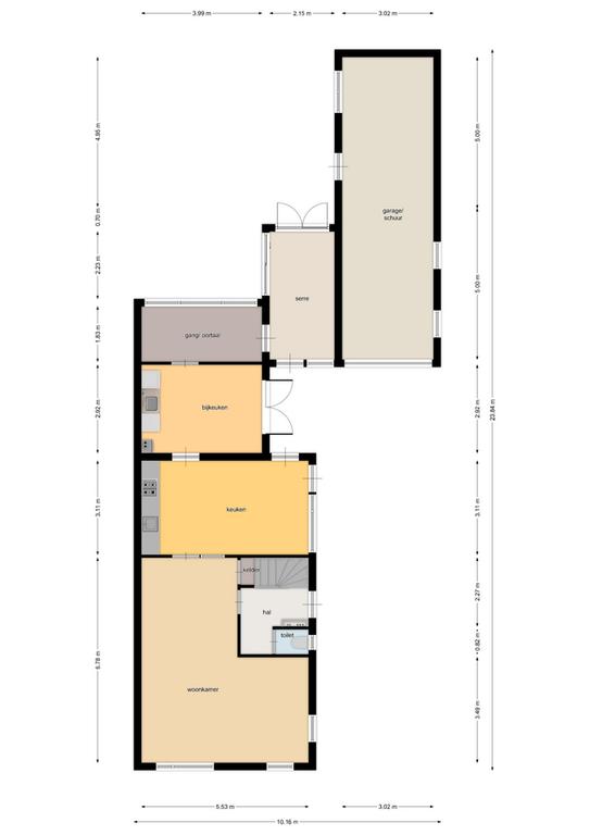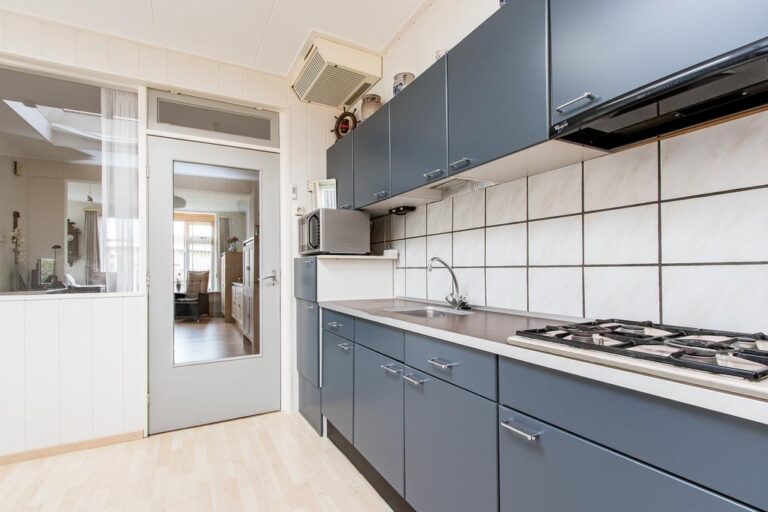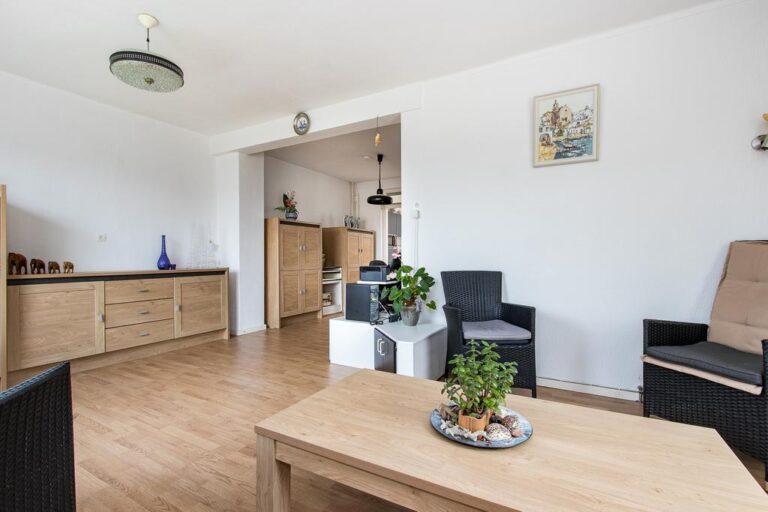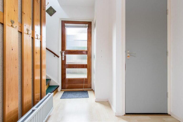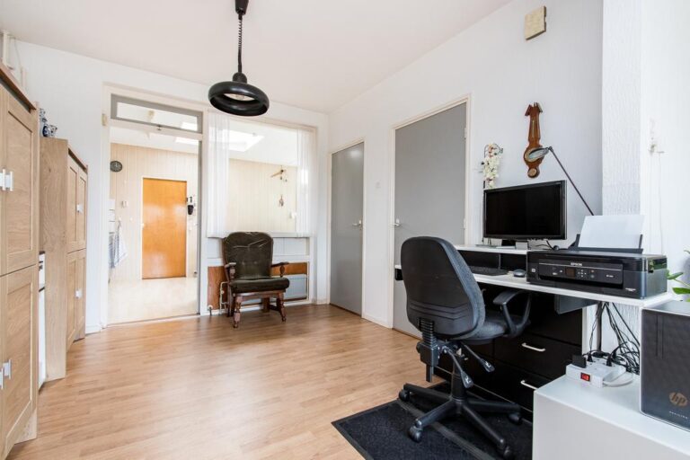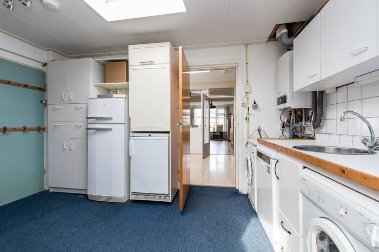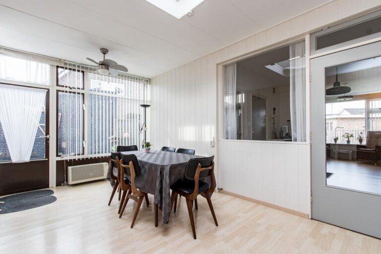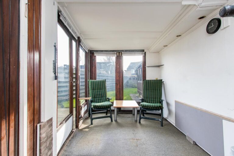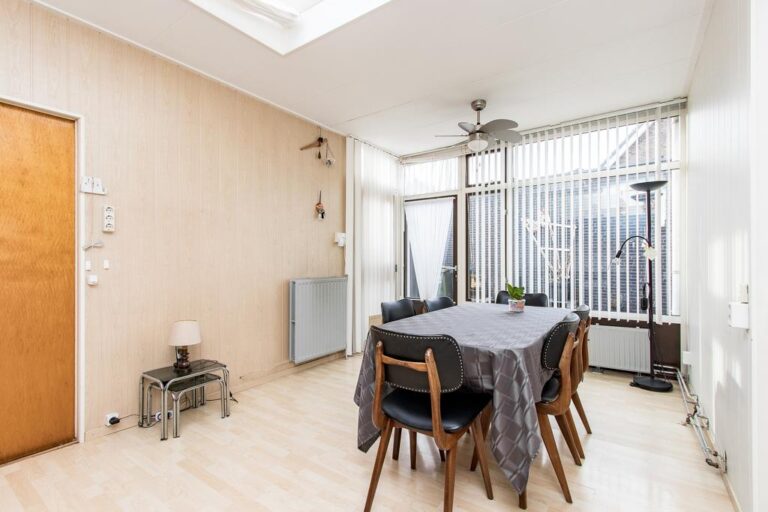 Begane grond: via de entree aan de rechterzijde bereikt u de ruime hal met meterkast, trapopgang naar de eerste verdieping en toiletruimte. De hal biedt toegang tot de ruime woonkamer van ca. 30 m². De woonkamer biedt toegang tot de kelderruimte en dichte keuken met rechte keukenunit. Aangrenzend aan de keuken bevindt zich aan de achterzijde de praktische bijkeuken met witgoedaansluiting en CV-opstelling. Via een portaal met fraai uitzicht op de achtertuin is de serre toegankelijk.