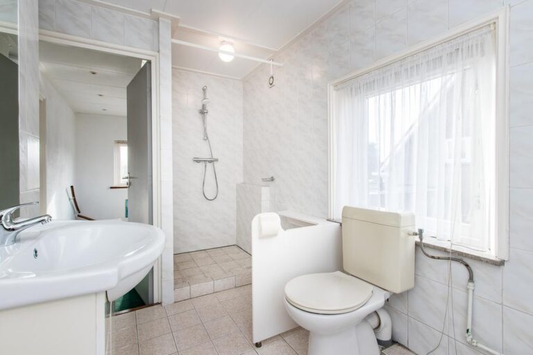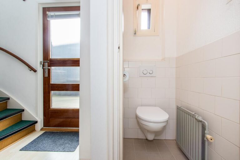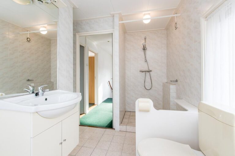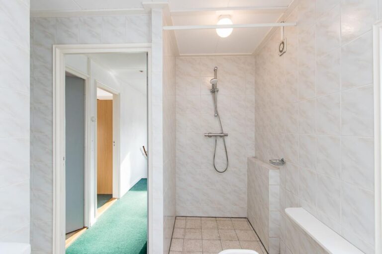 Eerste verdieping: de royale overloop geeft toegang tot 2 slaapkamers en moderne badkamer v.v. douche, toilet, wastafel en vloerverwarming (er is op eenvoudige wijze een ligbad te plaatsen, voorheen was dit namelijk van toepassing).