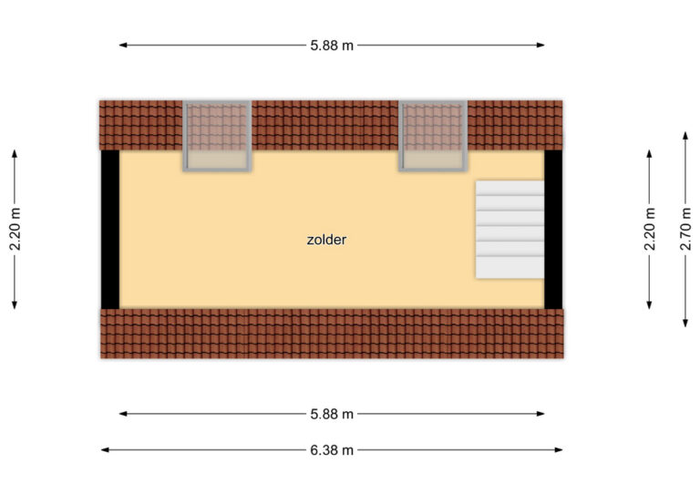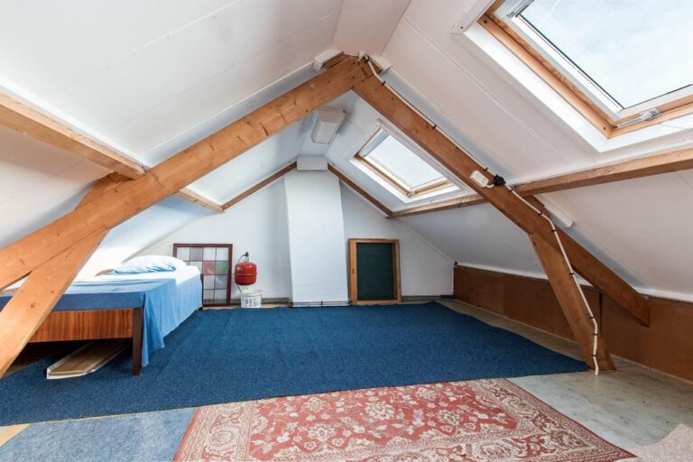 Tweede verdieping: middels vaste trap is de fijne, geisoleerde speel-/logeerzolder bereikbaar. De dakvensters zorgen voor voldoende lichtinval.