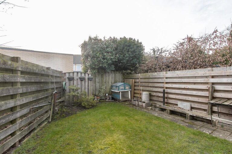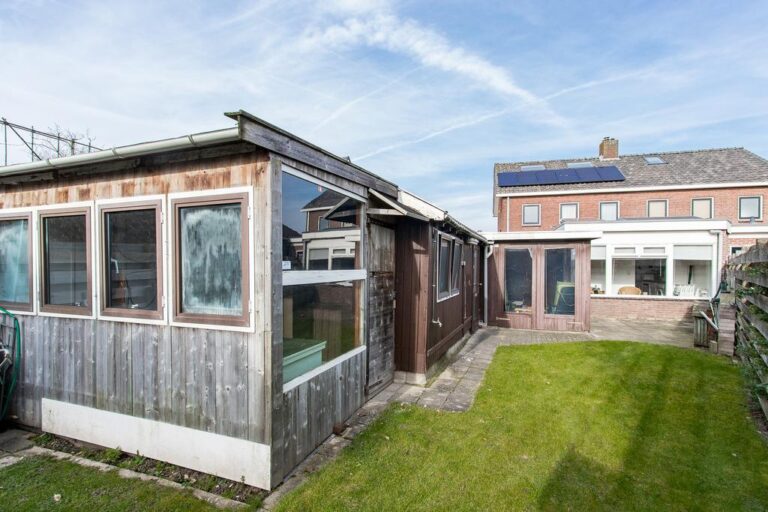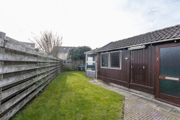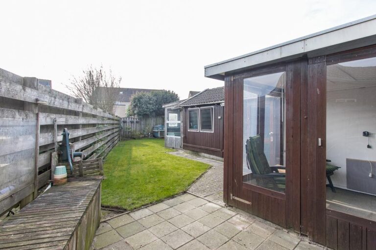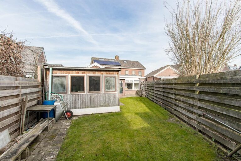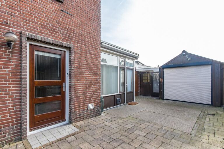 De achtertuin heeft een zonnige ligging op het zuiden en is ingericht met terrastegels, sierbestrating en gazon. Door de inrichting en de schutting aan de achterzijde biedt de tuin voldoende privacy. De garage/ schuur is geschikt voor 2 auto’s en middels loop- en roldeur toegankelijk. Achter de garage bevindt zich een hobby-/klushok. Het is mogelijk om in de plaats van het ‘klushok’ op eenvoudige wijze een fijn stukje tuin extra te creeren.