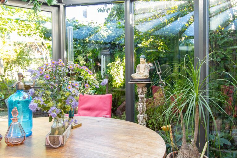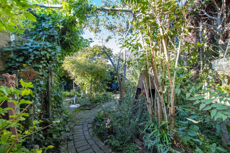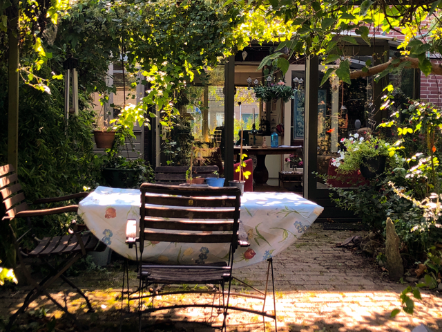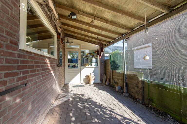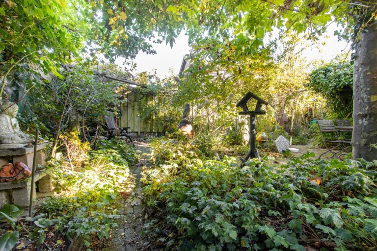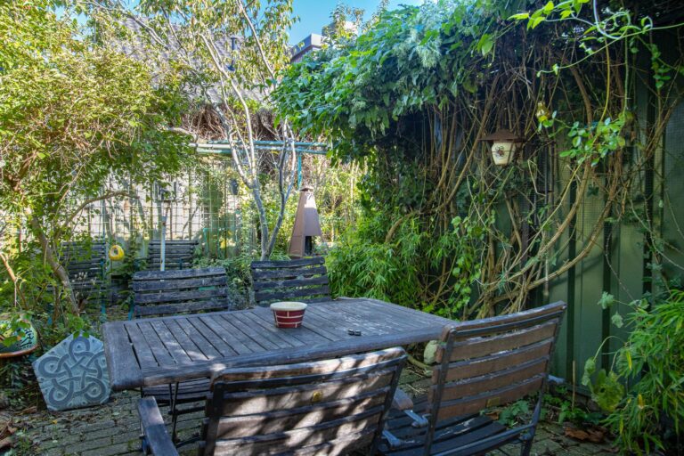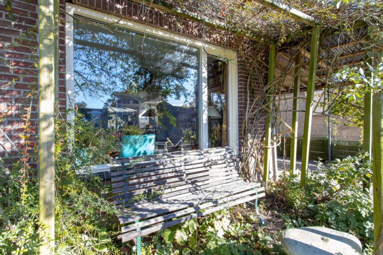 De achtertuin van deze woning is een waar paradijs voor natuurliefhebbers. Weelderig groen, fraaie bebossing en zorgvuldig aangelegde plantenborders zorgen voor een serene en sfeervolle omgeving waarin u helemaal tot rust kunt komen. Vanuit de lichte serre stapt u direct de tuin in, waar het binnen- en buitenleven naadloos in elkaar overlopen. De serre vormt de perfecte verbinding tussen het huis en deze groene oase, waardoor u ieder seizoen kunt genieten van de tuin. De kavel loopt door tot aan de zijkant van de woning en biedt via de Achterstraat toegang tot een tweede parkeergelegenheid. De ligging op het noordoosten zorgt ervoor dat u de hele dag door kunt genieten van zowel zon als schaduw, met de zonneterrassen als ideale plek om te ontspannen.