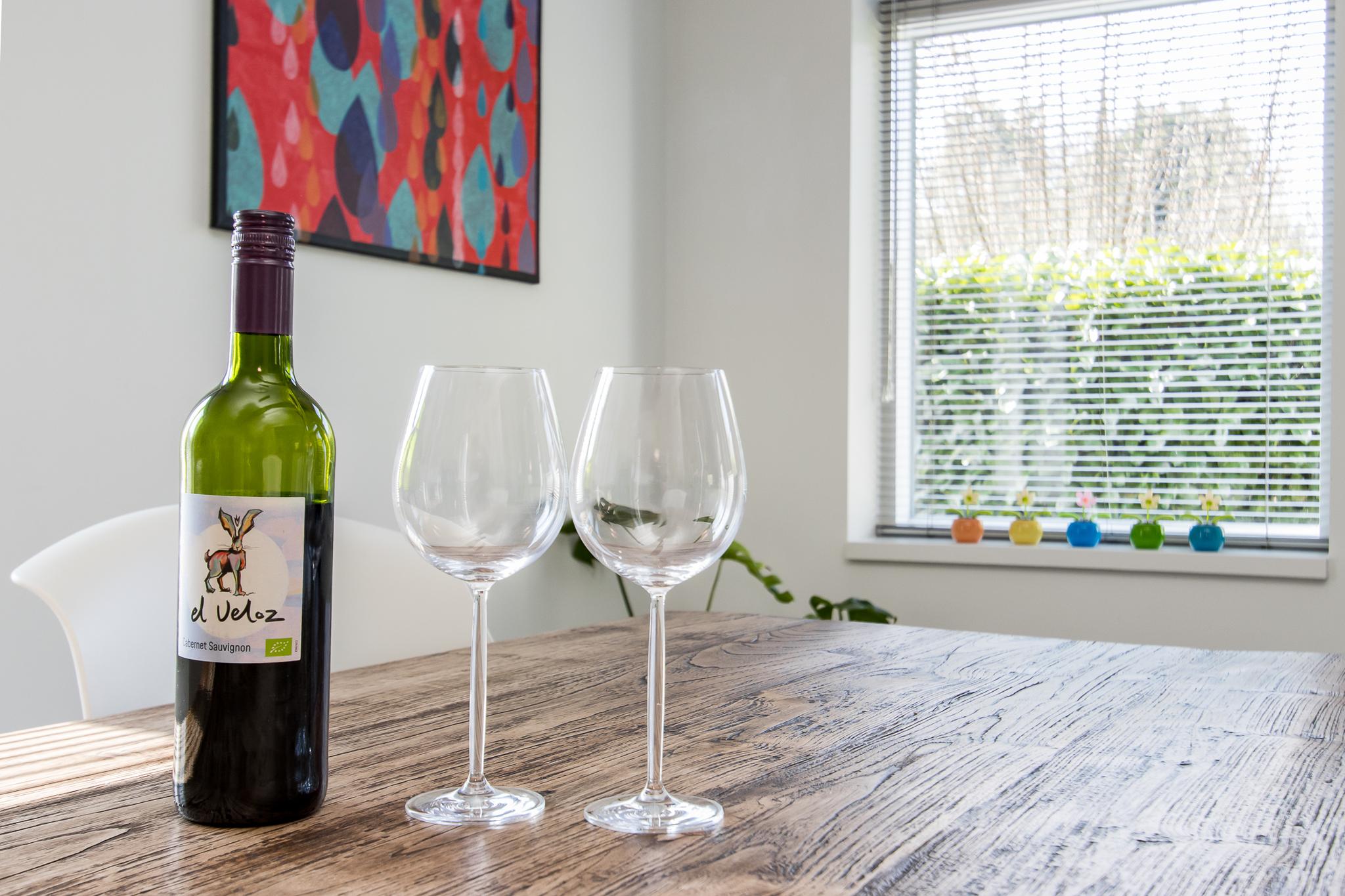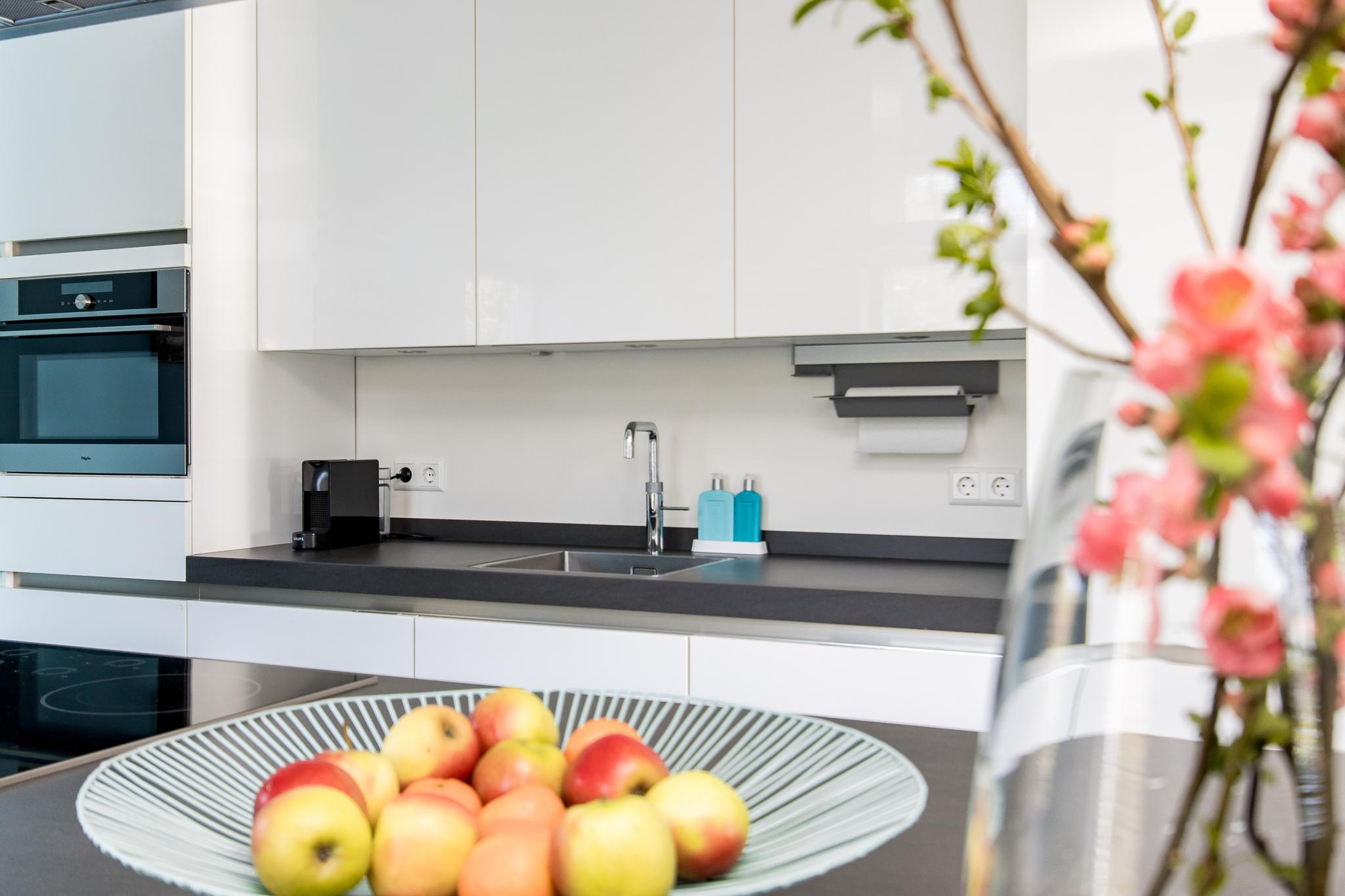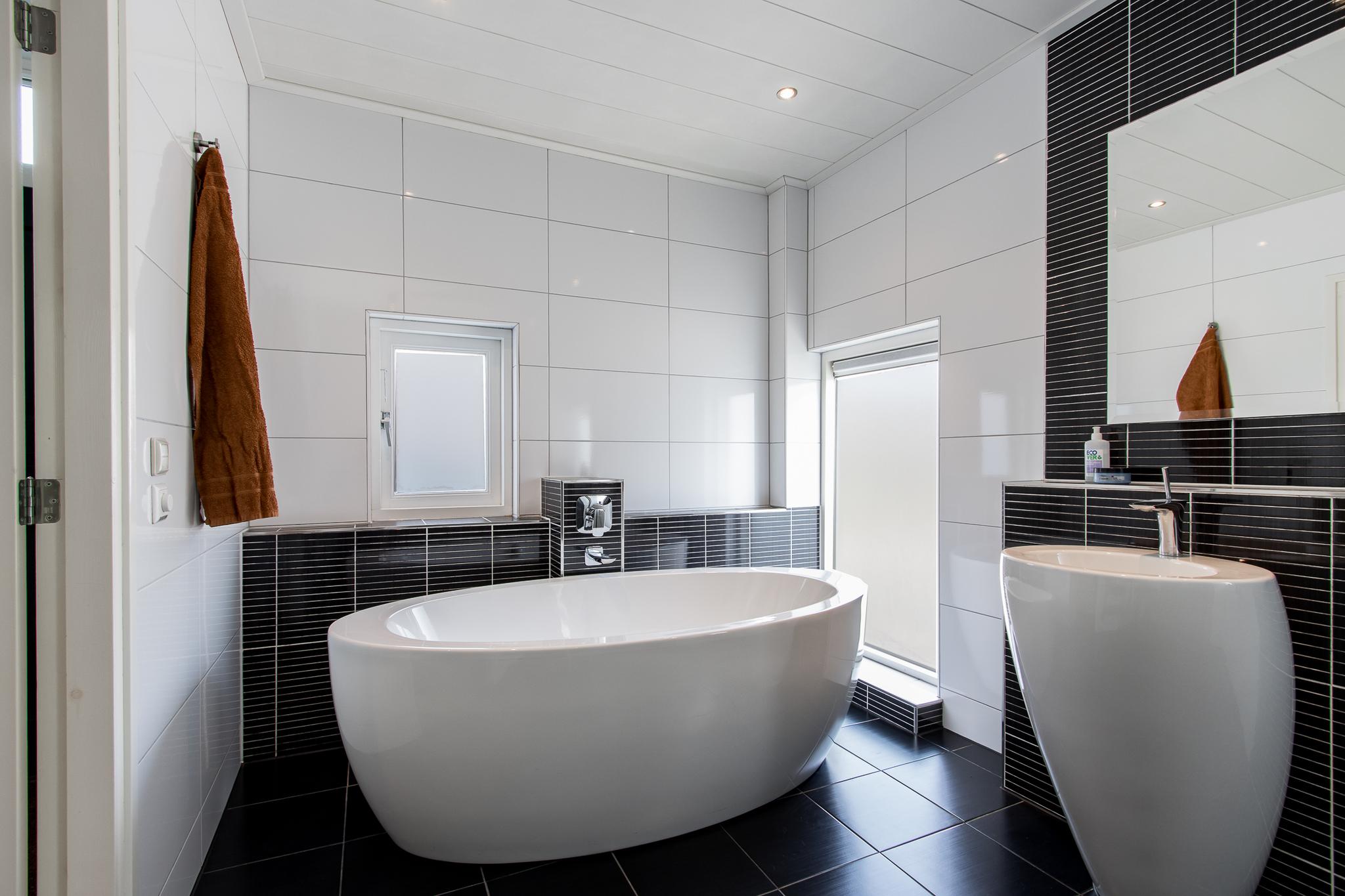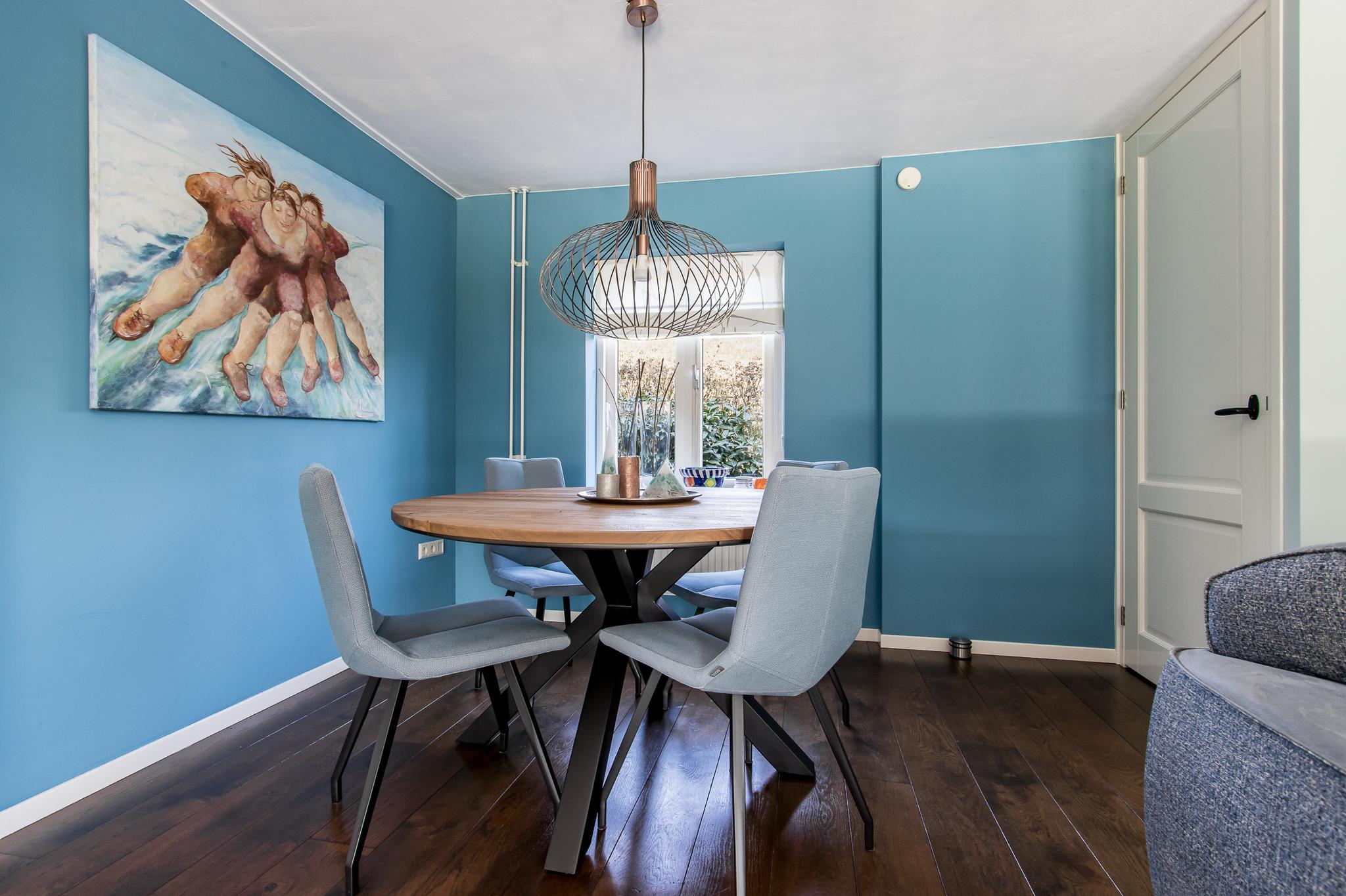 De eigentijdse badkamer is stijlvol ingericht en uitgerust met een inloopdouche, een strak vormgegeven bad en een wastafel. Via de hal stapt u de ruime en lichte woonkamer binnen, waar openslaande deuren niet alleen toegang geven tot het zonnige terras, maar ook een prachtig weids uitzicht over de tuin bieden. De open haard voegt extra sfeer en warmte toe. Aangrenzend bevindt zich de royale woonkeuken, die is voorzien van een moderne keukenunit met kookeiland. Ook deze ruimte heeft een eigen entree, wat zorgt voor extra gemak en toegankelijkheid.