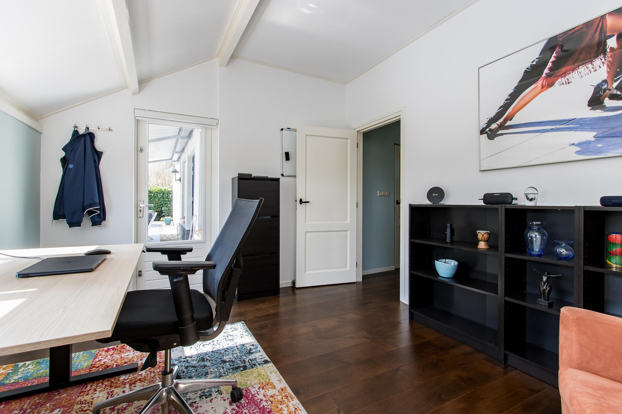 Indeling woning: bij binnenkomst via de entree komt u in de hal, waar een garderobe en een handige trapkast zorgen voor extra opbergruimte. Vanuit de hal heeft u toegang tot de sfeervolle woonkamer, maar ook tot de badkamer, toiletruimte en een multifunctionele kamer. Deze kamer, momenteel in gebruik als werkkamer, kan uitstekend dienen als slaapkamer, kantoor, thuiswerkplek, speelkamer of praktijkruimte en beschikt over een eigen entree.