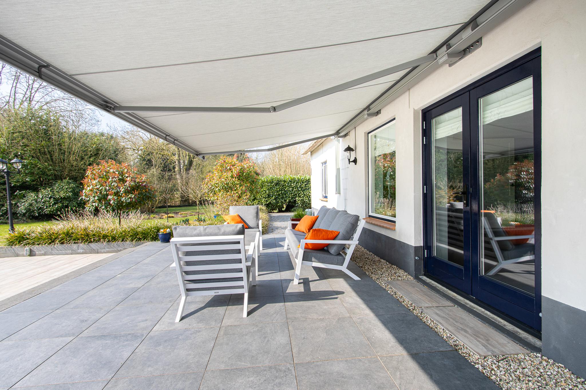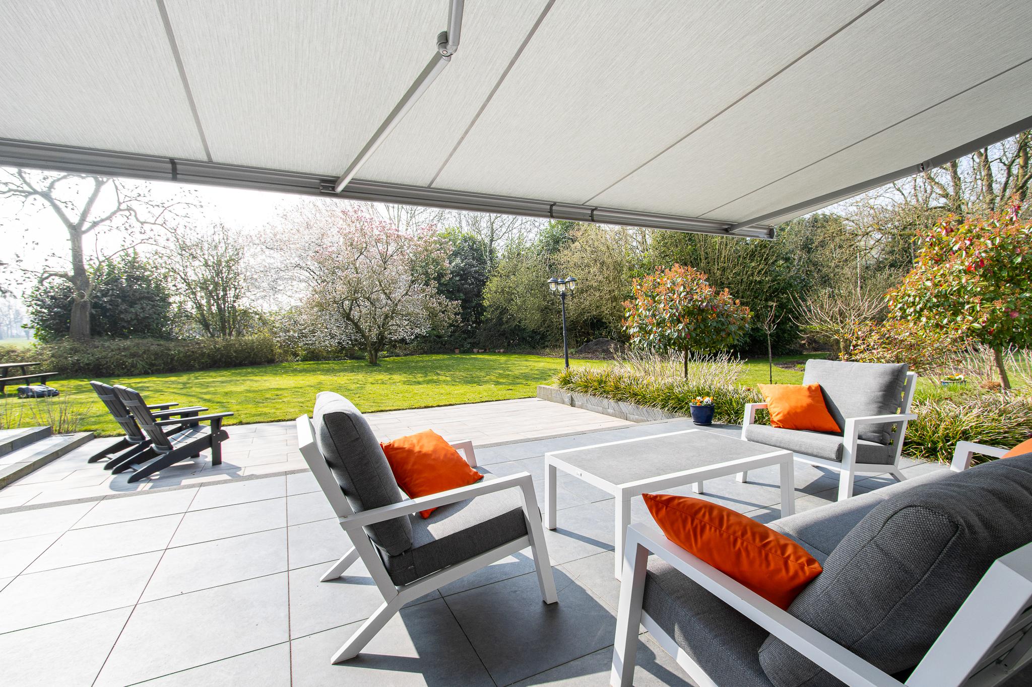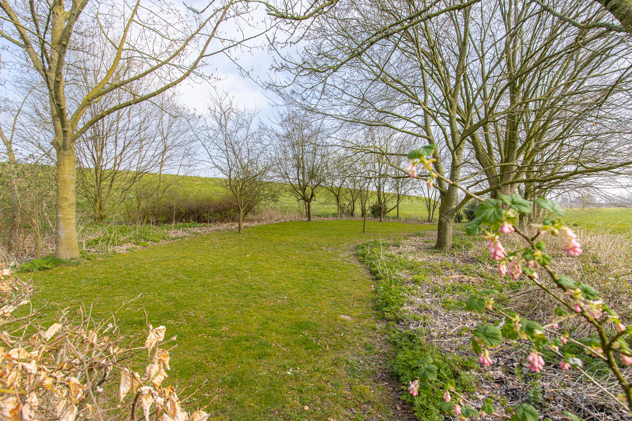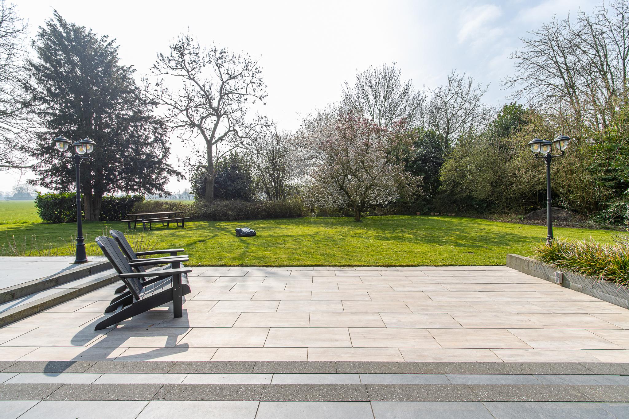 Met een royaal perceel van 2.335 m² geniet u hier van volledige privacy, een tuin rondom met zonnige terrassen, een groot gazon, sierlijke borders en diverse (fruit)bomen. De aangrenzende landerijen zorgen voor een vrij en schilderachtig uitzicht, elk seizoen opnieuw een ansichtkaart.
