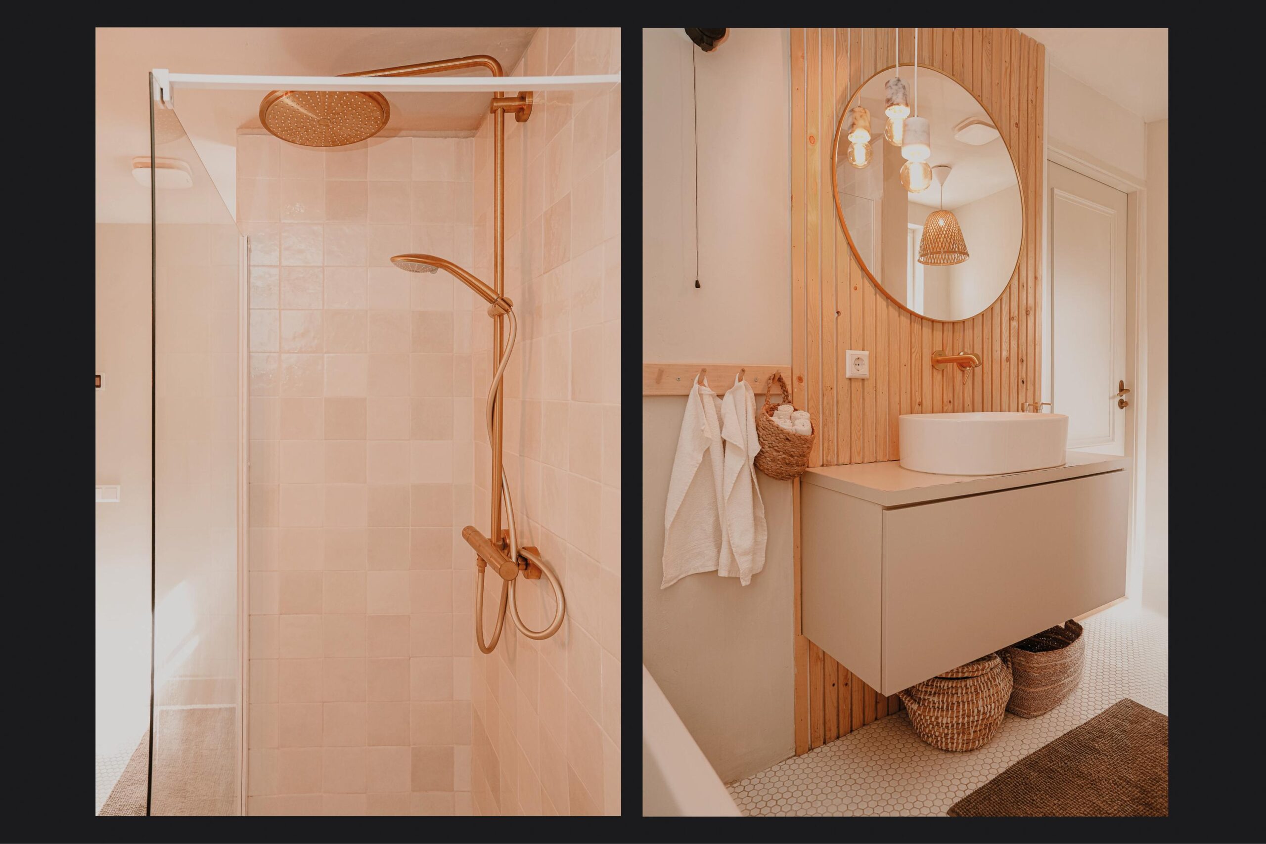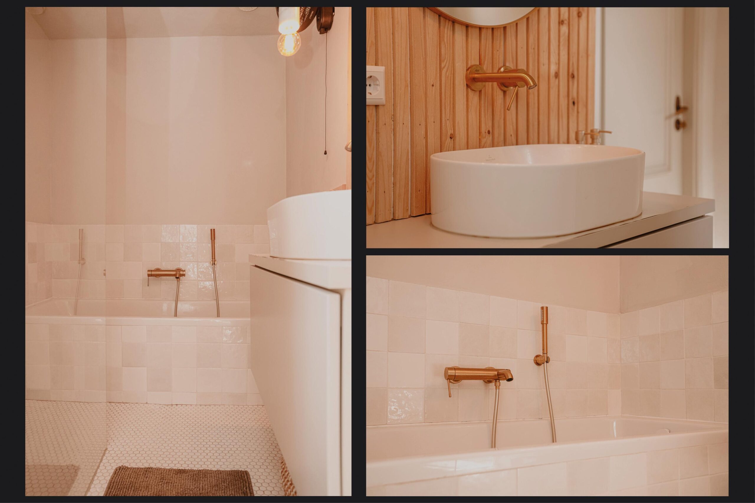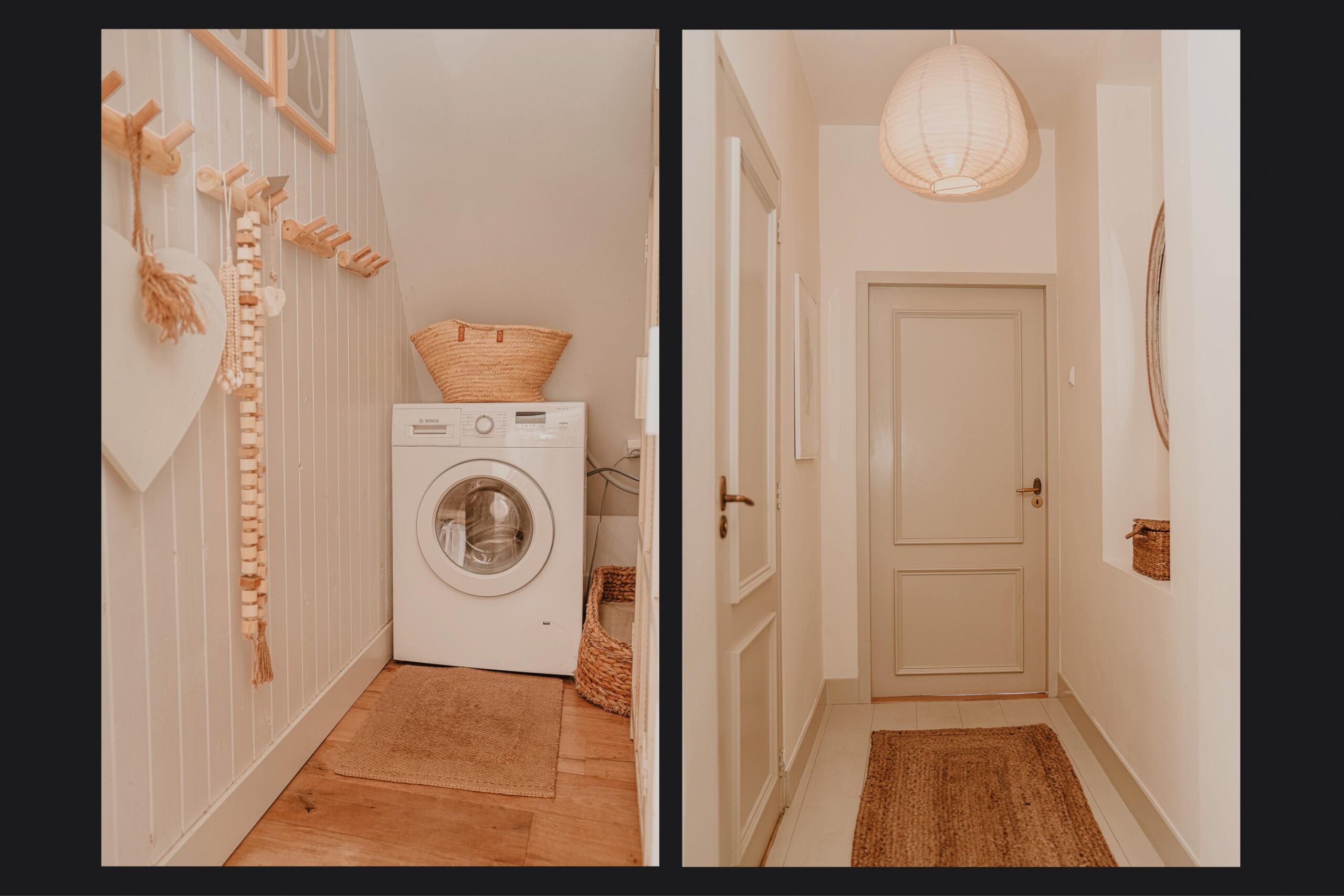 Indeling woonhuis: de entree van de woning bevindt zich aan de rechterzijde en leidt naar de sfeervolle woonkamer, met gezellige houtkachel. Deze knusse leefruimte staat in halfopen verbinding met de keuken, die is ingericht met een praktische hoekopstelling en diverse inbouwapparatuur. Aangrenzend aan de keuken bevindt zich een portaal dat toegang biedt tot de badkamer en een halletje aan de achterzijde van de woning. Vanuit dit halletje bereik je het terras in de achtertuin, een fijne plek om buiten te zitten. Daarnaast vind je hier ook een praktische ruimte met witgoedaansluitingen én de trapopgang naar de eerste verdieping. De stijlvolle badkamer is uitgevoerd met een wandcloset, een ligbad, een ruime inloopdouche en een wastafelmeubel.