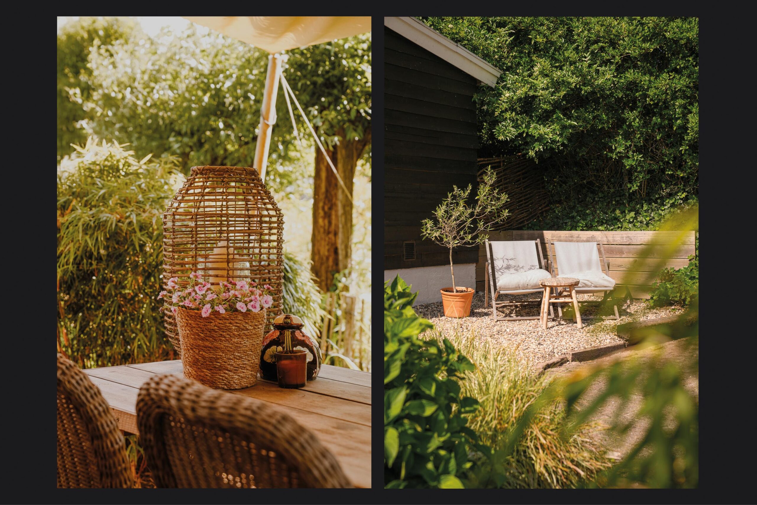Wat deze woning extra bijzonder maakt, zijn de buitenruimtes. De ruime zijtuin op het noordwesten biedt volop privacy en is voorzien van een prachtige tuinkamer met overkapping – een heerlijke plek om het hele jaar door te genieten van het buitenleven. De achtertuin ligt op het zuidwesten en is ideaal voor zonliefhebbers; hier geniet je tot laat in de middag van de zon op het terras.