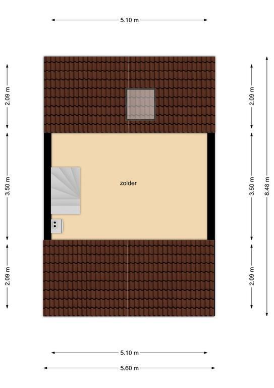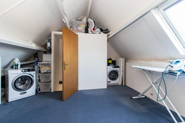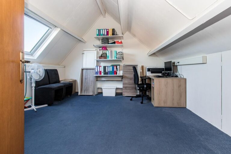 Tweede verdieping: via een vaste trap bereikt u de open zolderruimte. Hier bevindt zich de C.V.-installatie, witgoedaansluiting en de omvormer van de zonnepanelen. Deze ruimte biedt de mogelijkheid tot het creëren van een 4e slaapkamer.