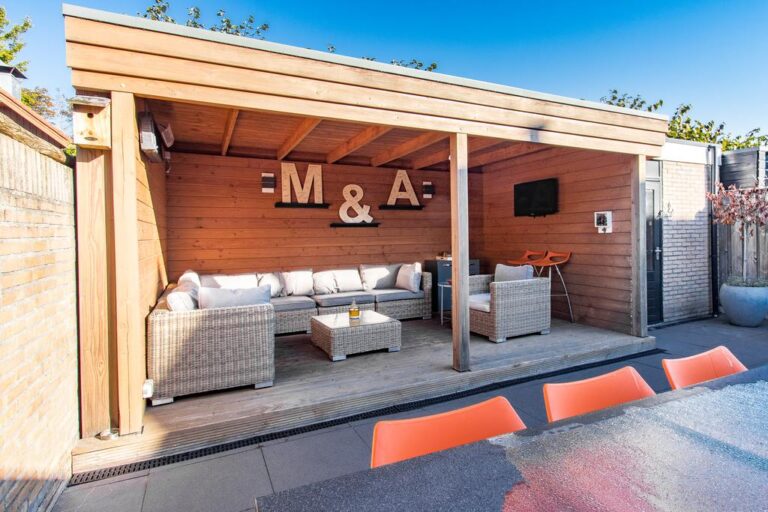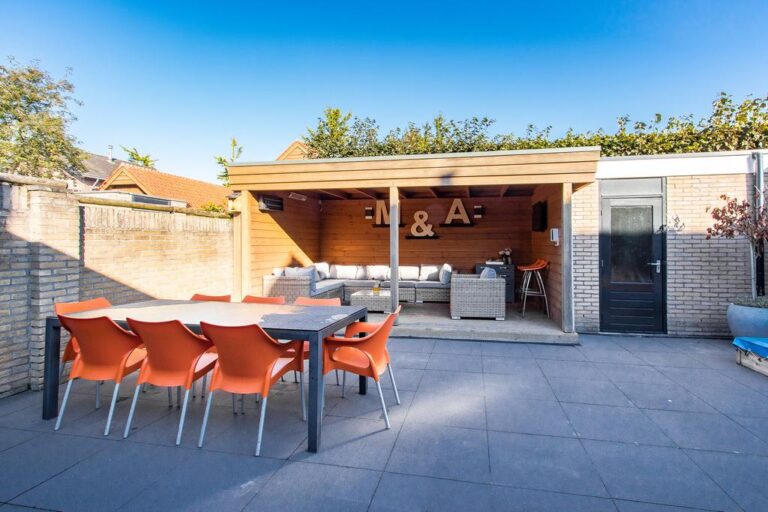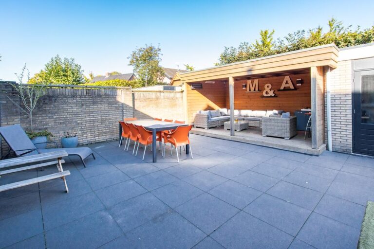 De voor-en achtertuin zijn sfeervol aangelegd met sierbestrating, moderne tegels en diverse beplantingen. De achtertuin is gelegen op het noordwesten en is voorzien van een fraaie overkapping en stenen berging. De ruime oprit biedt plaats voor het parkeren van 2 auto’s.