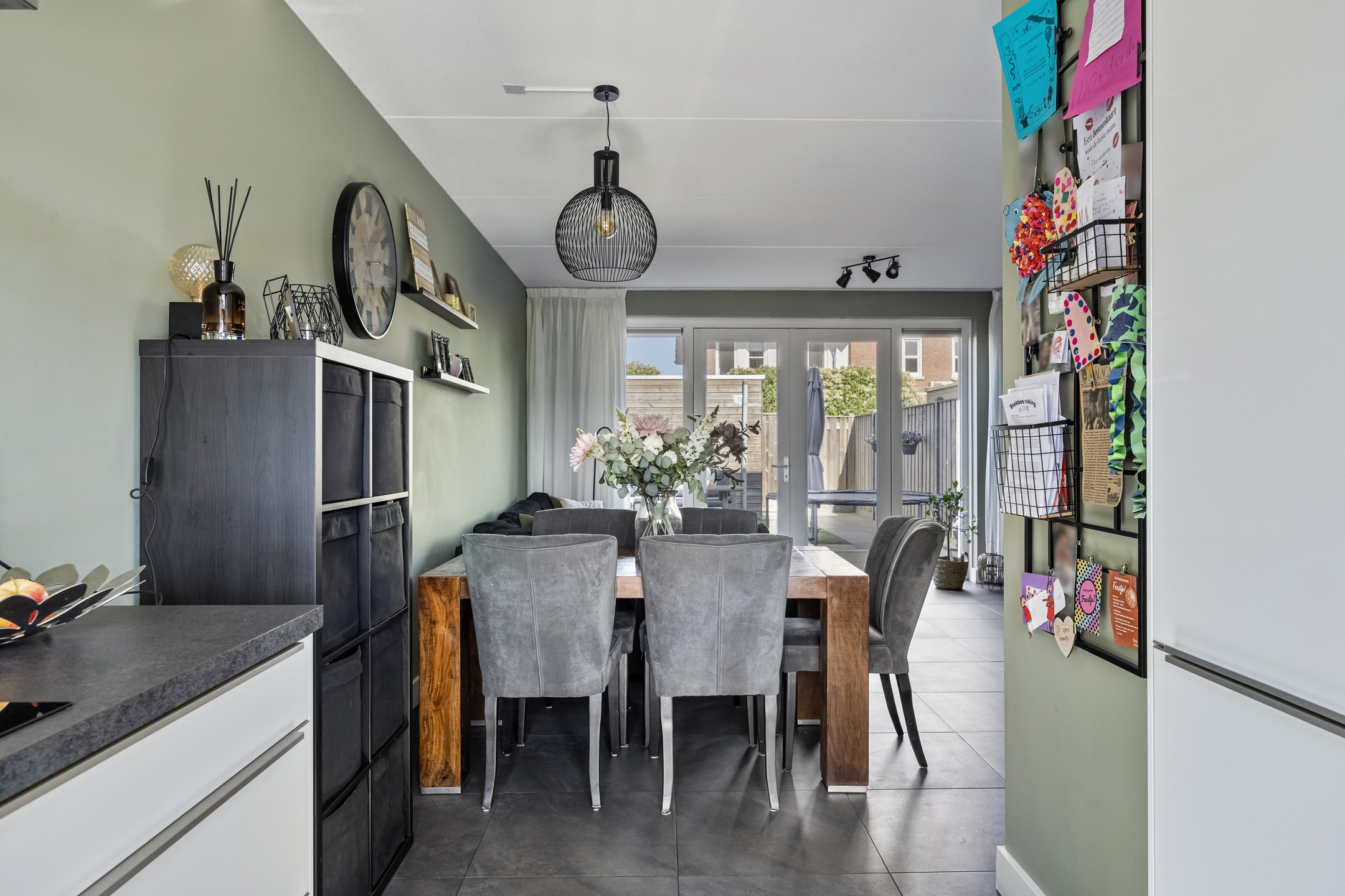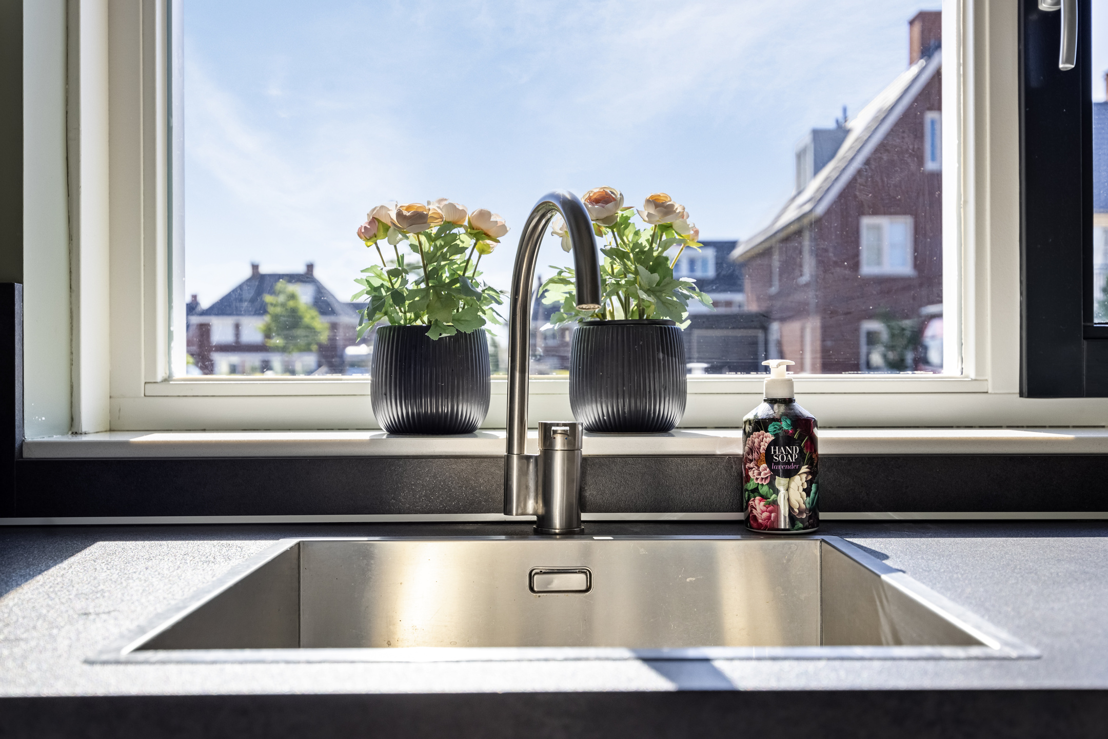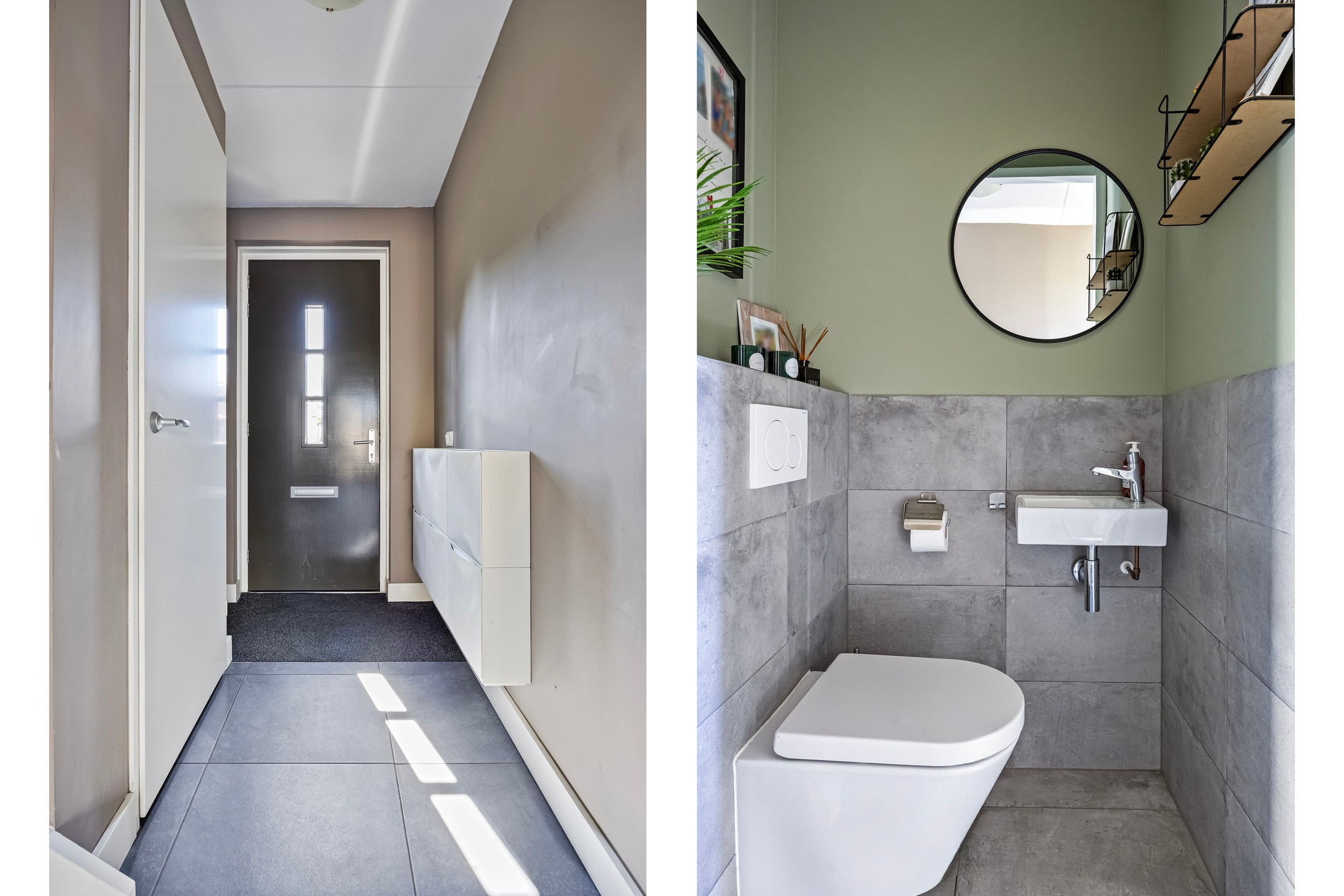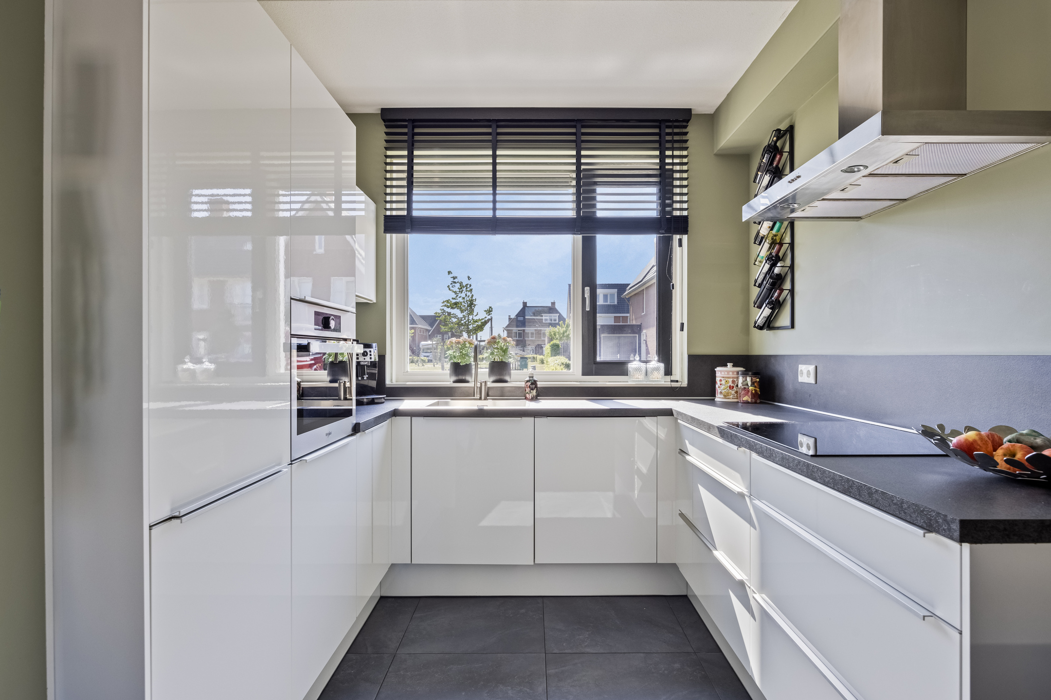 Indeling: via de entree kom je in de hal met garderobehoek, toilet, meterkast en trapopgang. De tuingerichte woonkamer is voorzien van een handige trapkast en openslaande deuren naar de achtertuin. Aan de voorzijde vind je de moderne U-vormige keuken met complete inbouwapparatuur, waaronder een inductiekookplaat, combi-oven, koelkast met vriezer, vaatwasser en afzuigkap.