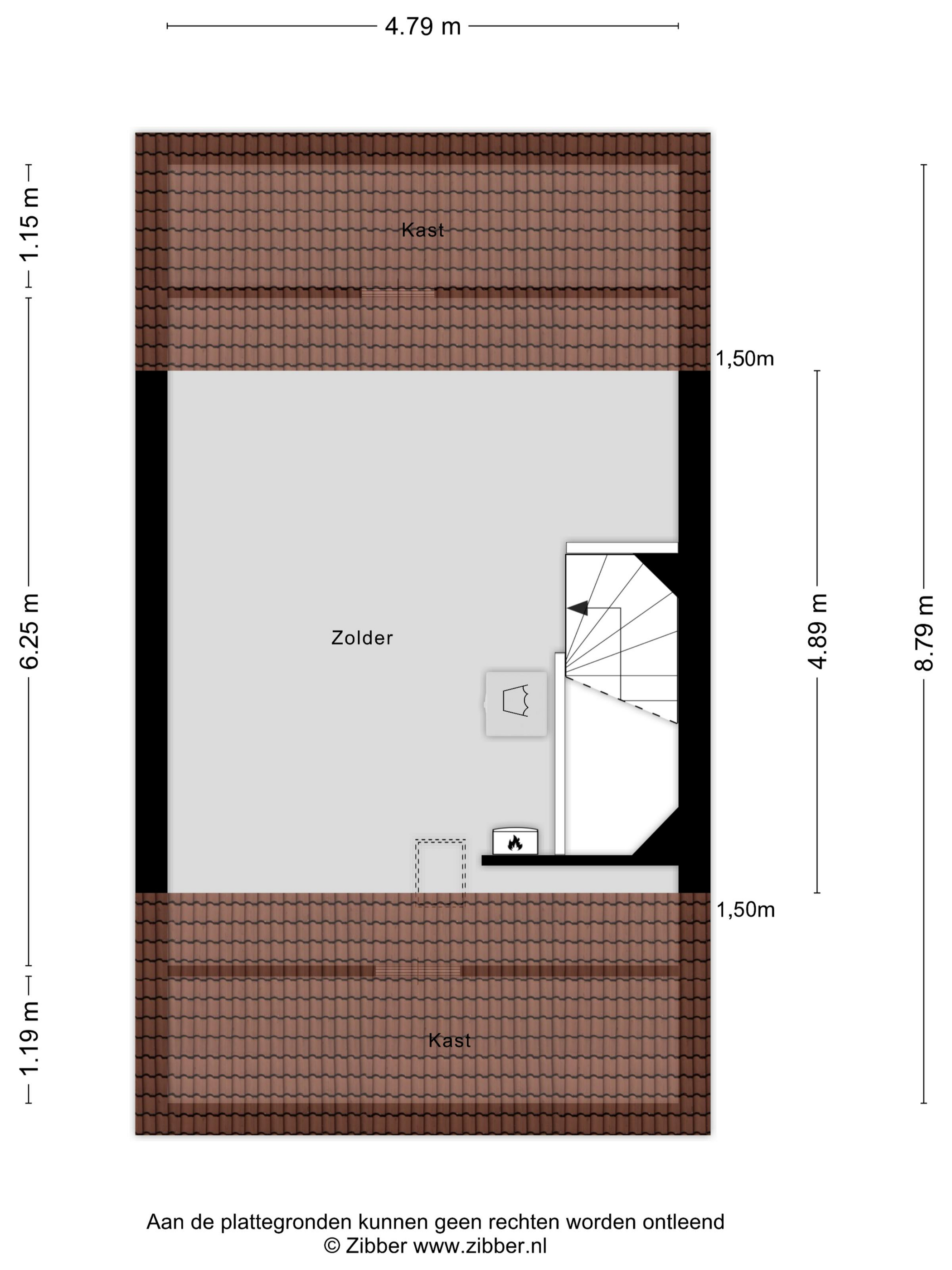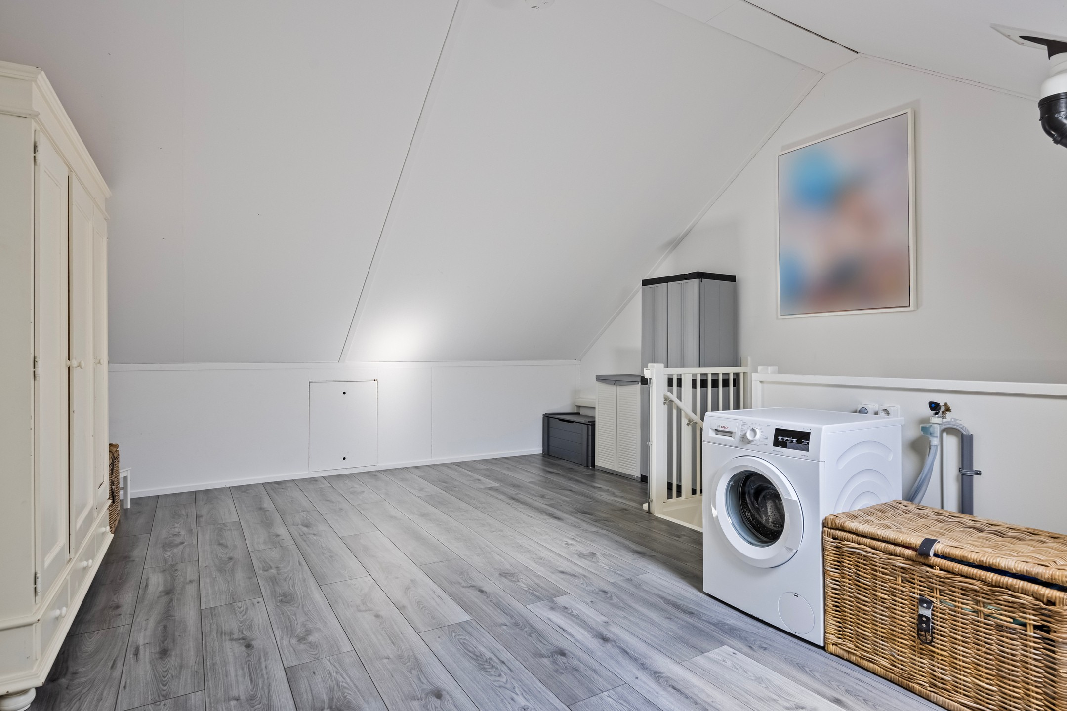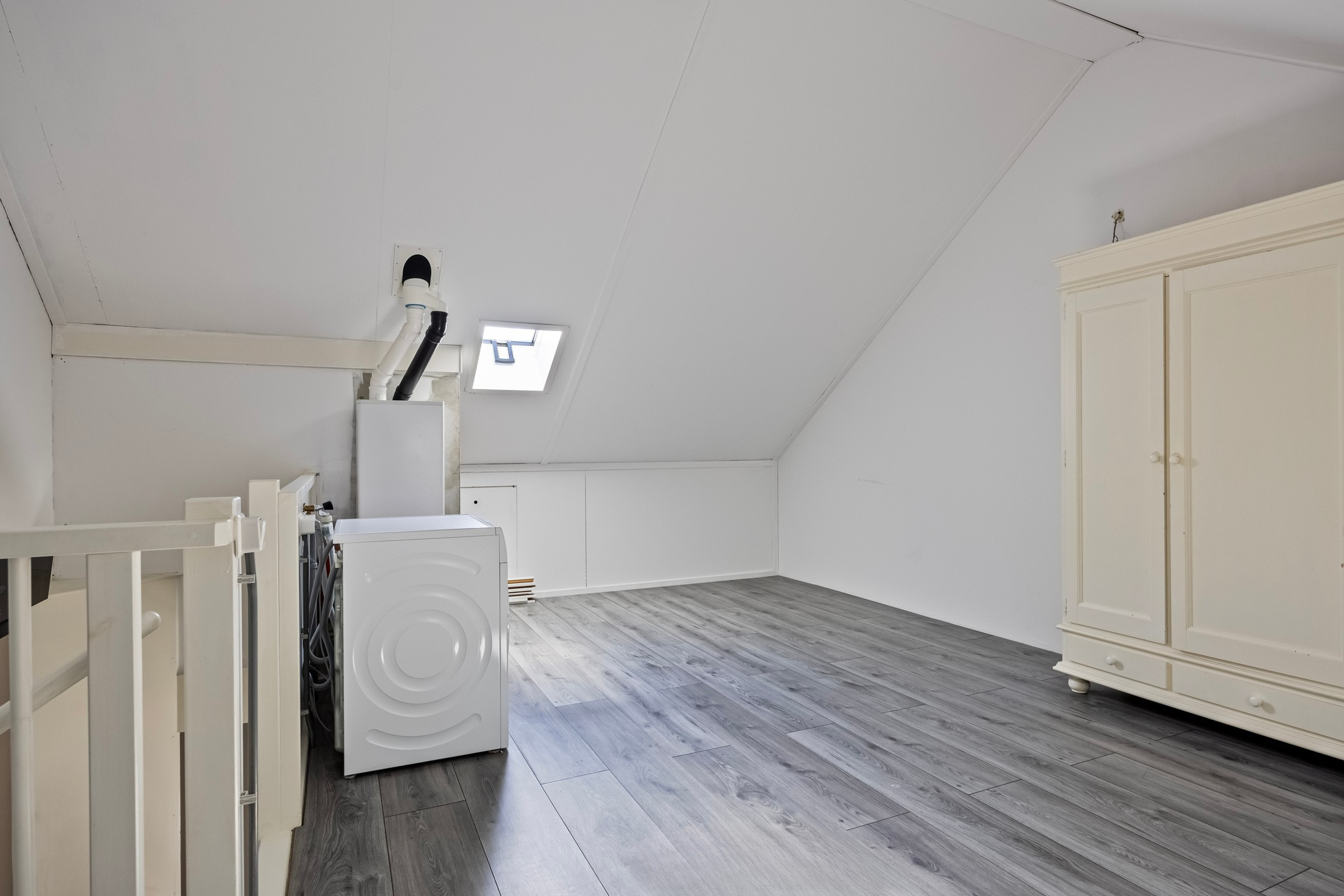Tweede verdieping: via een vaste trap bereik je de royale zolder met dakraam. Hier vind je de witgoedaansluitingen, cv-installatie en veel bergruimte achter de knieschotten. Een extra slaapkamer of werkruimte realiseren? Dat kan hier moeiteloos!