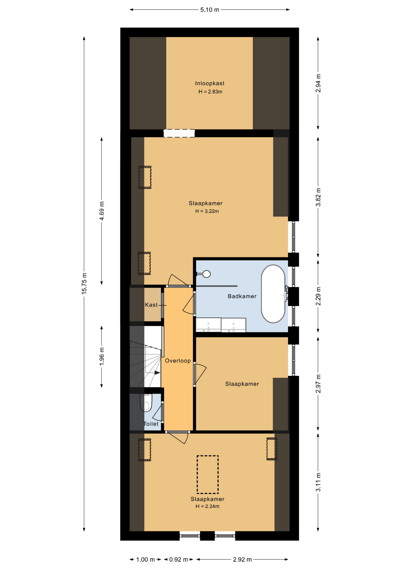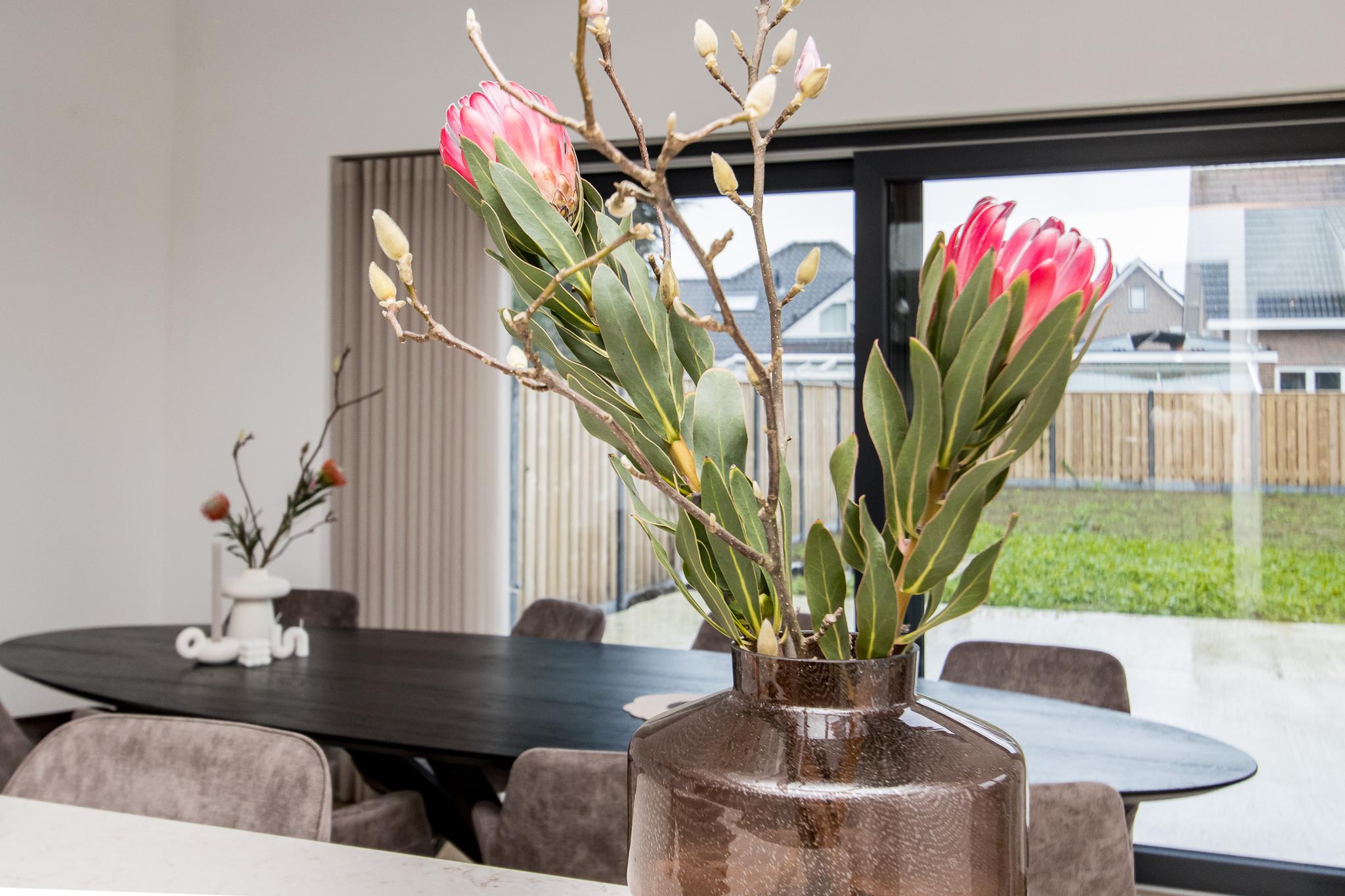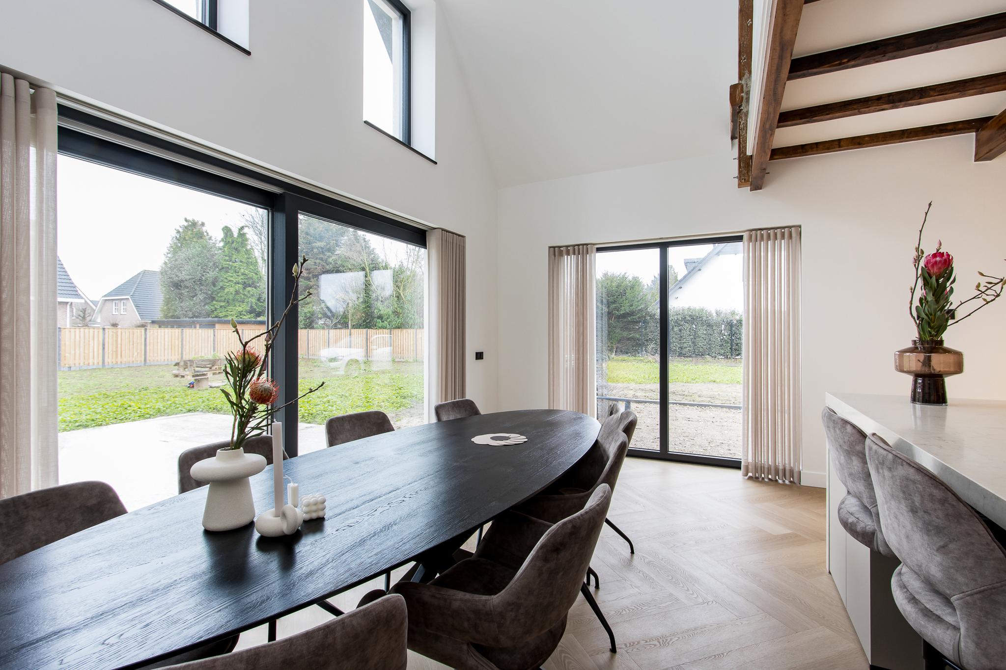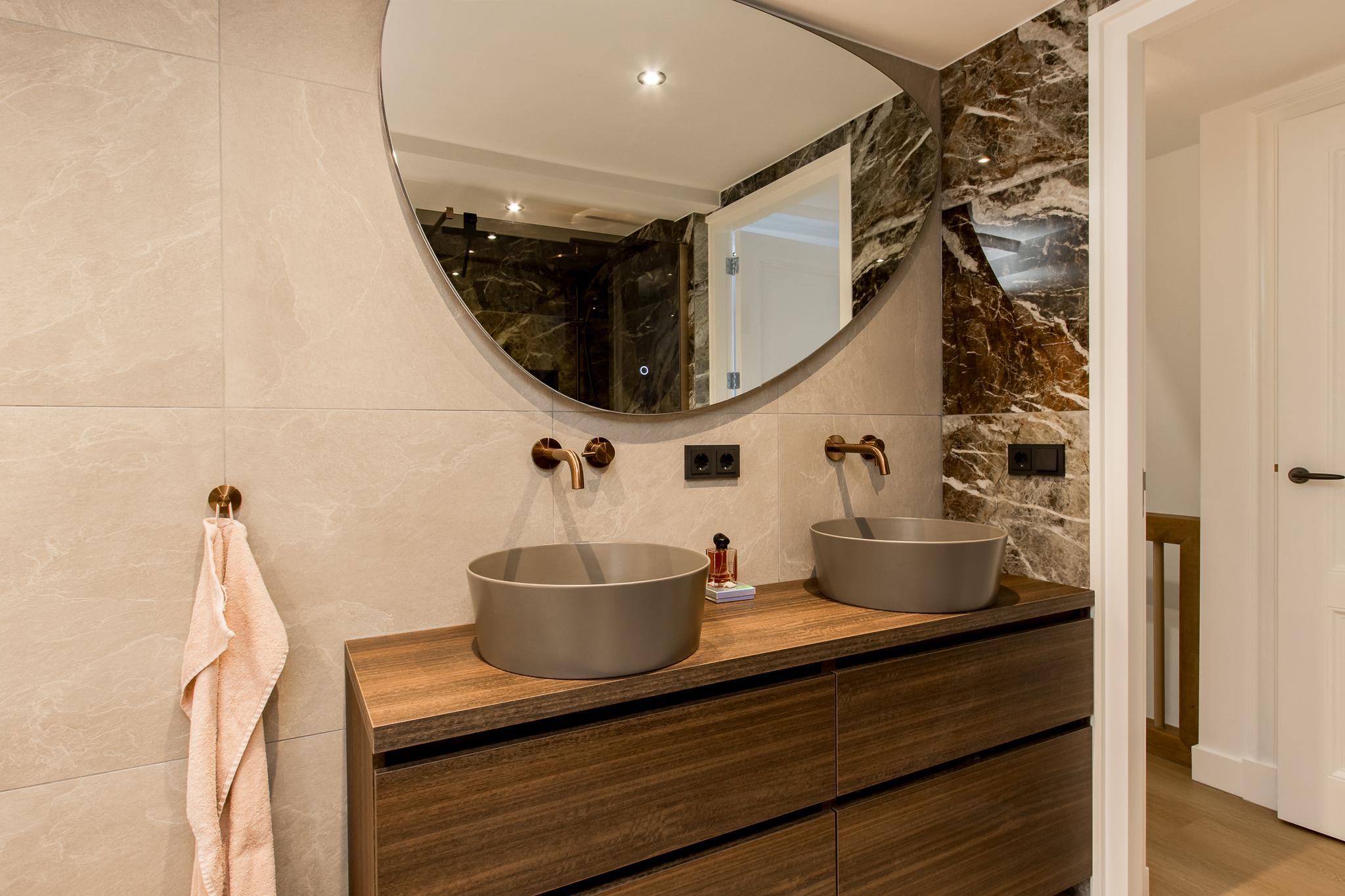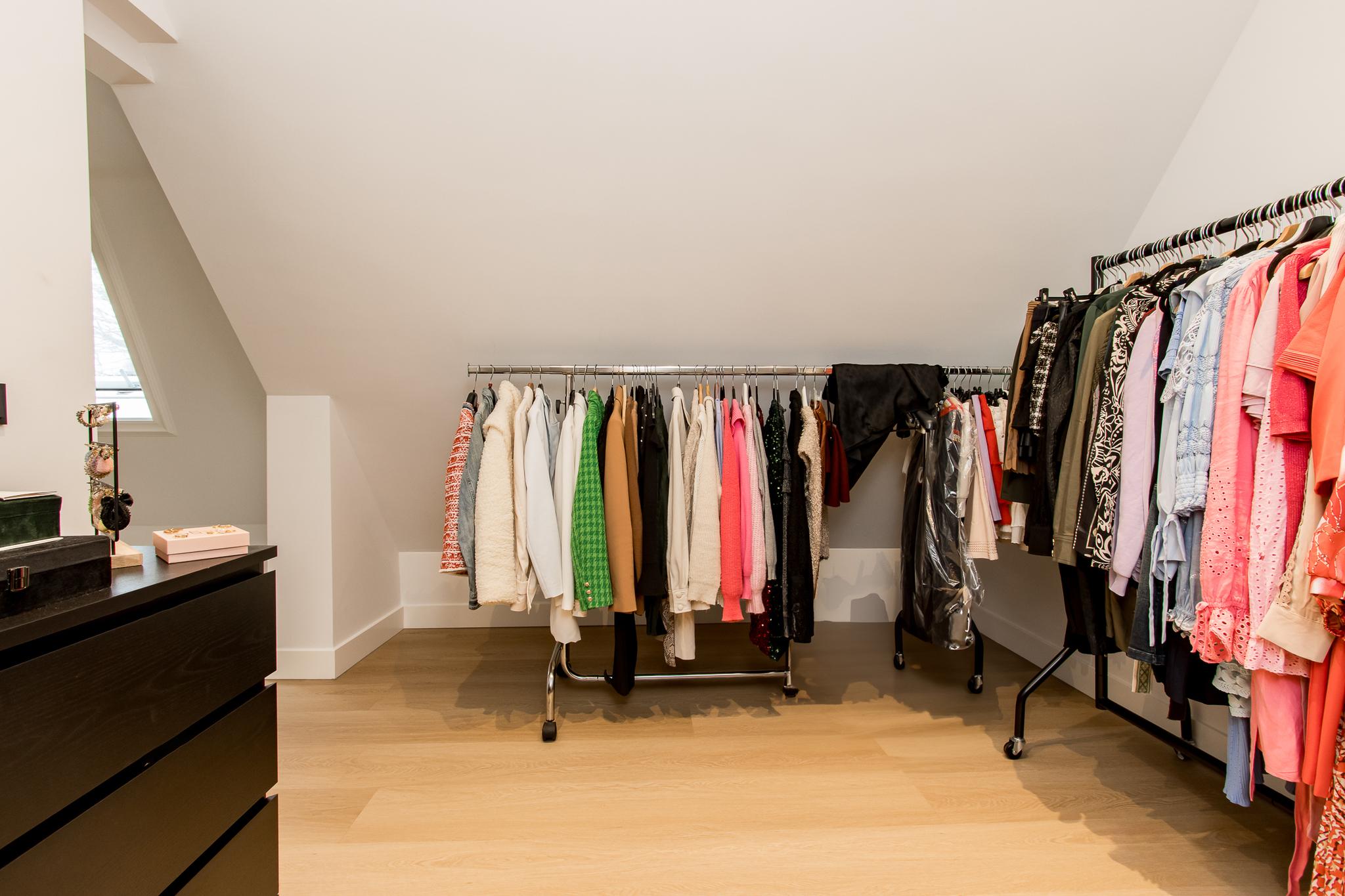 Eerste verdieping: de overloop met vaste kast en een aparte toiletruimte biedt toegang naar drie goed bemeten slaapkamers en een luxe badkamer. De badkamer is een waar pronkstuk en straalt pure elegantie uit met een vrijstaand ligbad en een stijlvolle mengkraan, een ruime inloopdouche met regendouche en een fraai badmeubel met dubbele waskommen en inbouwkranen. De masterbedroom is bijzonder royaal en voorzien van een luxe inloopkast, die ruimte biedt aan al je kleding en accessoires. Een droom van een slaapkamer waar rust en comfort samenkomen!