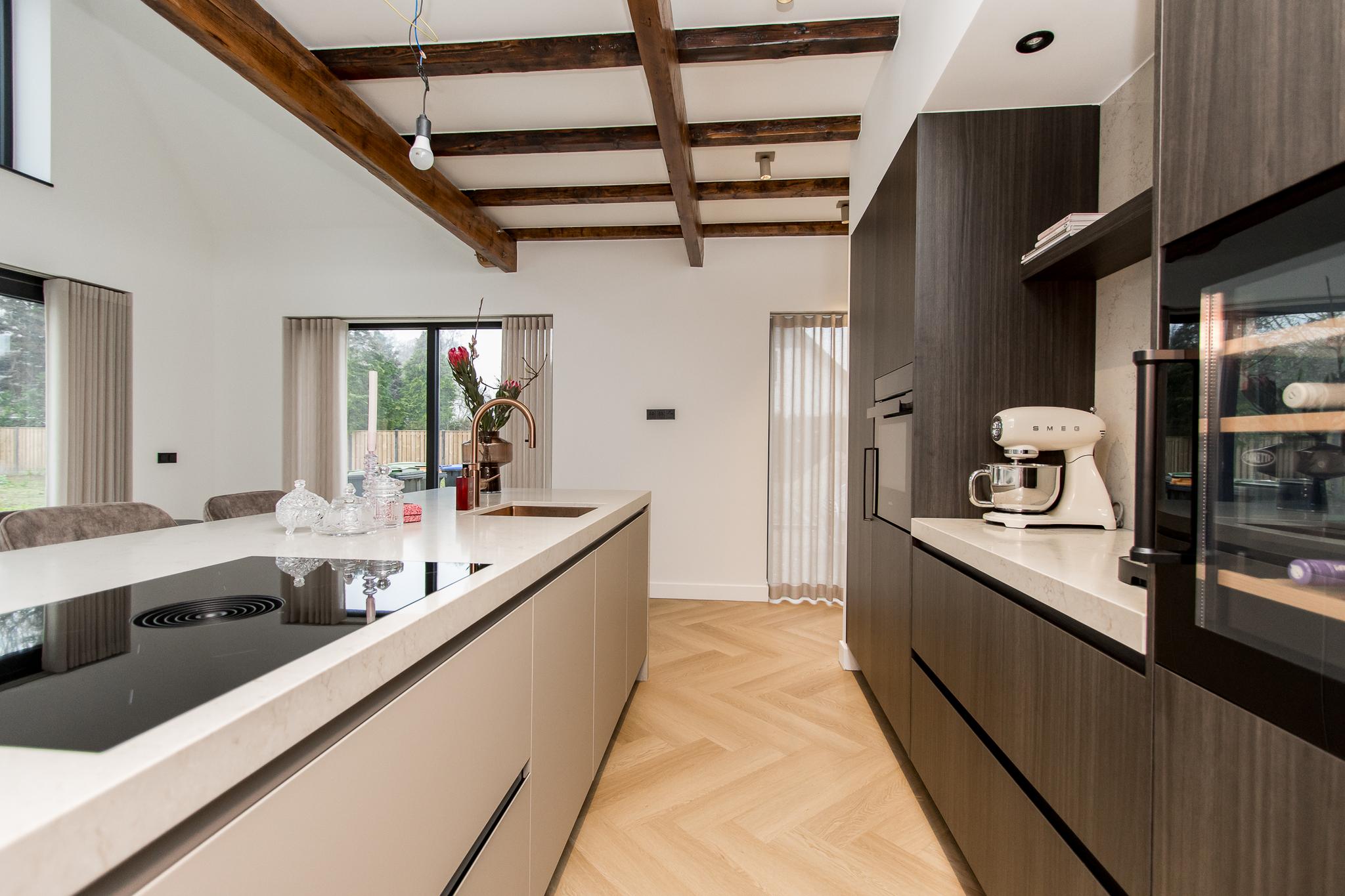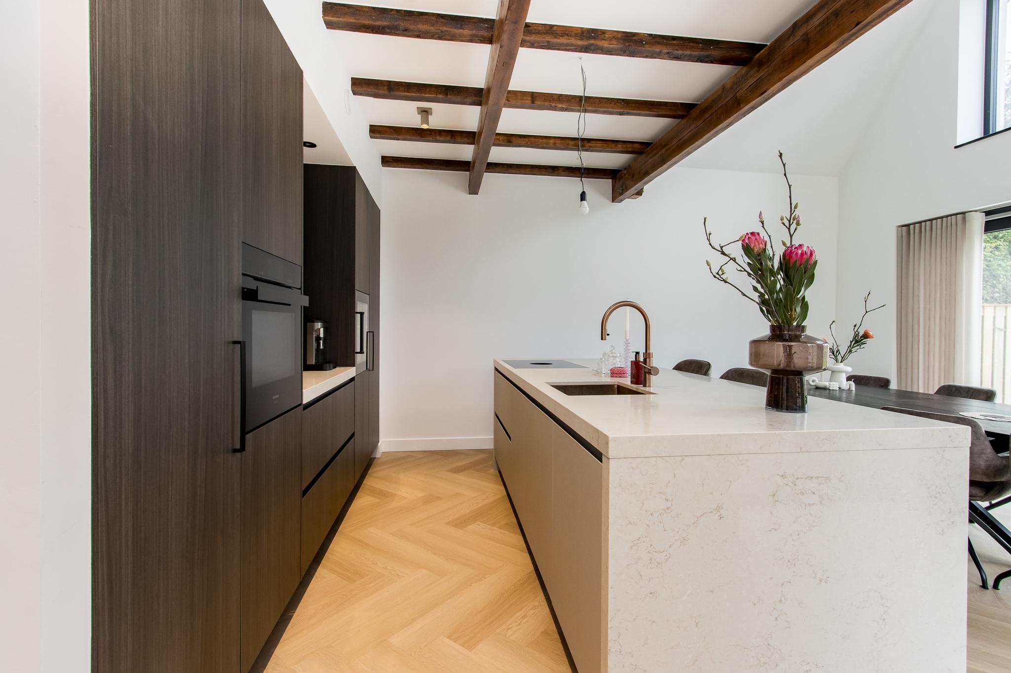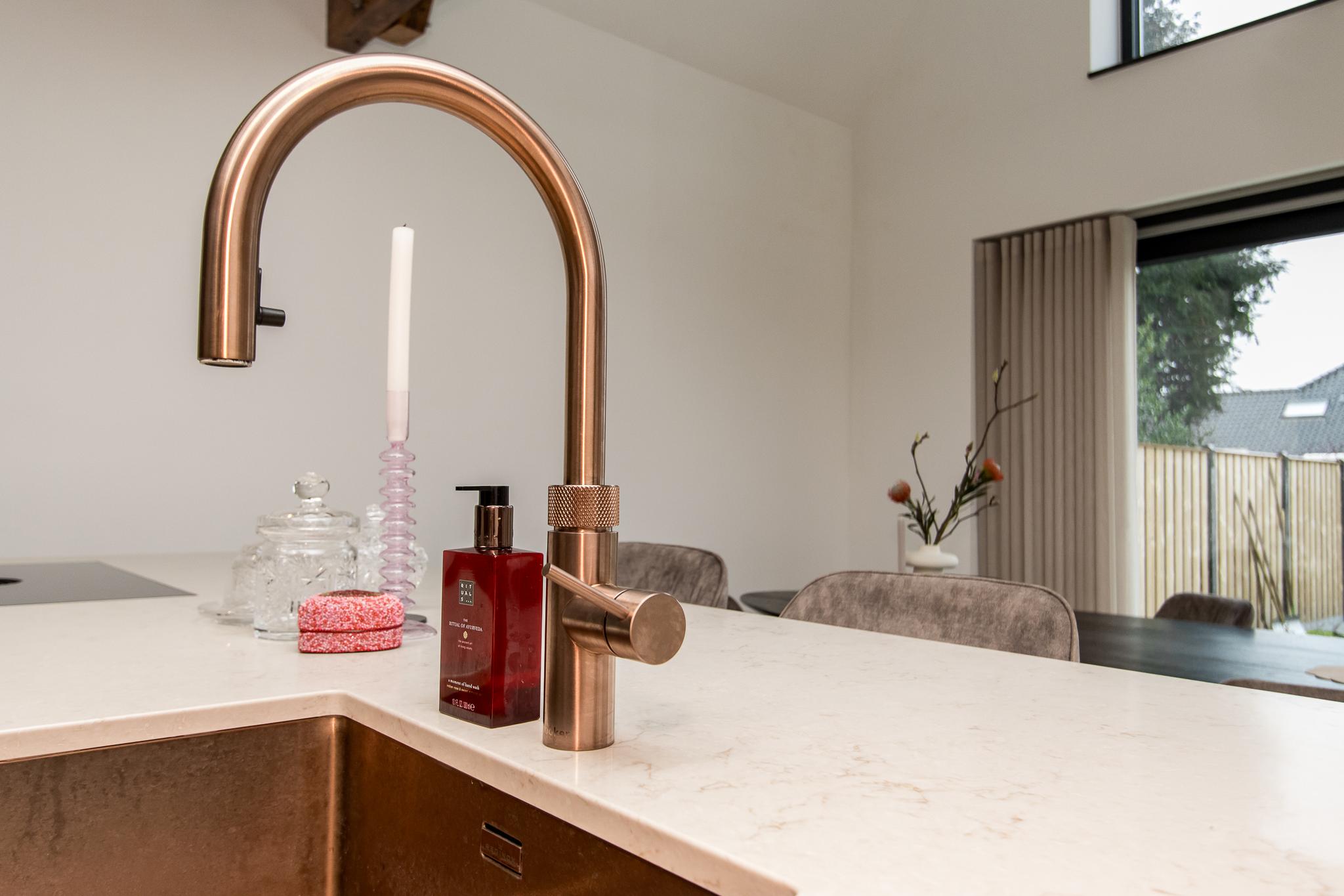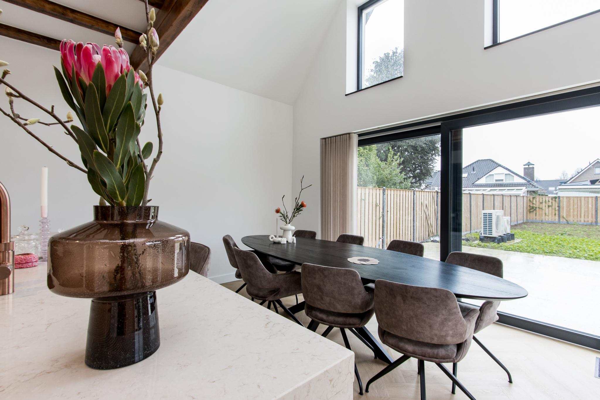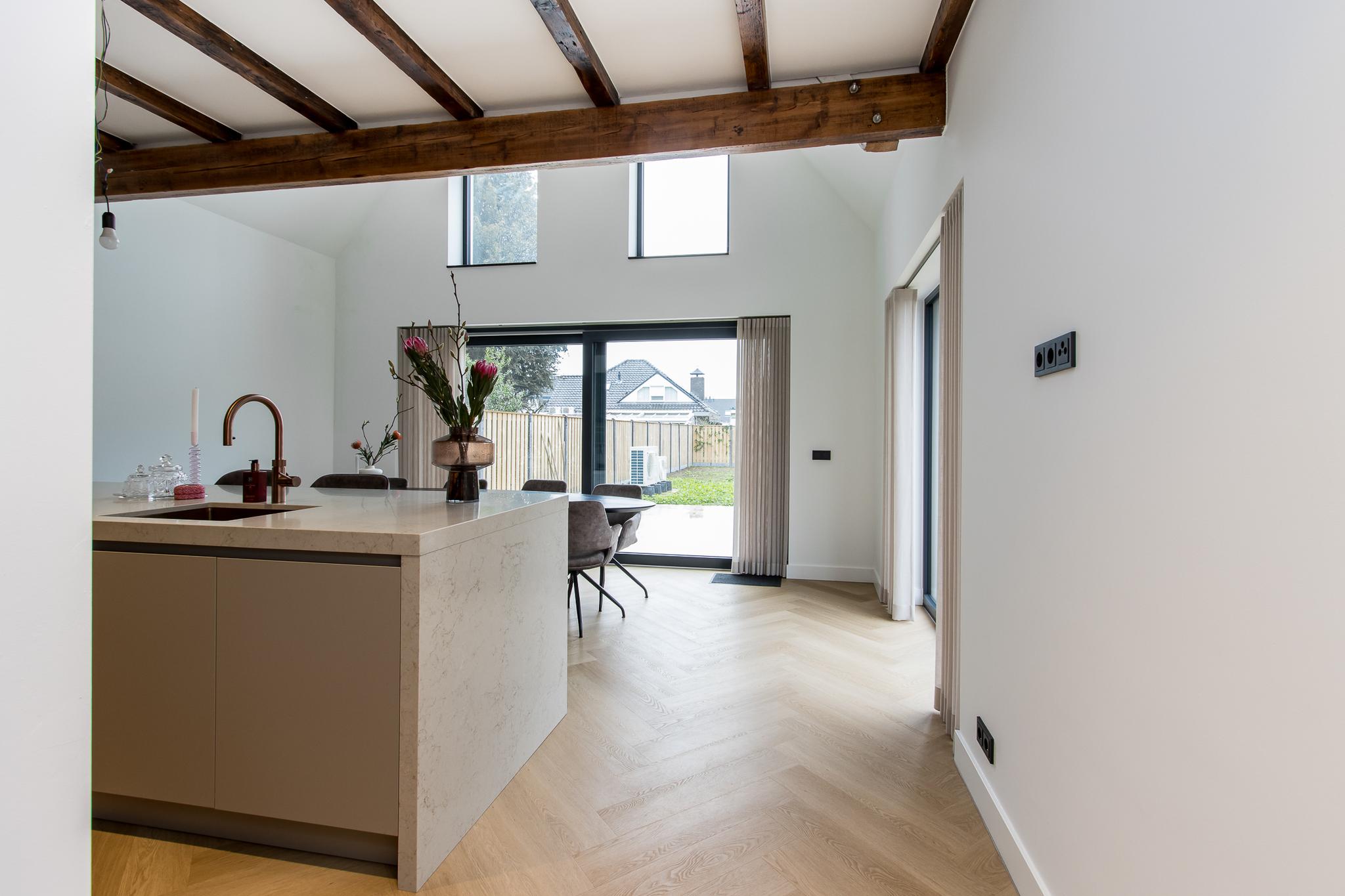 Indeling woning: bij binnenkomst via de entree aan de voorzijde word je verwelkomd in een knus halletje met de meterkast. Aan de voorzijde van de woning bevindt zich de royale en lichte woonkamer, waar de sfeervolle erker zorgt voor extra charme en veel daglicht. Praktisch gemak vind je in de trapkast, terwijl de dichte trapopgang subtiel de toegang tot de bovenverdieping markeert. In het gedeelte waar vroeger de keuken was, vind je nu een moderne toiletruimte en een bijkeuken met aansluitingen voor witgoed. Achterin de woning, in het voormalige achterhuis, is een royale woonkeuken gerealiseerd. Deze prachtige ruimte is uitgerust met een strakke kastenwand en een kook- en spoeleiland dat uitnodigt tot koken en gezellig samenzijn. Dankzij de schuifpui is er een directe verbinding met het terras en de achtertuin, waar binnen en buiten naadloos in elkaar overlopen.