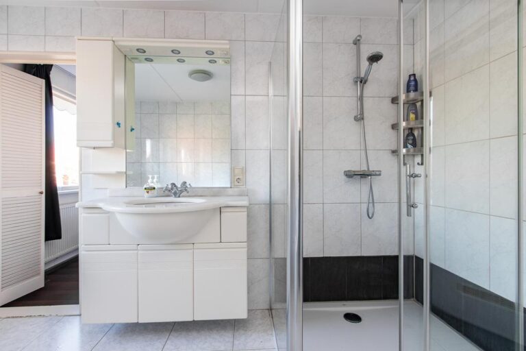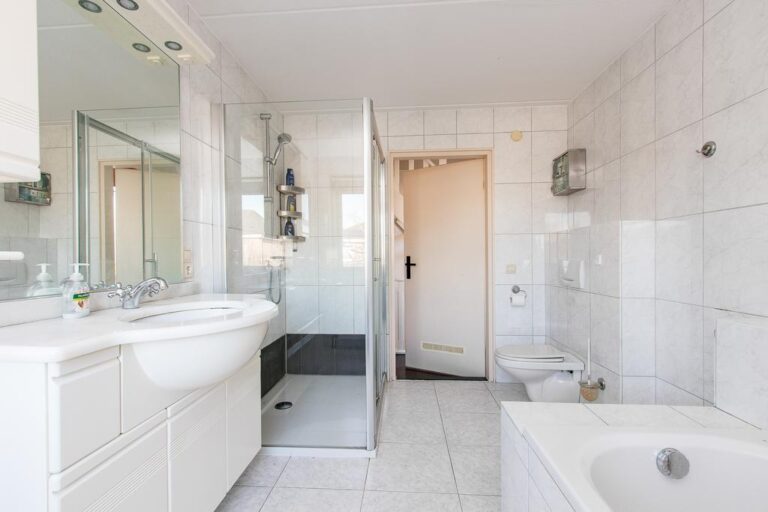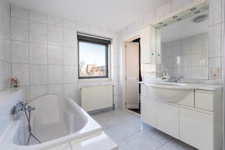 Eerste verdieping: overloop toegang gevend tot 3 slaapkamers en ruime badkamer voorzien van ligbad, douche, wastafelmeubel en wandcloset.