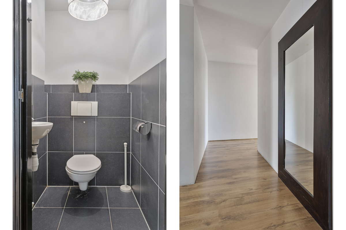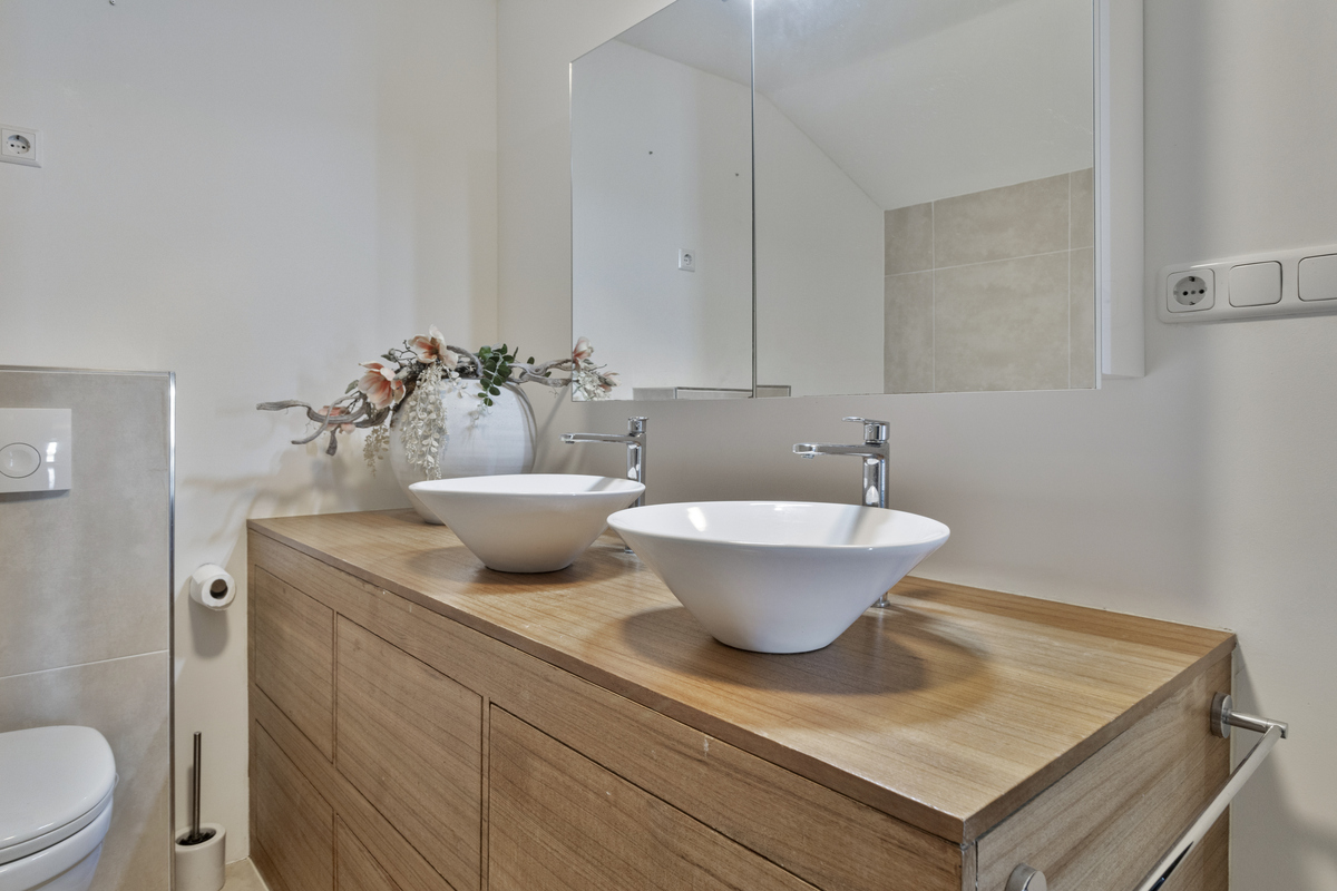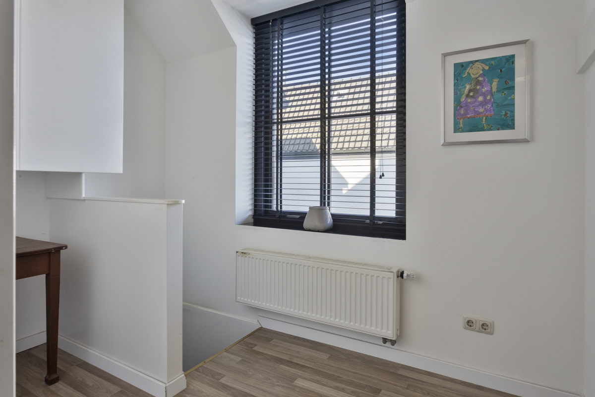 Daarnaast beschikt deze verdieping over een moderne badkamer met een ligbad, douche, toilet en een wastafel met dubbele waskom. Op de overloop bevinden zich tevens de trapopgang naar de derde verdieping en een praktische vaste schuifkast.