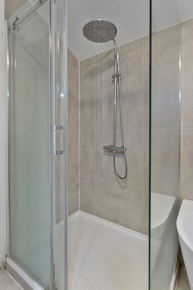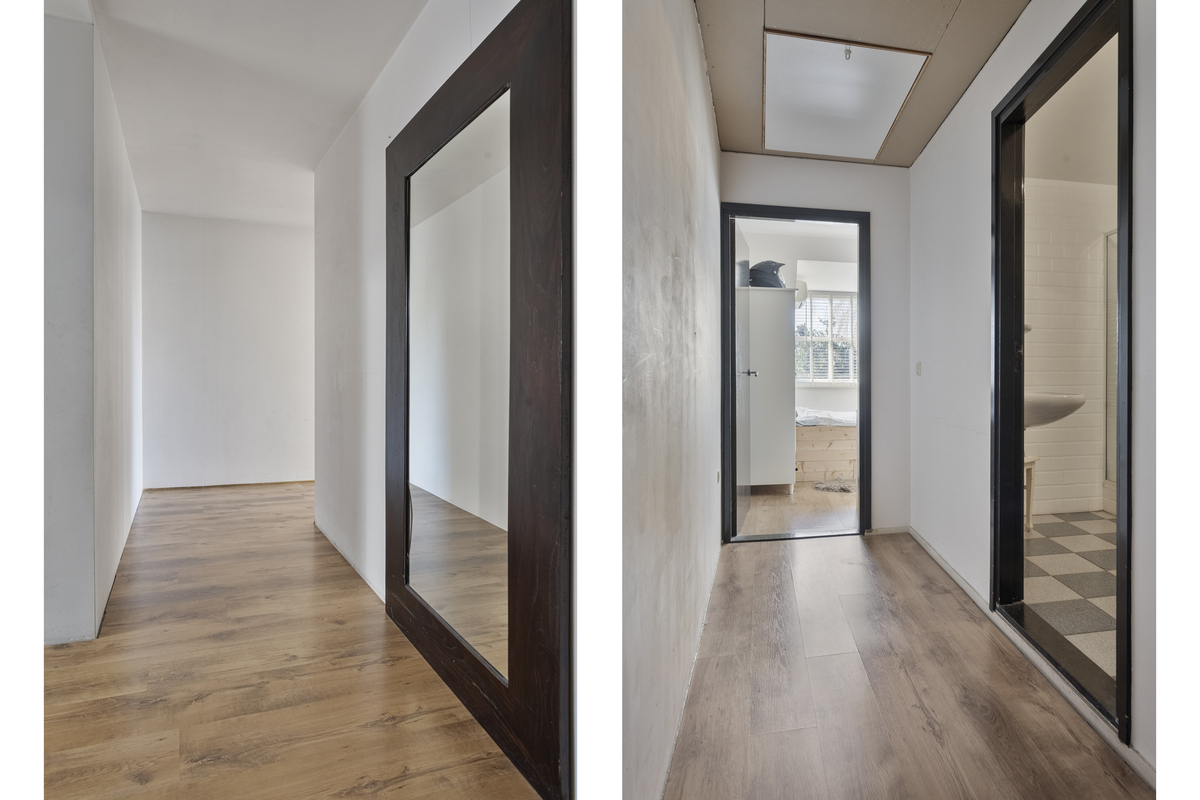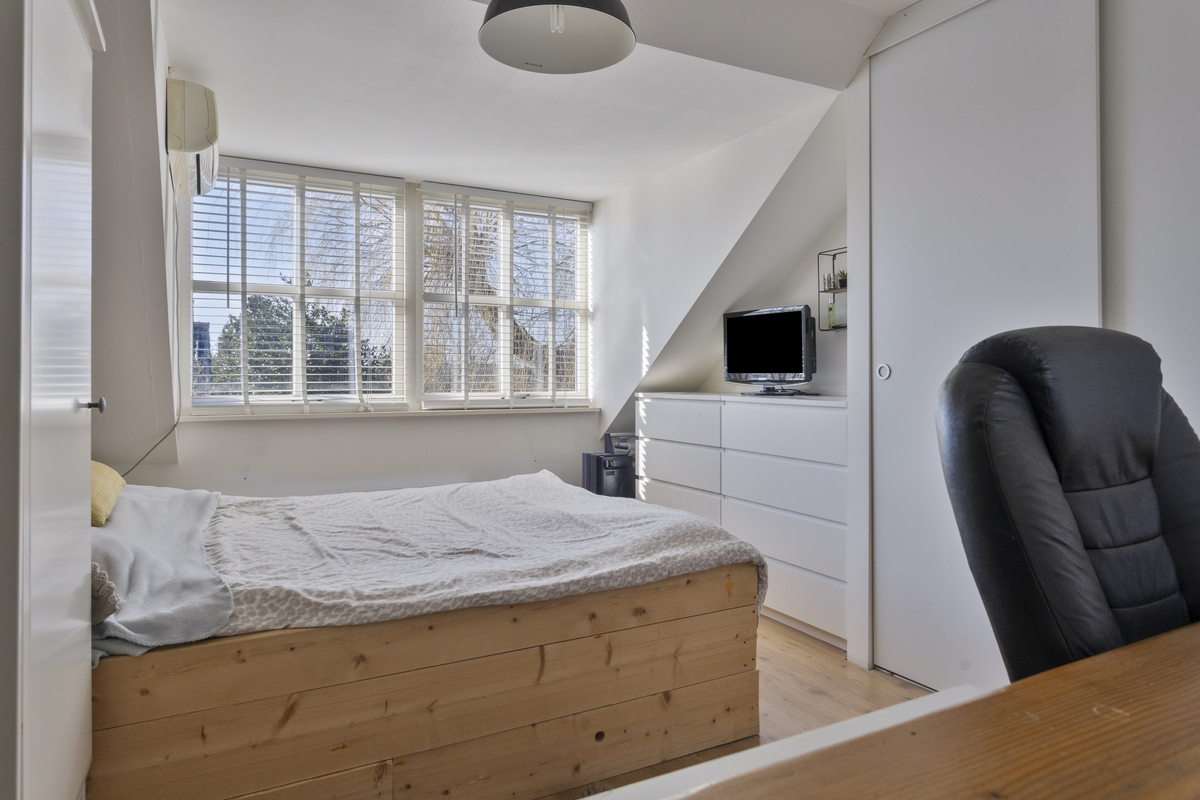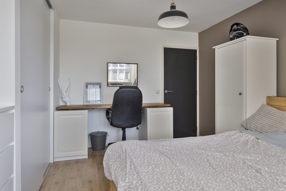Daarnaast beschikt deze verdieping over een moderne badkamer met een ligbad, douche, toilet en een wastafel met dubbele waskom. Op de overloop bevinden zich tevens de trapopgang naar de derde verdieping en een praktische vaste schuifkast.