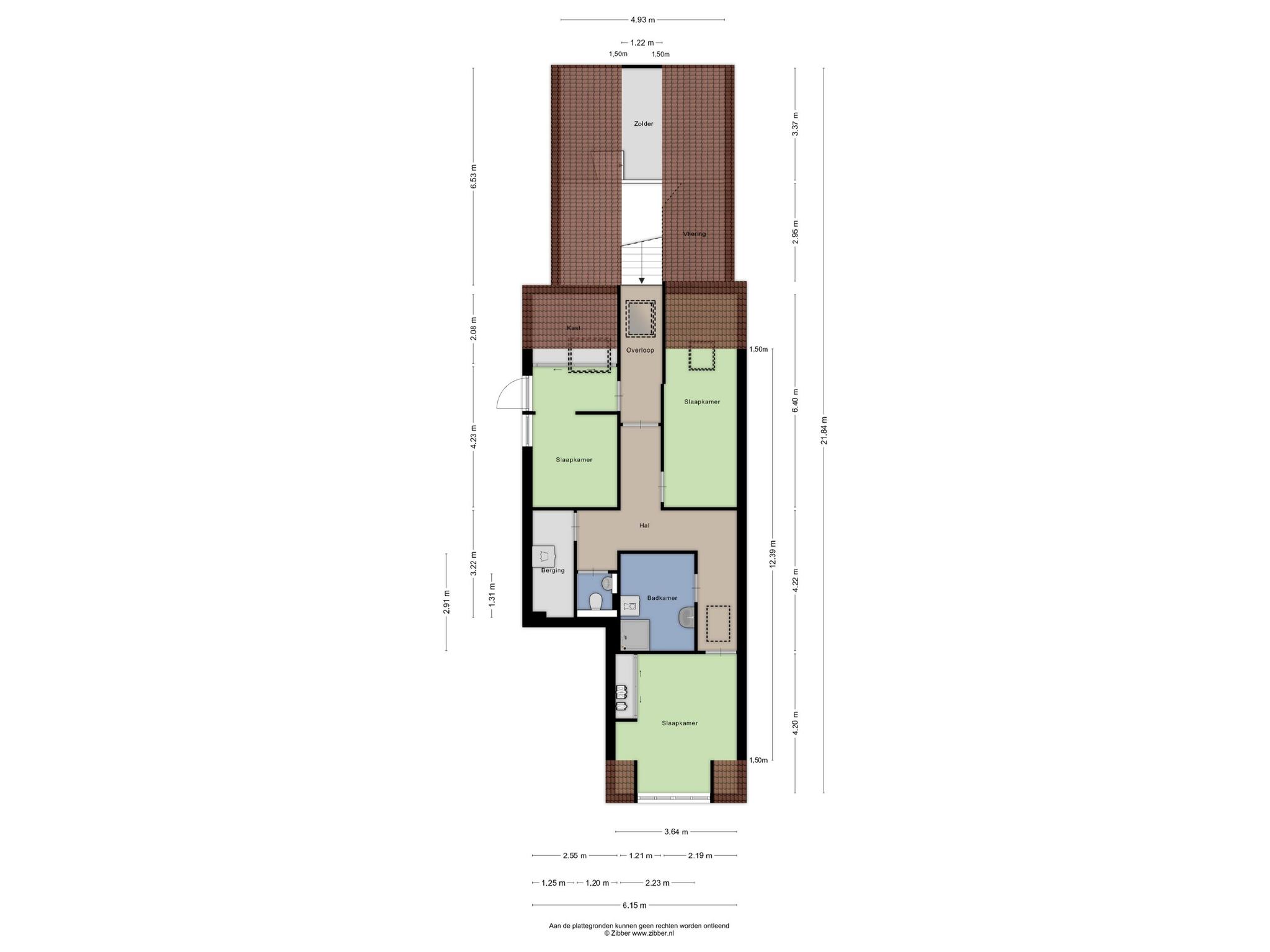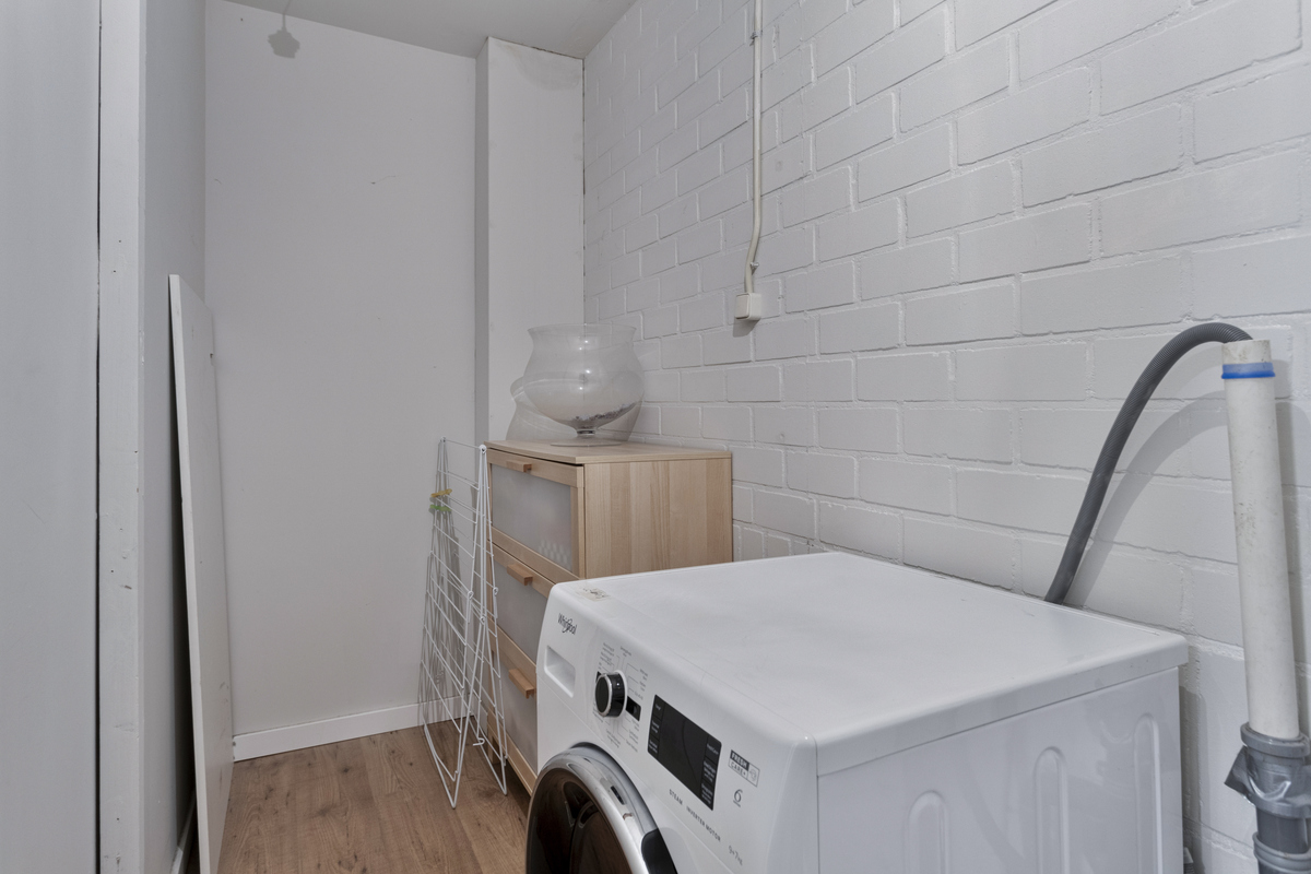 Derde verdieping: via een vaste trap bereik je de derde verdieping, waar een ruime overloop toegang biedt tot drie slaapkamers, een apart toilet en een badkamer met douche, wastafel en wasmachineaansluiting. Daarnaast is er een praktische berging, eveneens voorzien van aansluitingen voor witgoed.