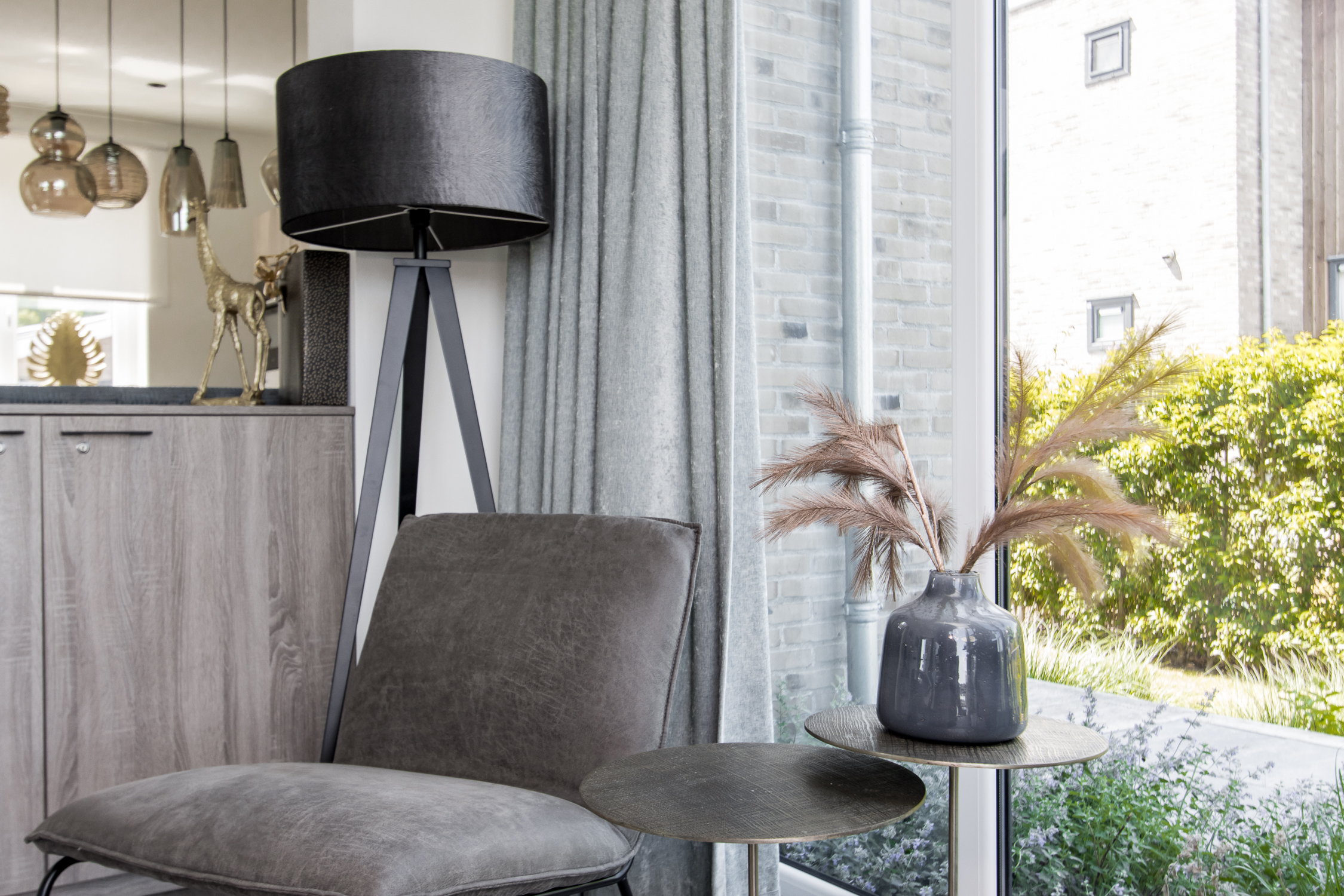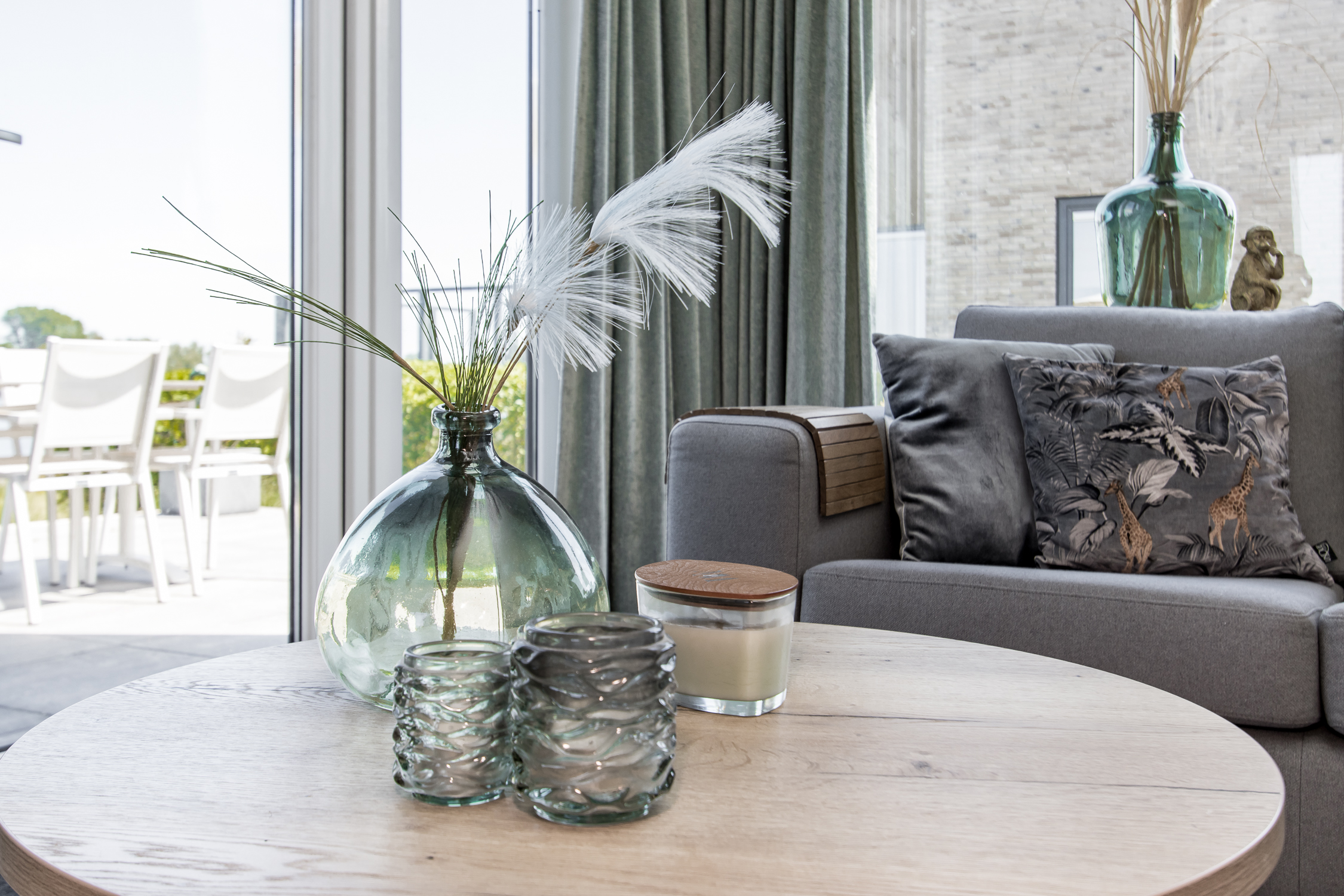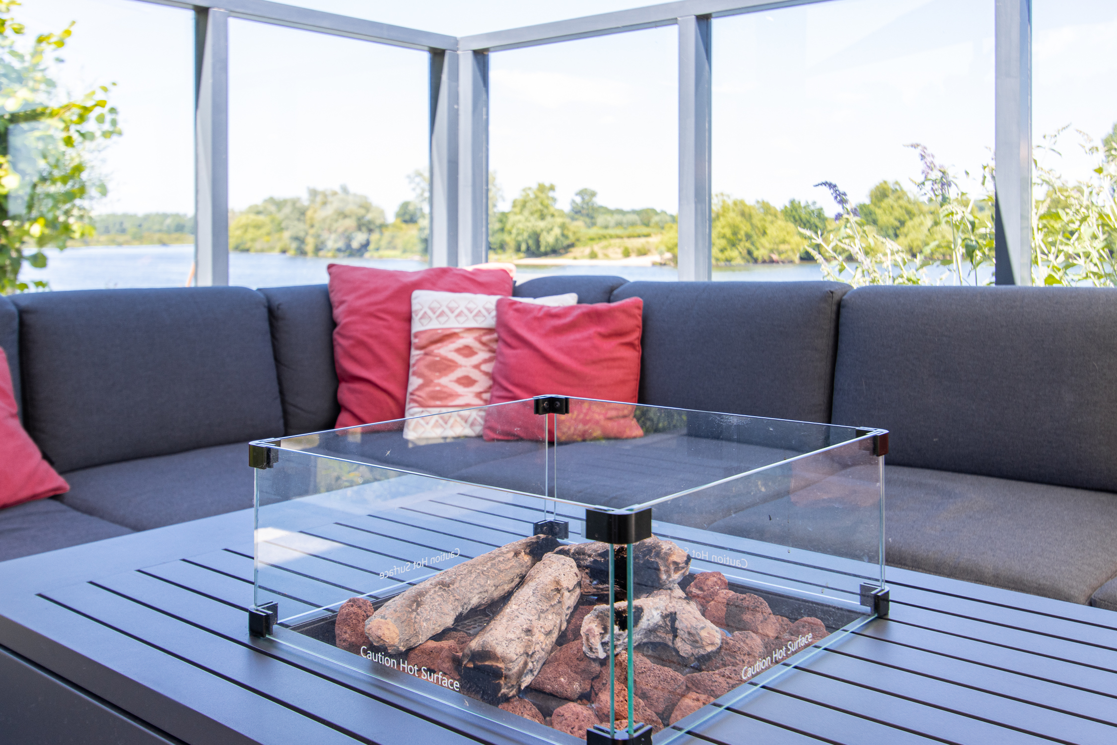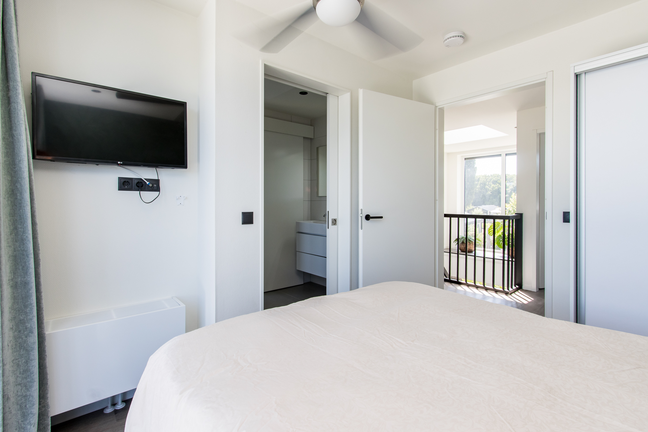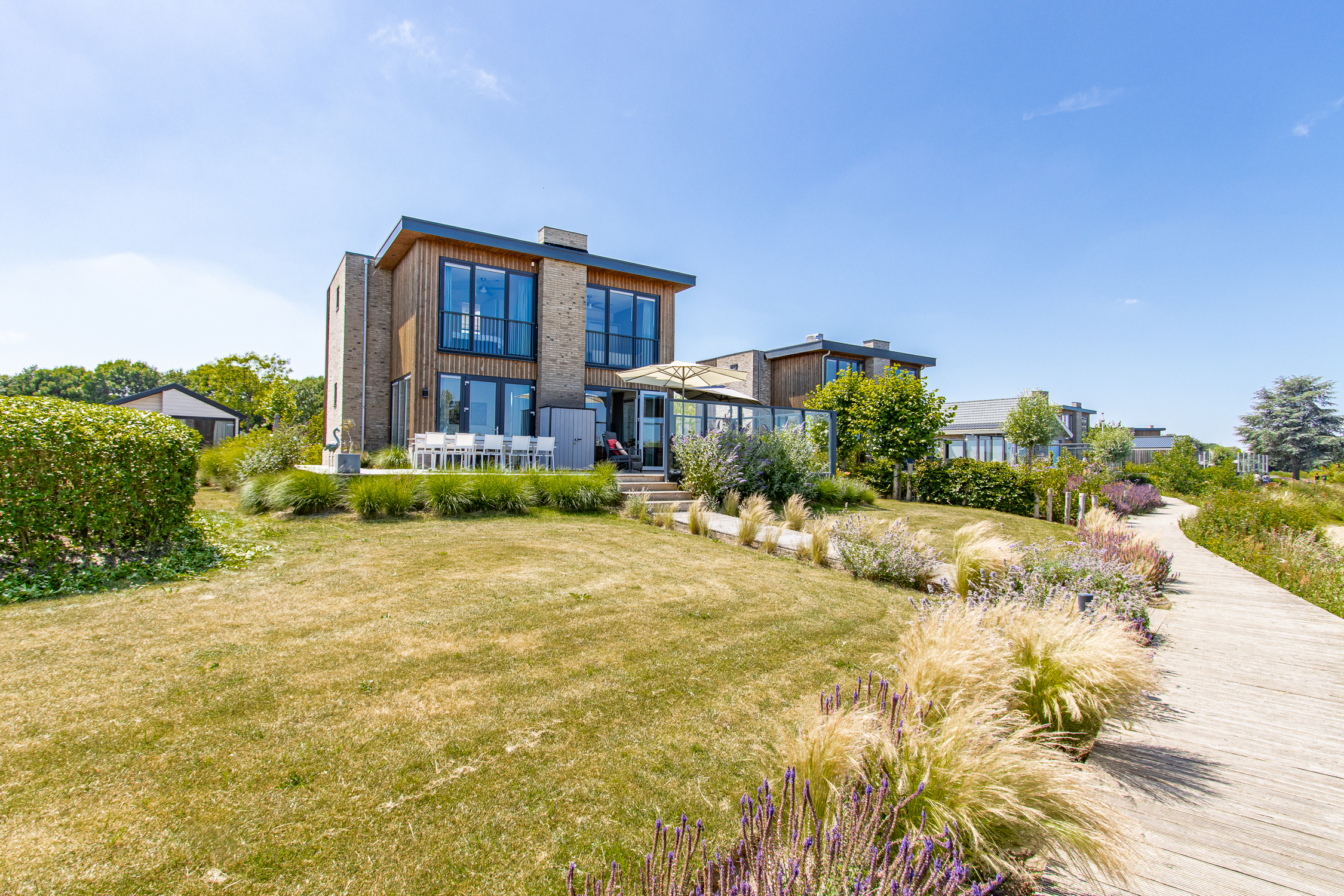 deuren naar terras inclusief grote raampartijen voor maximaal daglicht en uitzicht. Leuke extra is de ingebouwde elektrische haard.
