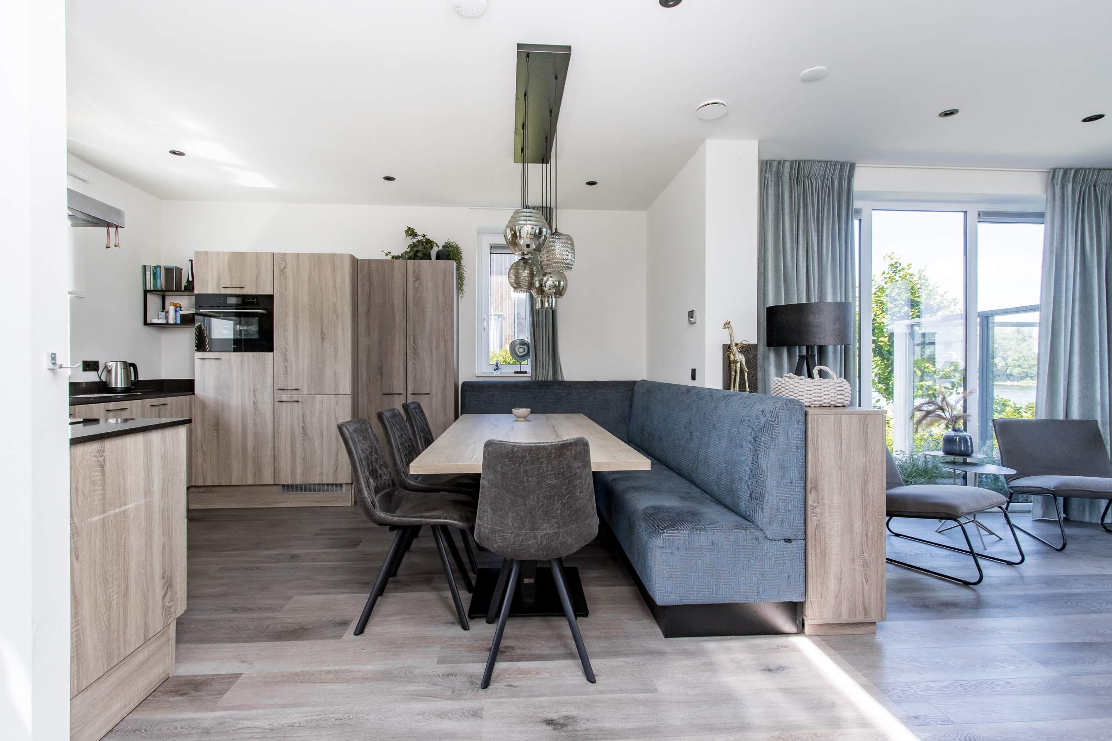 • Woonruimte: luxe royale open keuken met composiet aanrechtblad en aansluitend woonkamer met openslaande